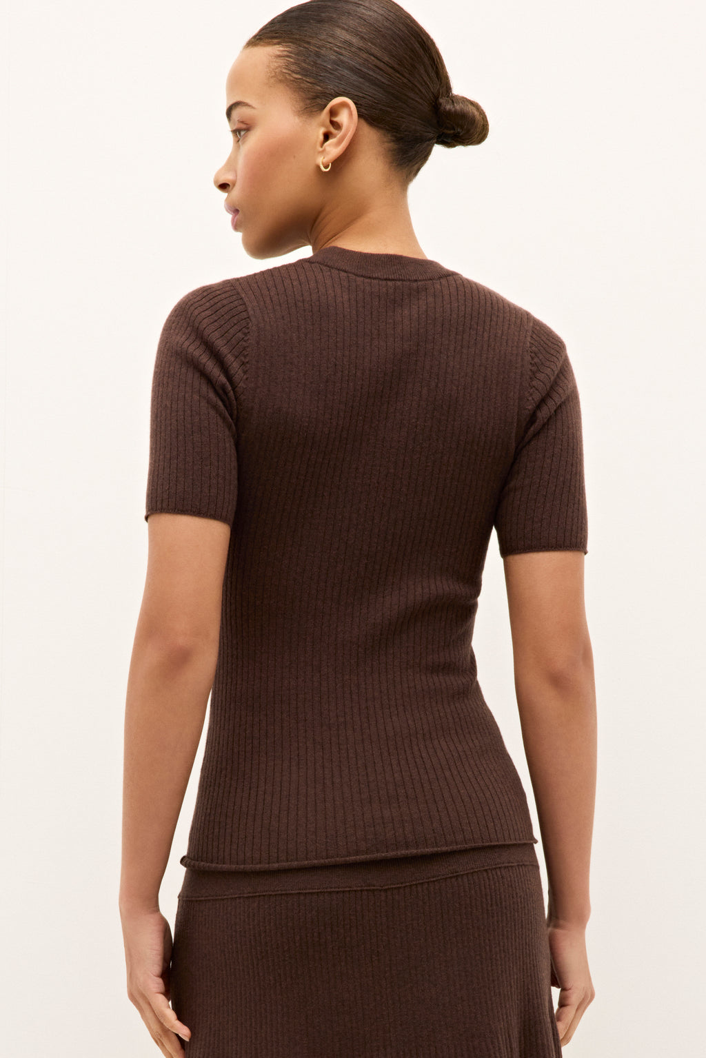 Less really is more when it comes to elevated wardrobe basics like our figure-skimming Kaylan skirt. The slinky ribbed knit maxi features a drop waist rib yoke and is fitted through the hips before gently flaring out toward the floor. Make it a chic set by pairing with our matching Carrey top in Cacao.