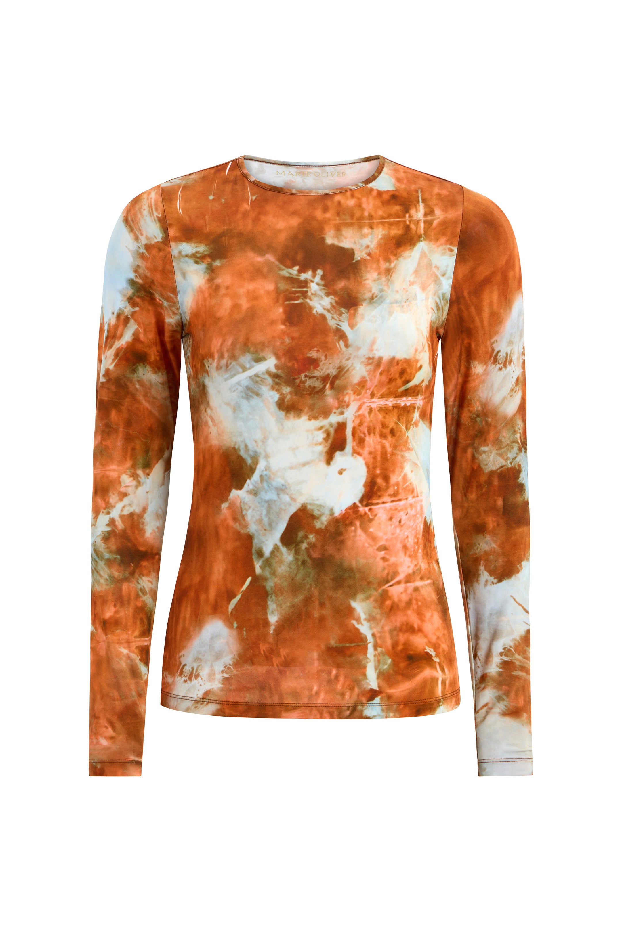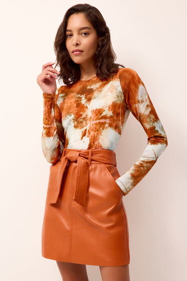 Hazel does a lot with a little. Soft and slinky, this fitted jersey knit top features a classic crew-neck silhouette and our bold Havana print. It's the kind of easy-to-pack piece that occupies minimal suitcase real estate but delivers maximum style. Beautiful tucked into your favorite pants and skirts, we love complementing it with the Vallie skirt in Brandy.