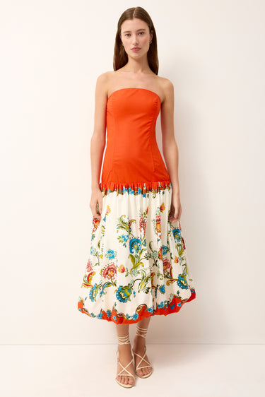 Quilla is a strapless statement dress that plays with proportion in all the right ways. A clean, sculpted bodice gives way to a softly voluminous skirt for a modern, feminine silhouette, while the vibrant Cartagena print brings a bold, destination-ready feel. Easy yet elevated, it’s made for summer celebrations, from warm-weather getaways to evenings that call for something special.
