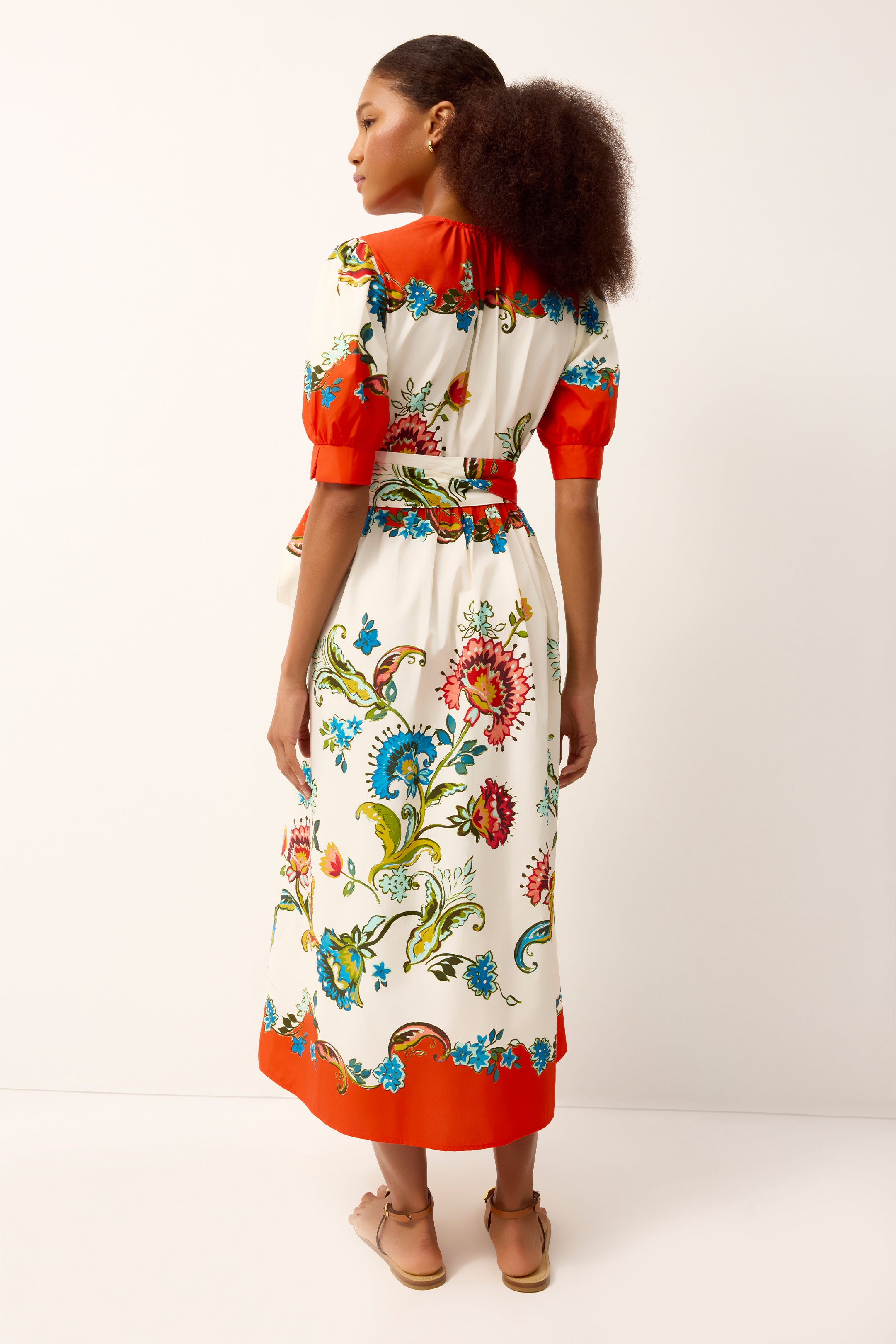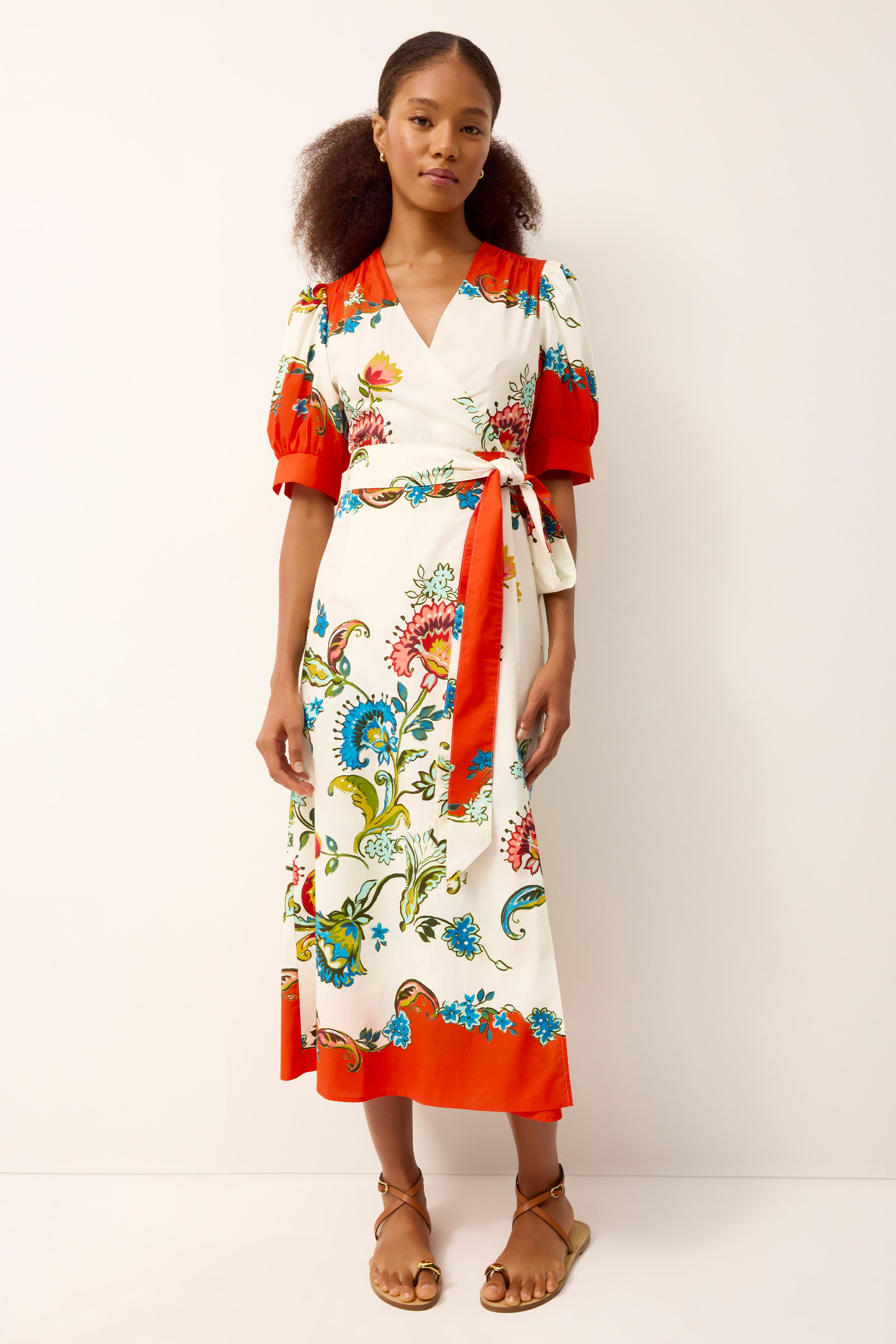 Rita is a classic wrap dress with a fresh, playful spirit. Softly puffed sleeves add a touch of volume, while the adjustable waist creates an easy, flattering shape you can wear your way. Crafted from breathable cotton and finished in the vibrant Cartagena print, it’s an effortless choice for warm days, whether you’re heading to brunch, exploring on vacation, or dressing up for an outdoor gathering.