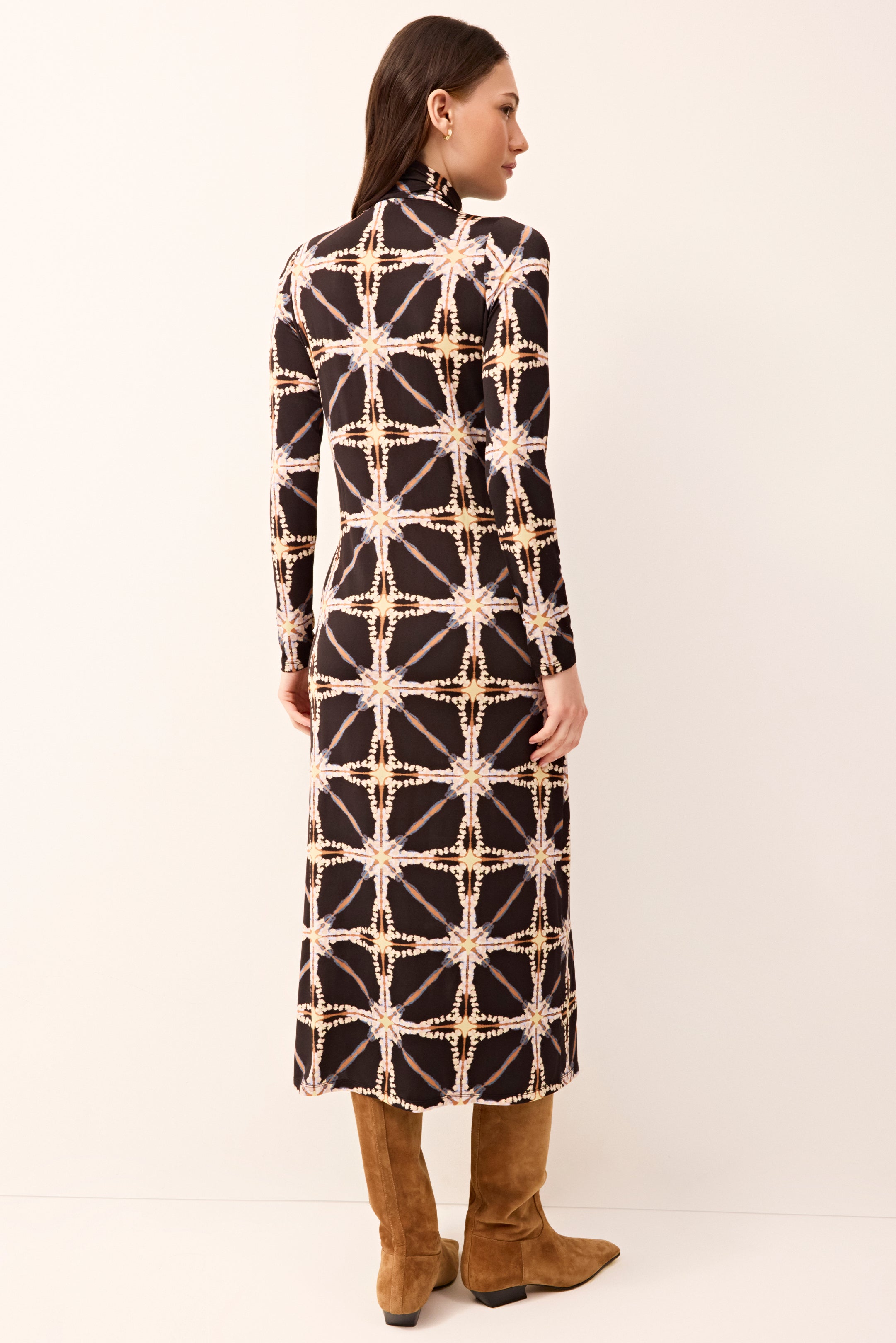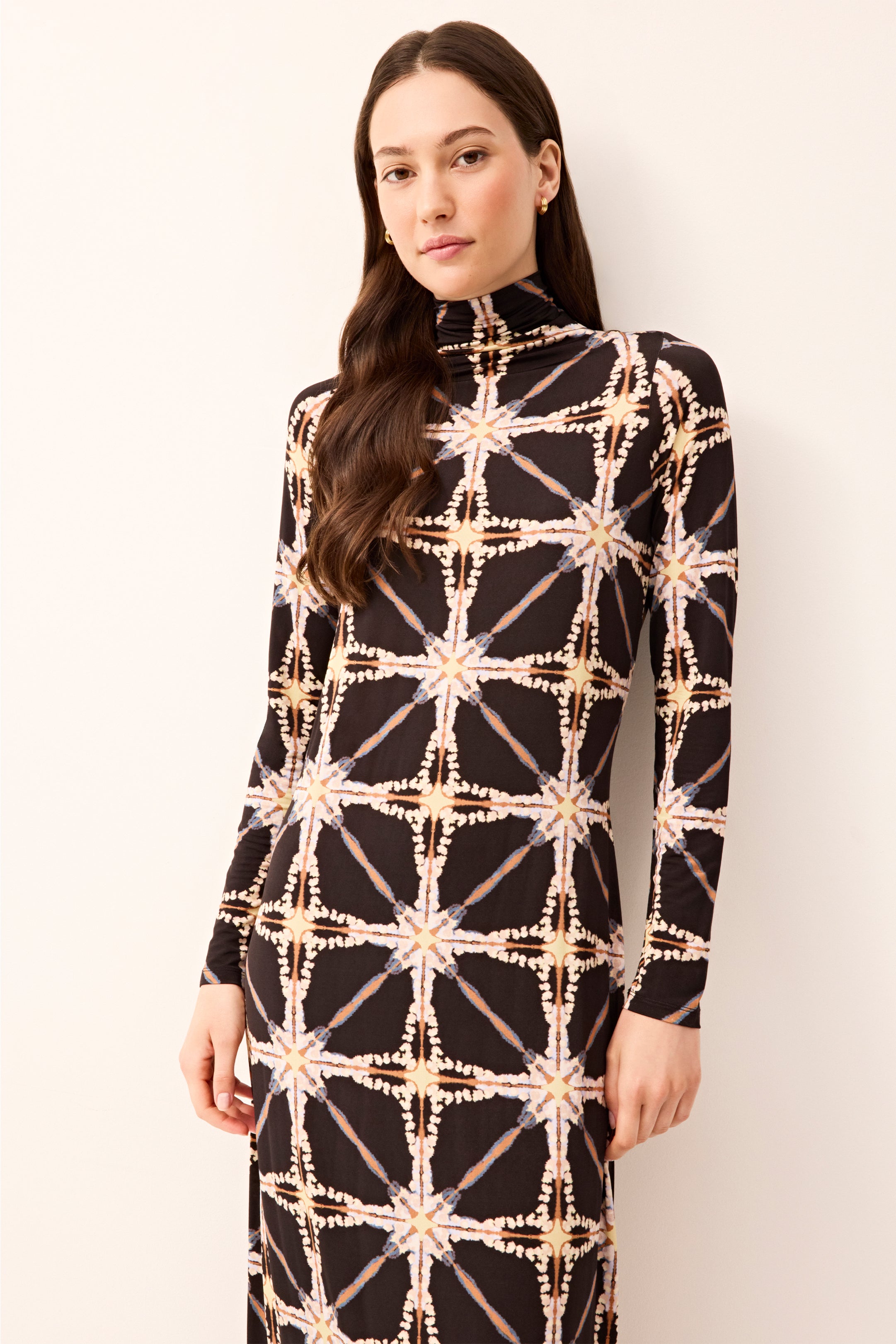 One of our Founder’s favorite seasonal silhouettes, this figure-skimming turtleneck dress features a soft jersey knit that underscores Paxton’s elegant lines. The slip-on style is pictured here in Polaris, a fashion take on tie-dye in a neutral winter color palette that captures the moody glamour of shifting temperatures. The perfect layer? Our Beatrice vest in Polar.