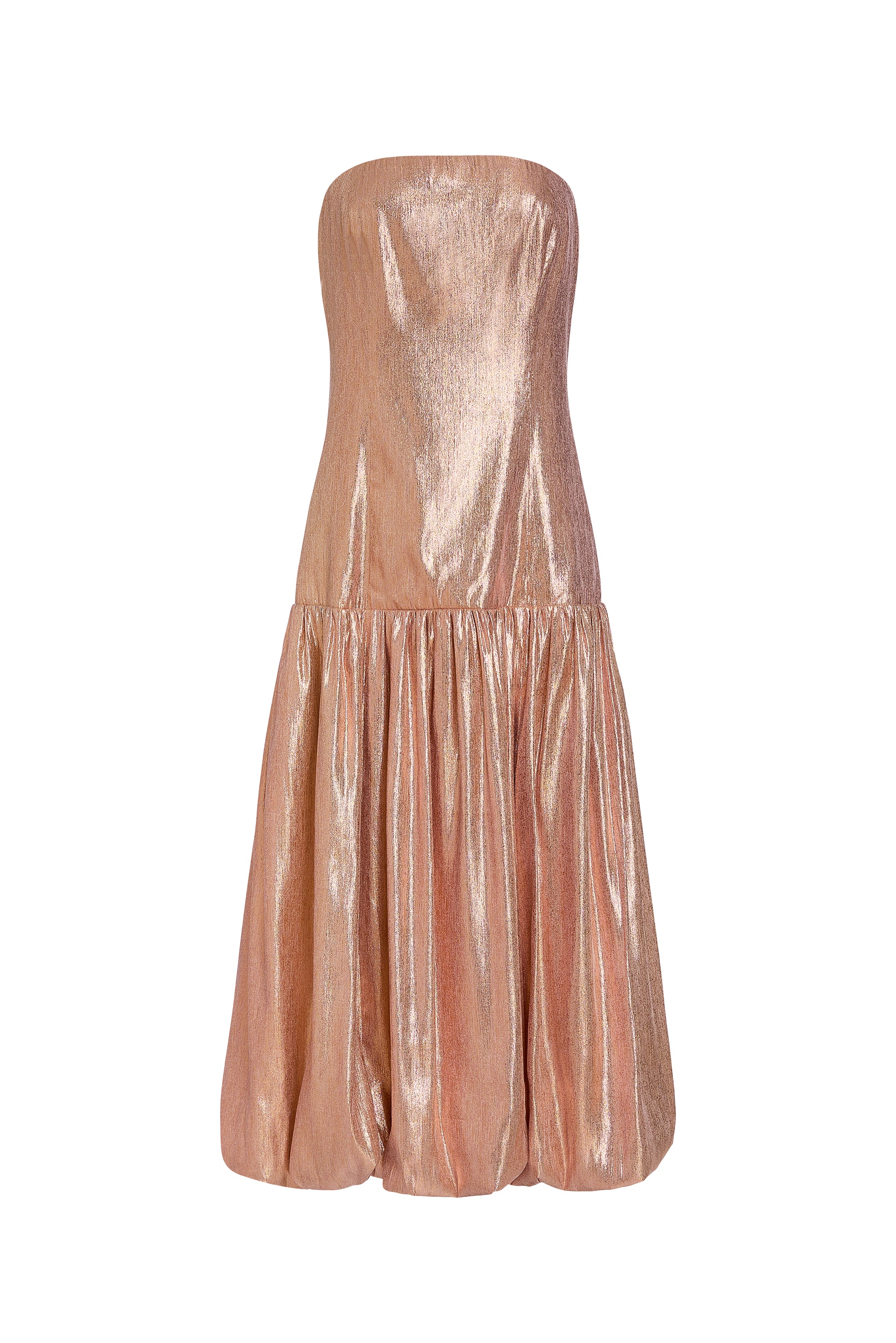 Meet winter’s golden girl. This rose gold drop-waist silhouette brings modern glamour to every festive occasion, from black-tie soirées to Christmas weddings. The metallic finish and elegant princess seams create a flattering shape that shines in every light. Complete the look with our Colette jacket for warmth that doesn’t compromise style.