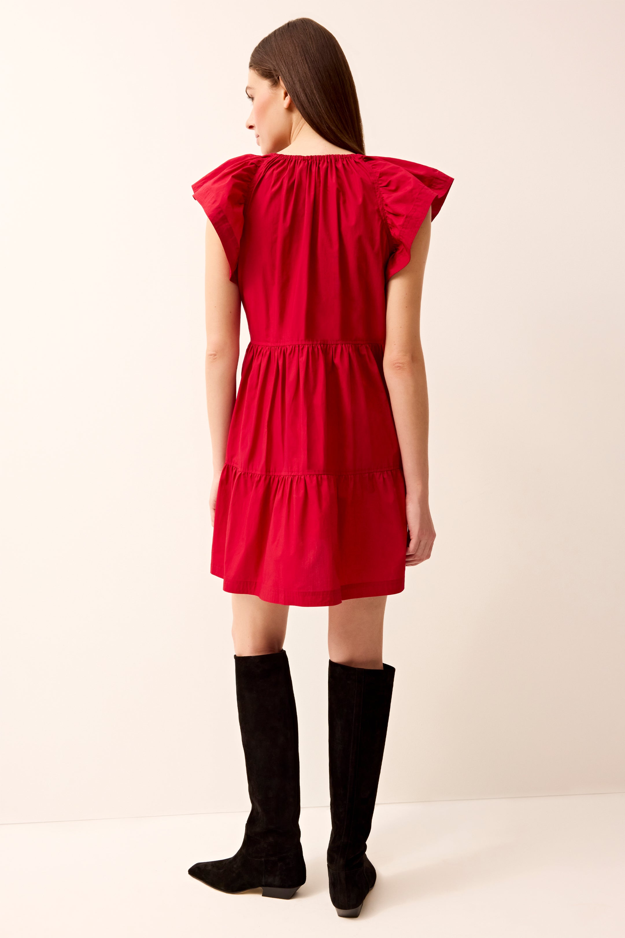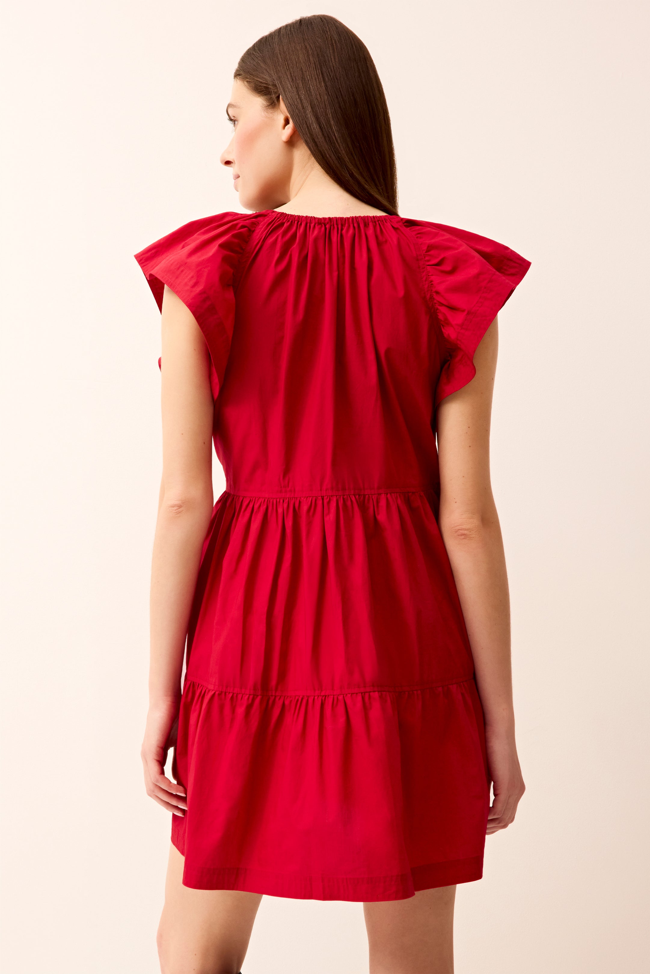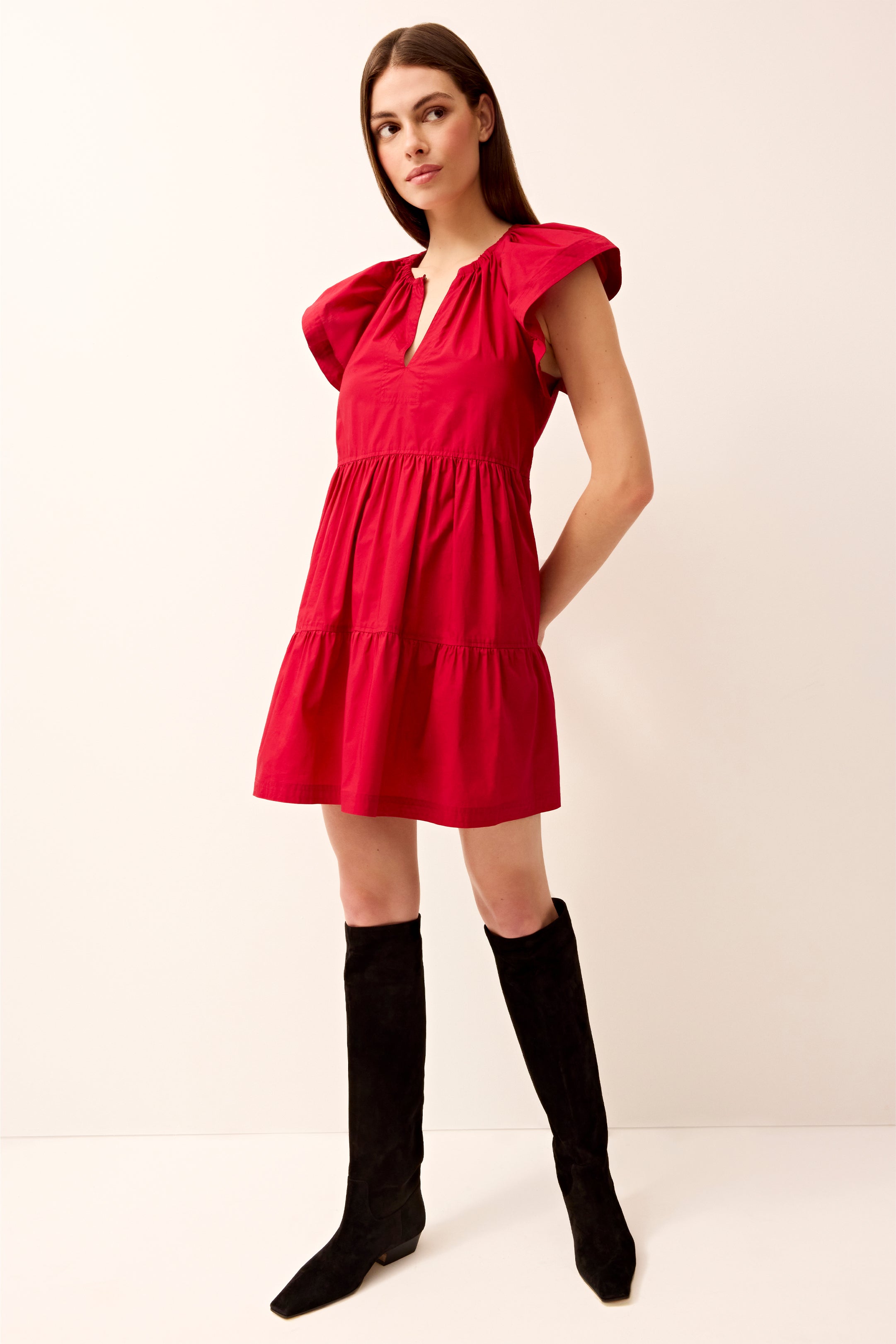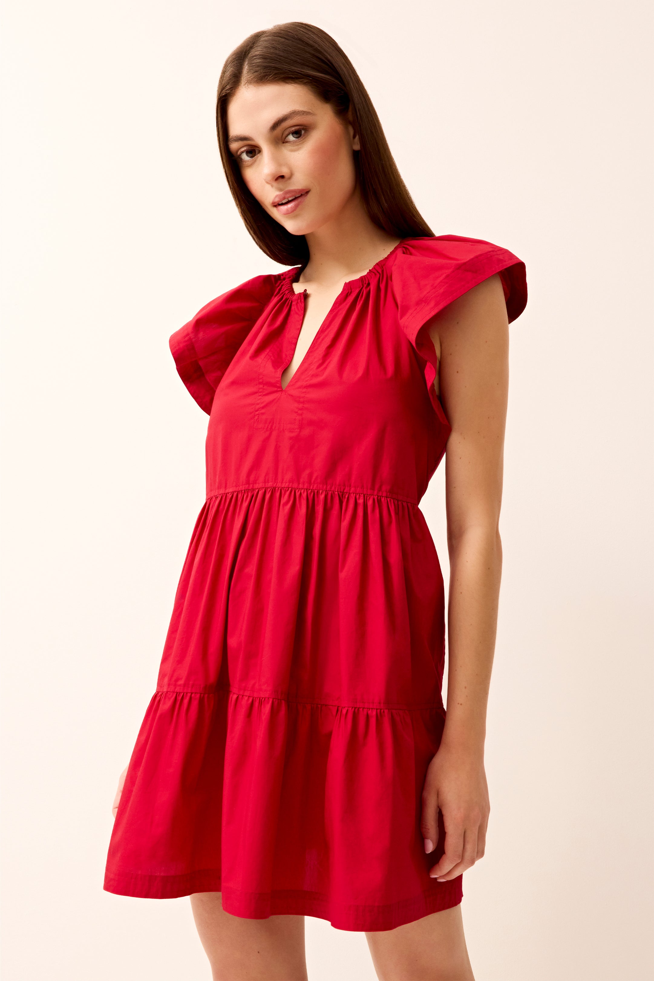 Comfort. Quality. Effortless style. That's Kara. The best-selling "play dress," which features wide flutter sleeves and a tiered skirt, returns in a deep red this season.