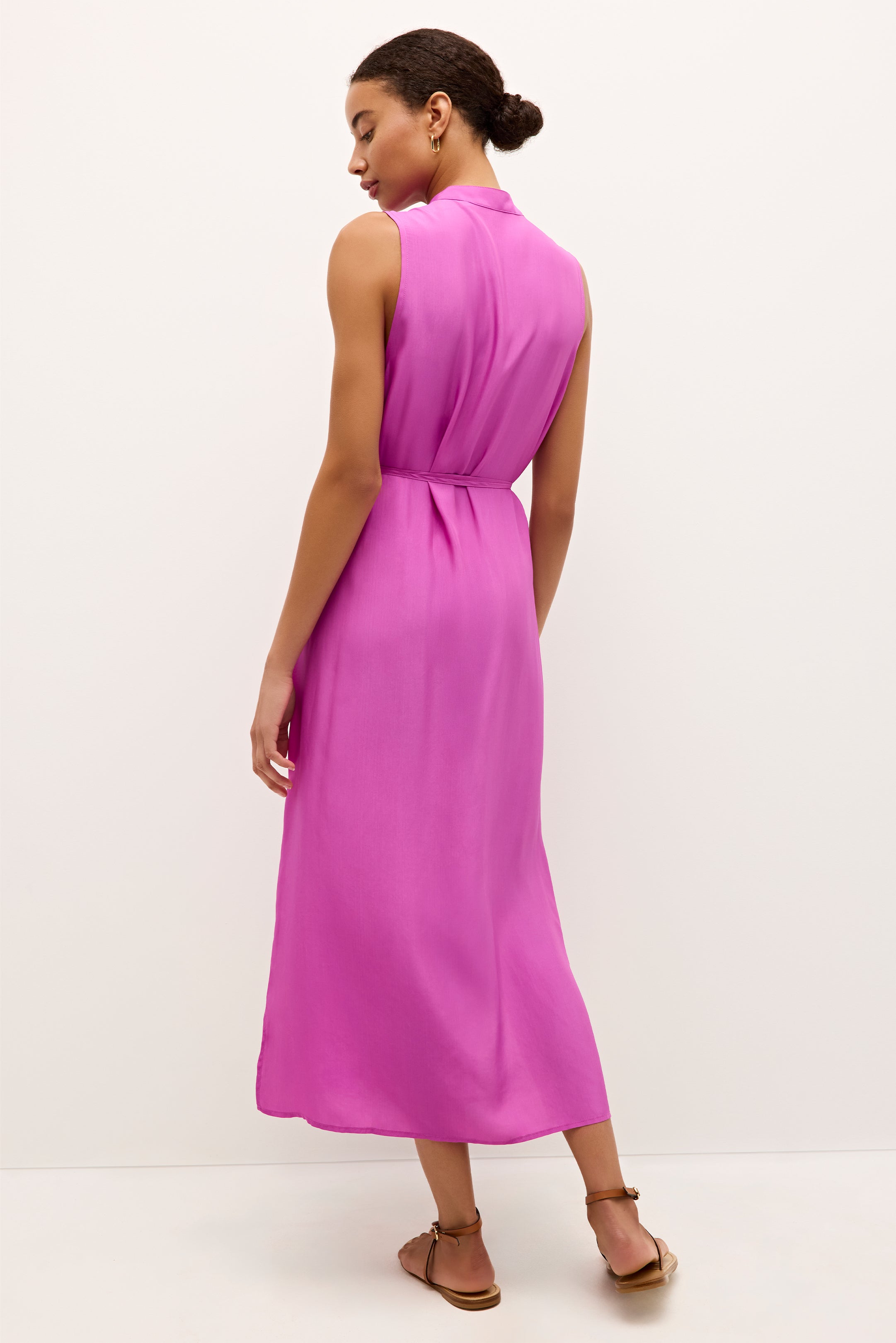 A classic shirtdress will take you almost, well, anywhere. From the office to brunch to vacation, Kirkley's chic sleeveless silhouette is just the ticket. Add polish by wearing it with the tie belt or forgo it for a looser A-line look. Kirkley is pictured here in a new electric pink solid.