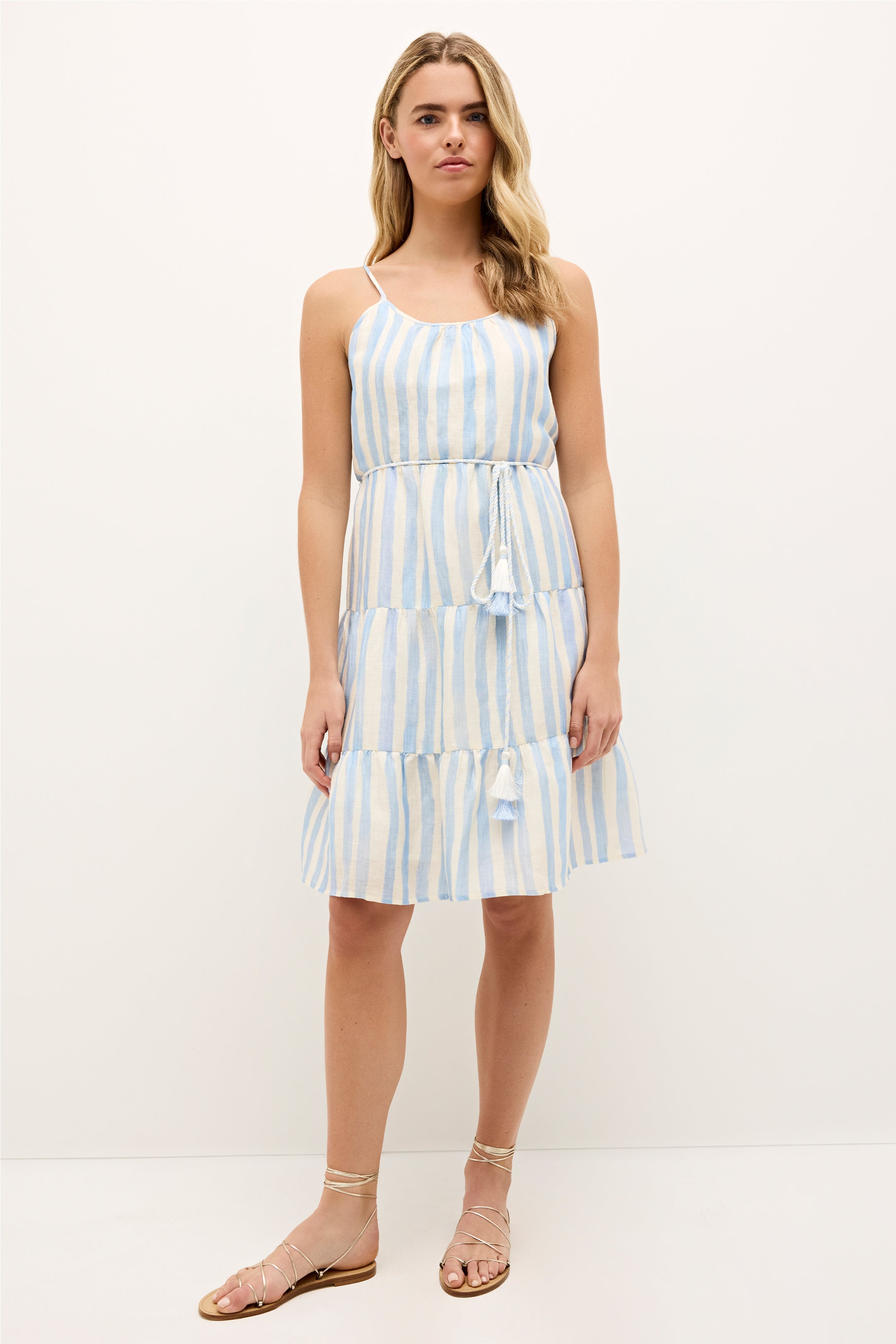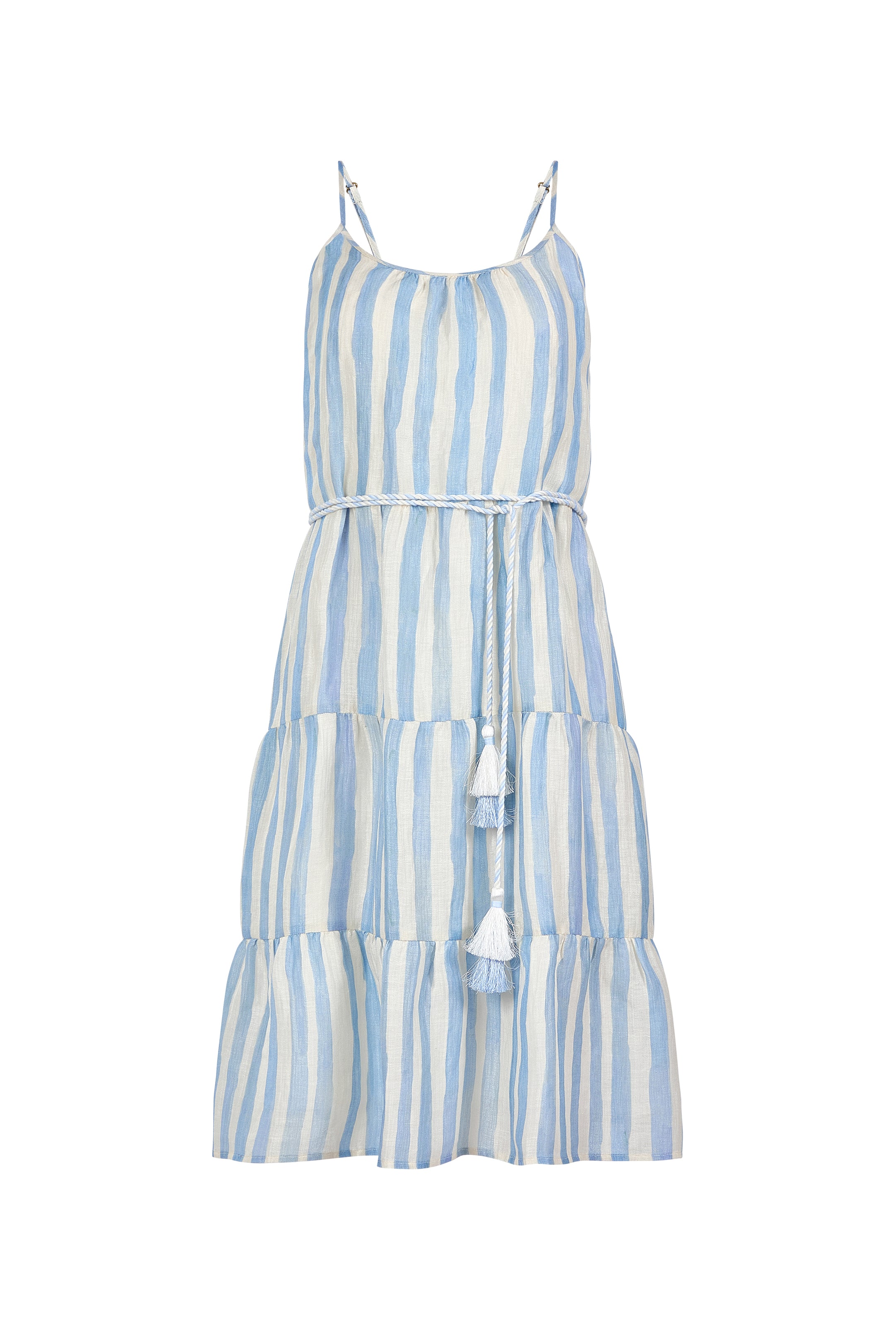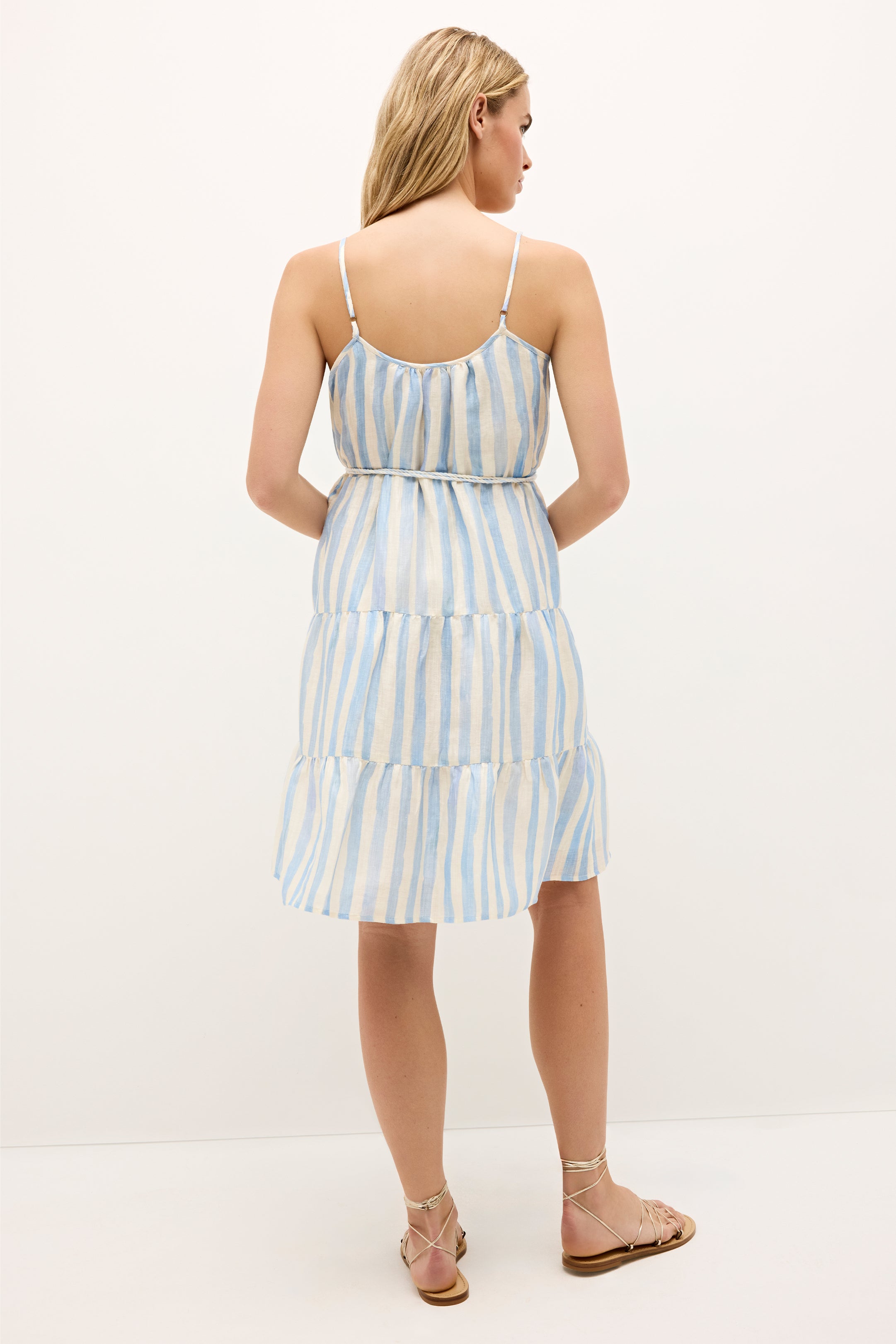 With a scoop neckline and adjustable spaghetti straps, Sydney is the throw-on-and-go mini dress that still feels refined. Cut in our new sky-and-cream watercolor stripe, the easy silhouette can be styled with the cable twist belt for shape or worn loose for a breezy summer vibe.