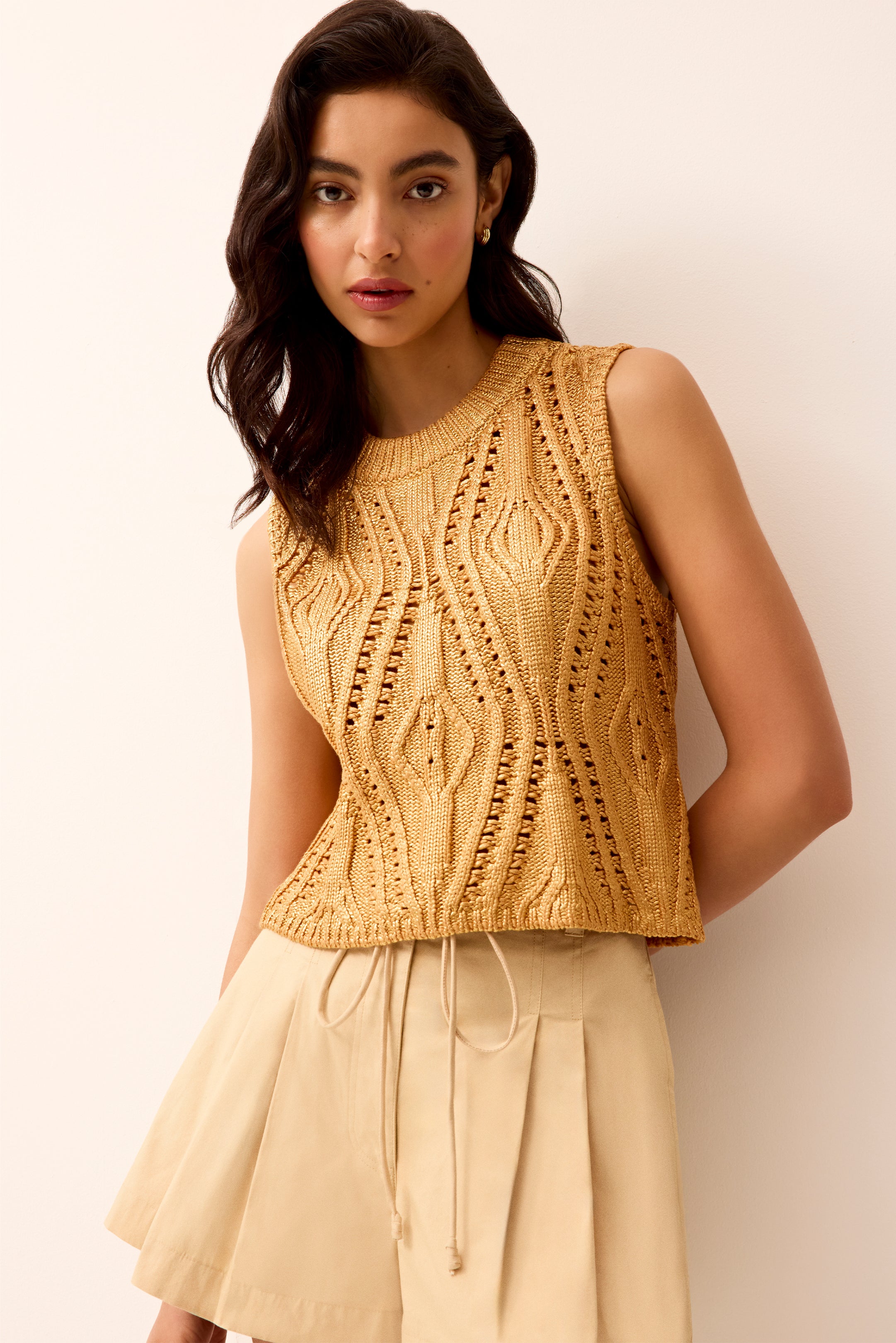 Equally feminine and utilitarian, our A-line Lander short is made from sleek cotton chino with a pleated silhouette that creates a beautiful fit. Designed to sit high on your waist, it has a removable belt with long, corded end ties. This classic Beige style fastens with a center-front zip and hook-and-eye closure.