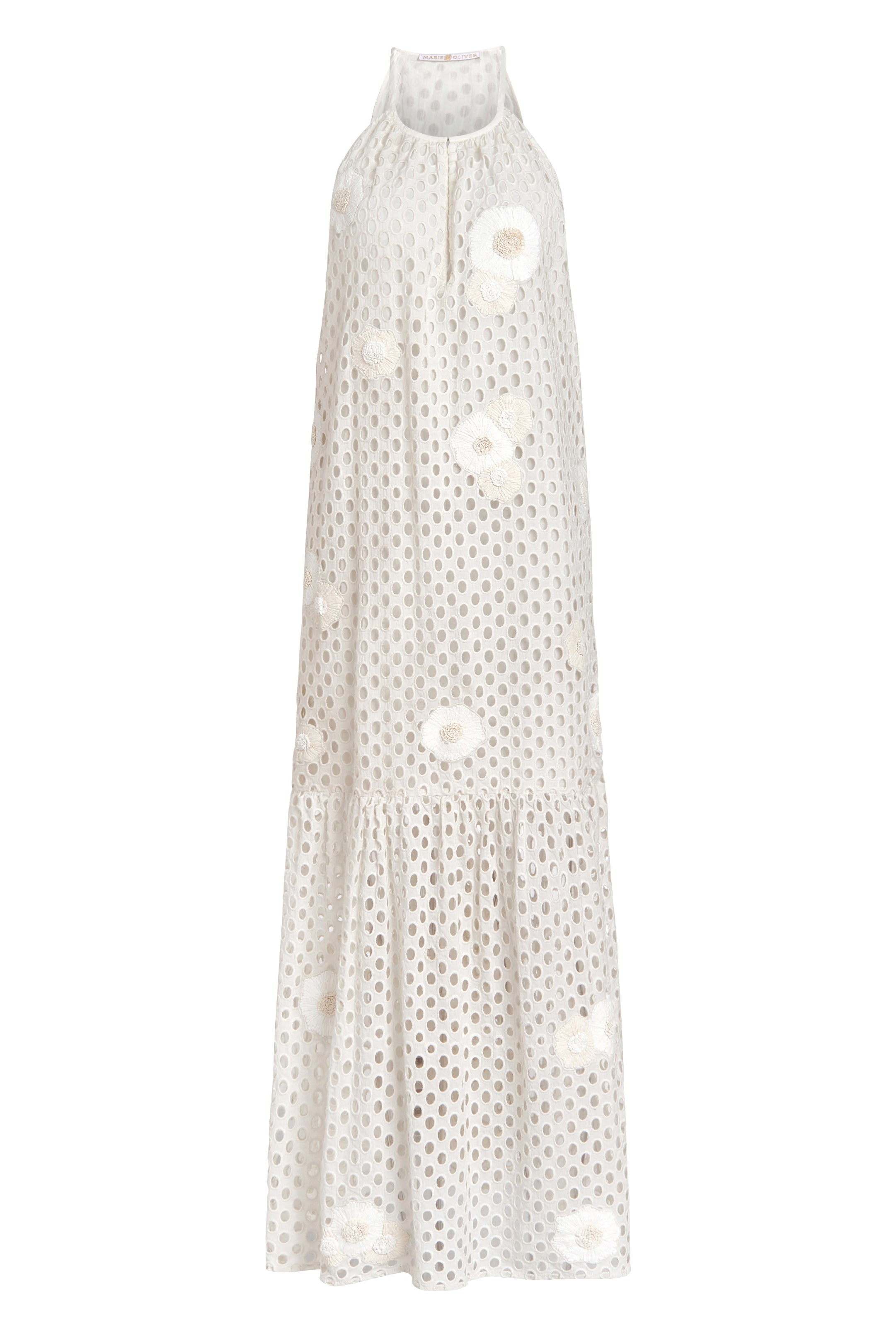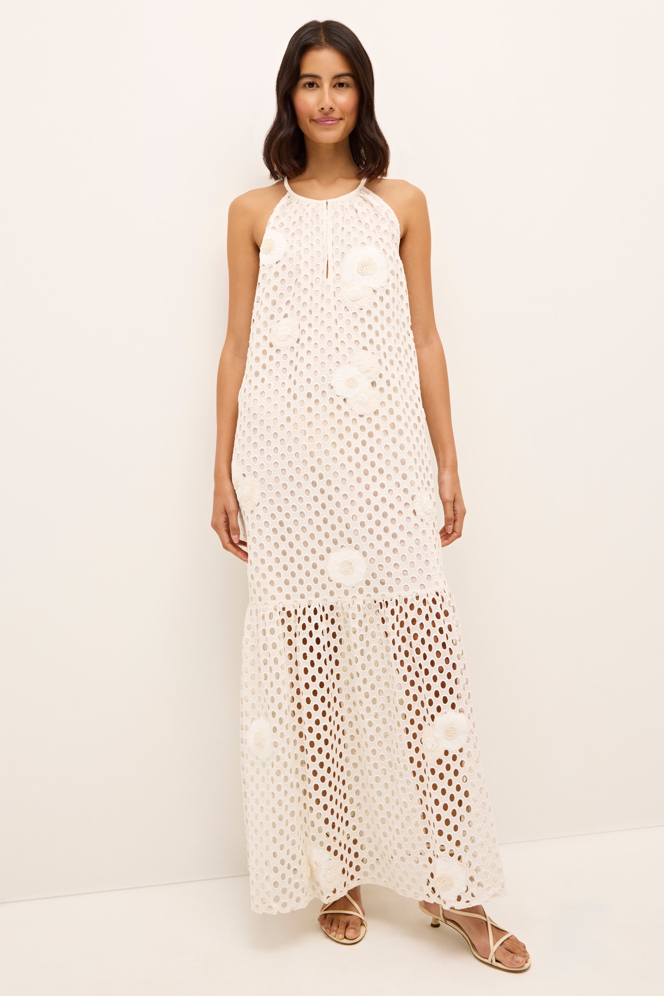 From its structural lines to its show-stopping eyelet fabric and raffia embroidery, our new Adley maxi in a creamy white is designed to make an impression—perfect for summer graduates, brides-to-be, and long nights under the stars. Designed with flexibility in mind, you can wear it with or without the fabric belt, and neckline open or closed.