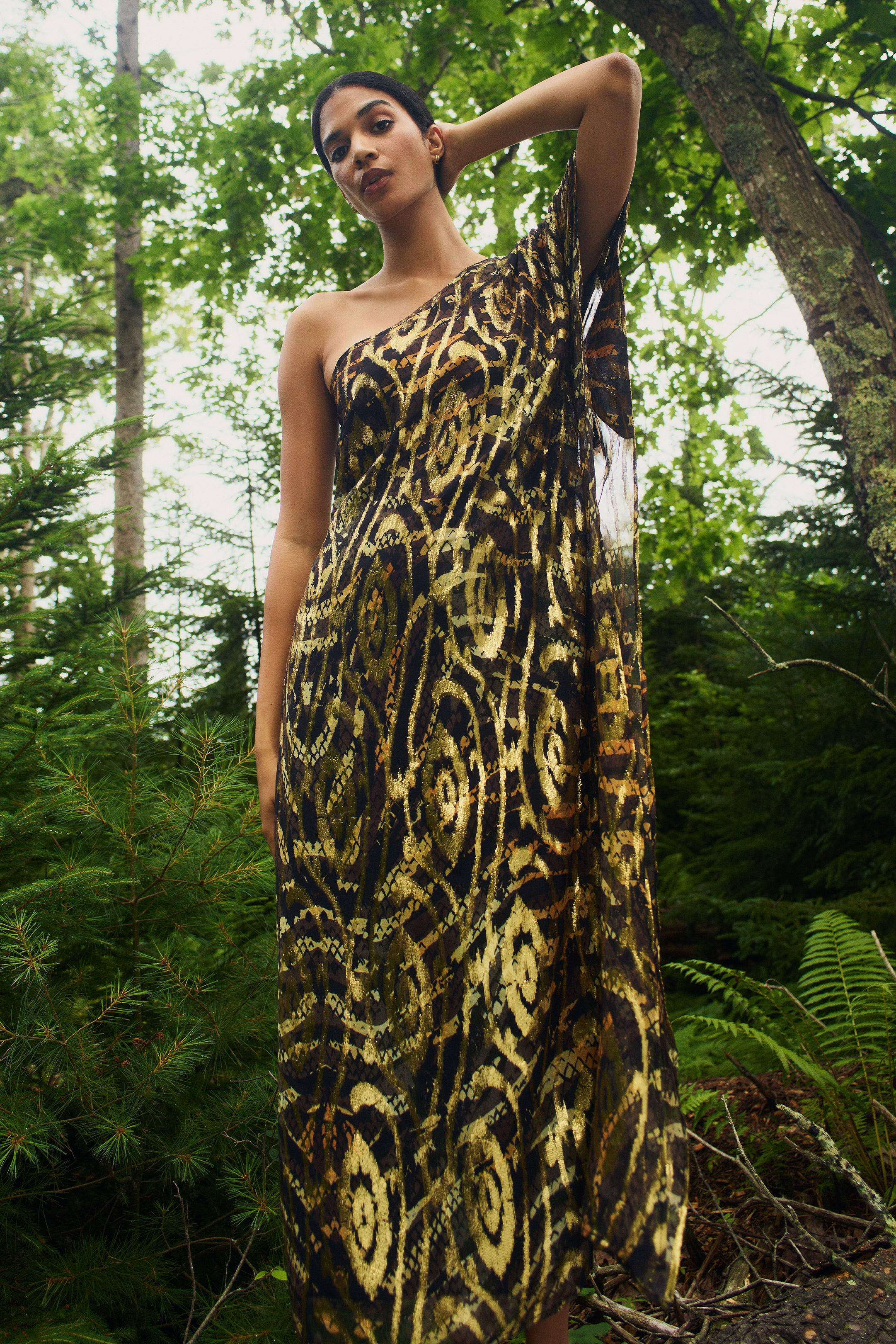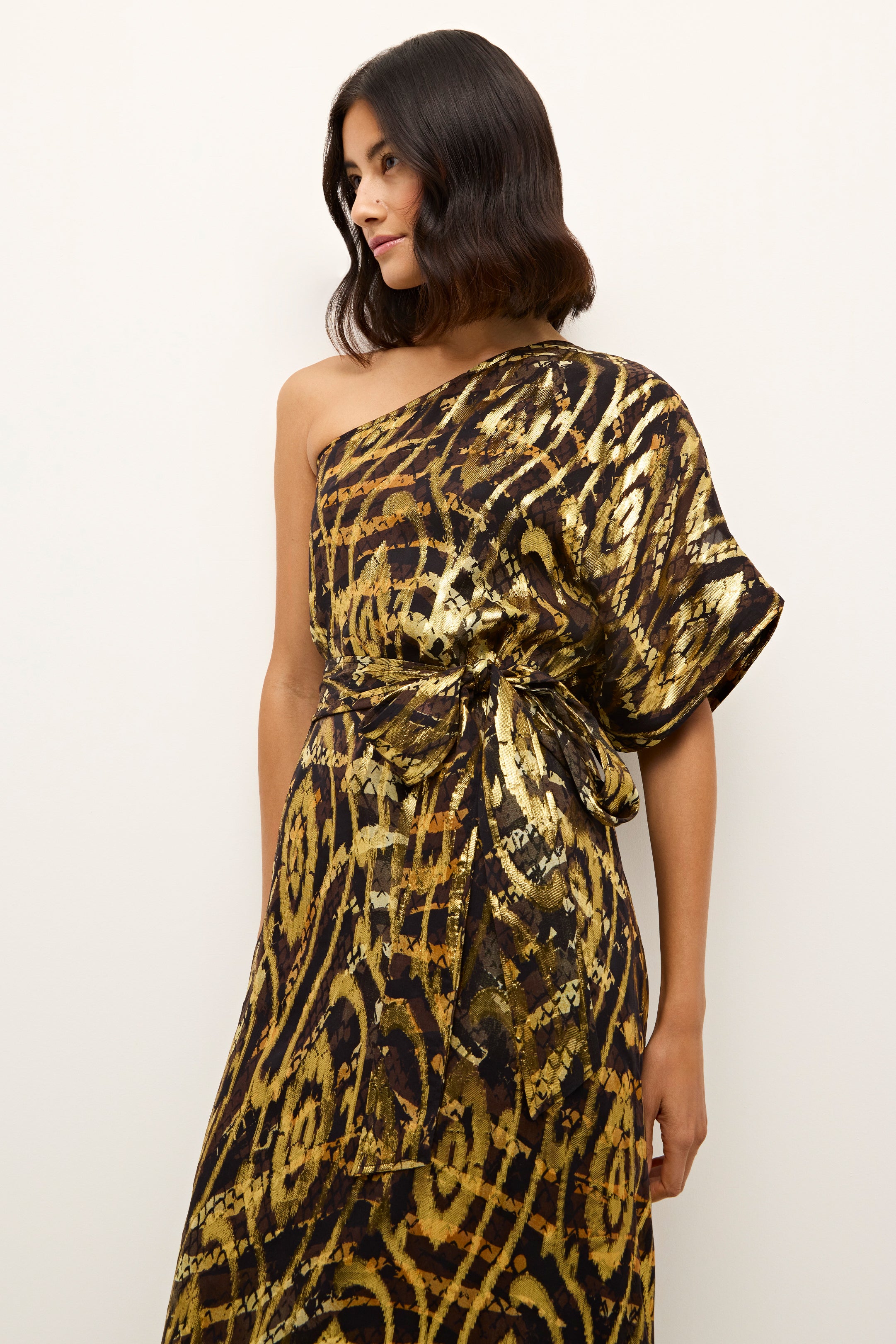 -One shoulder caftan fit
