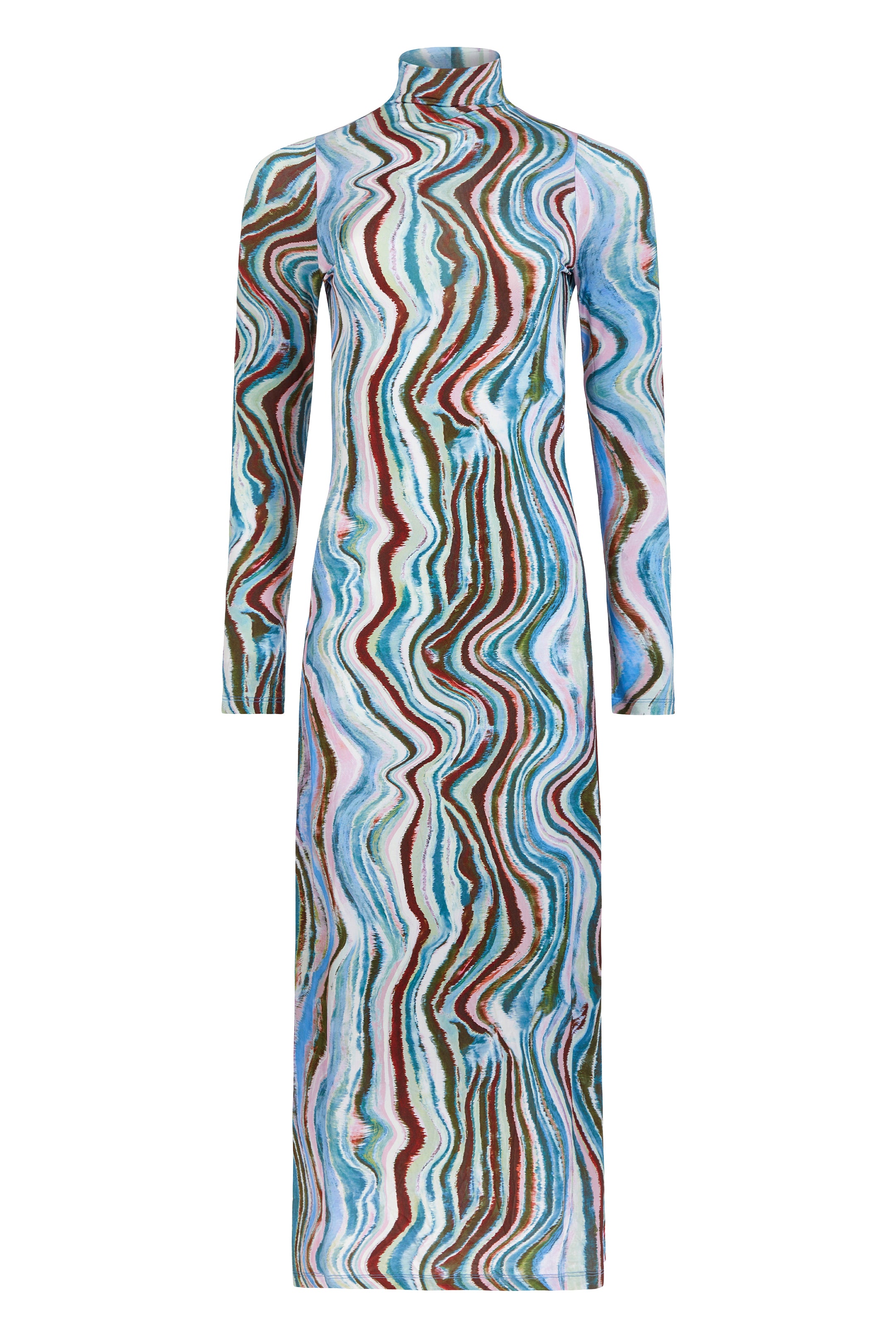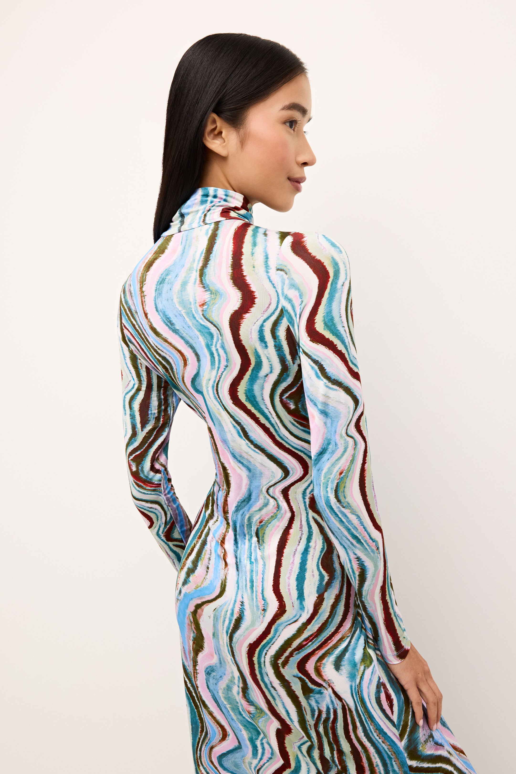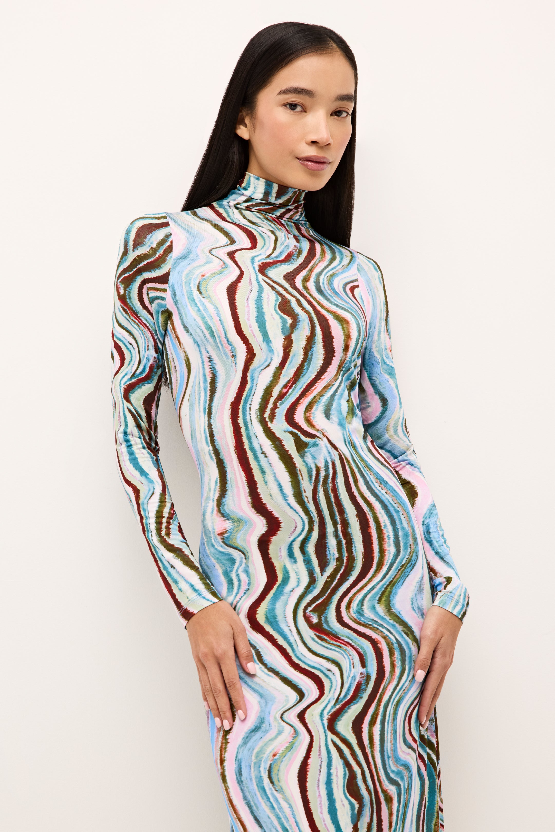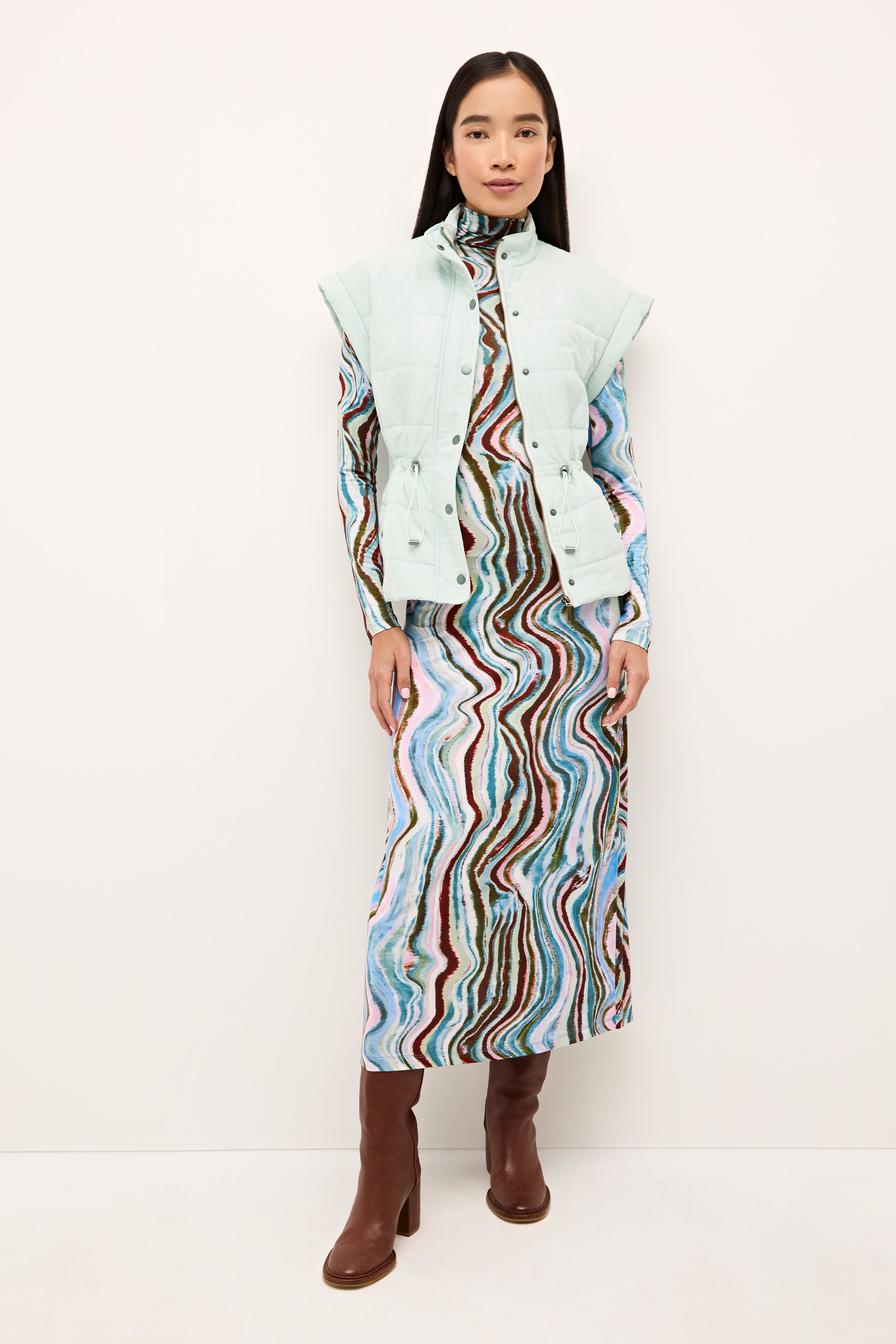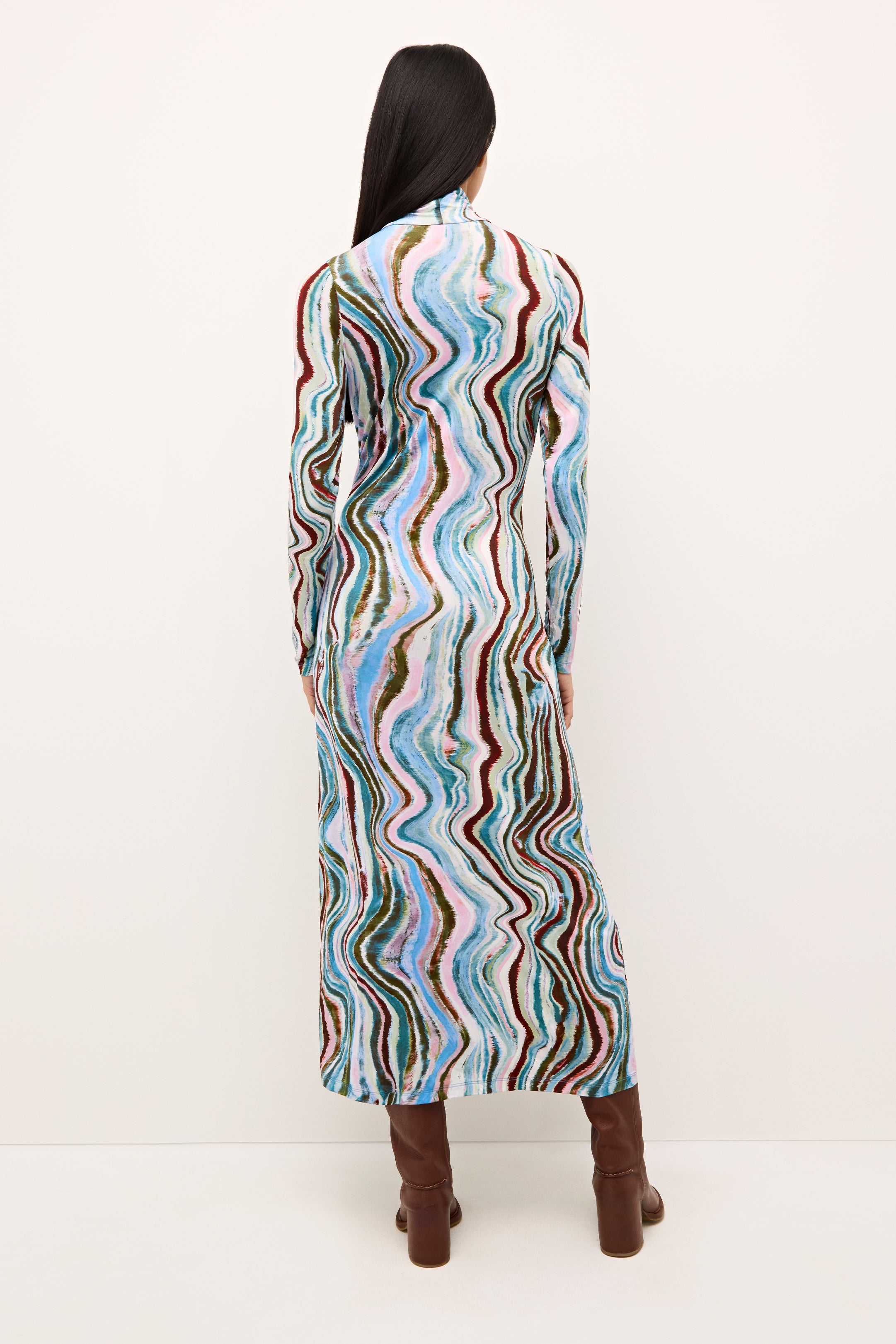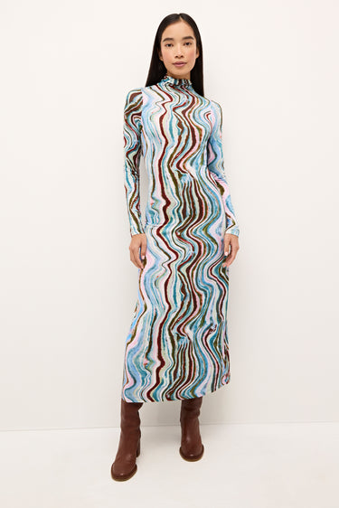 Versatility is Paxton's superpower. Wear this soft, figure-skimming turtleneck dress to everything from cool weather date nights to work events. The easy-to-wear silhouette is pictured here in Agate, a striated geological stripe in wintry earth tones. Layer our coordinating Lyndon vest for added warmth.