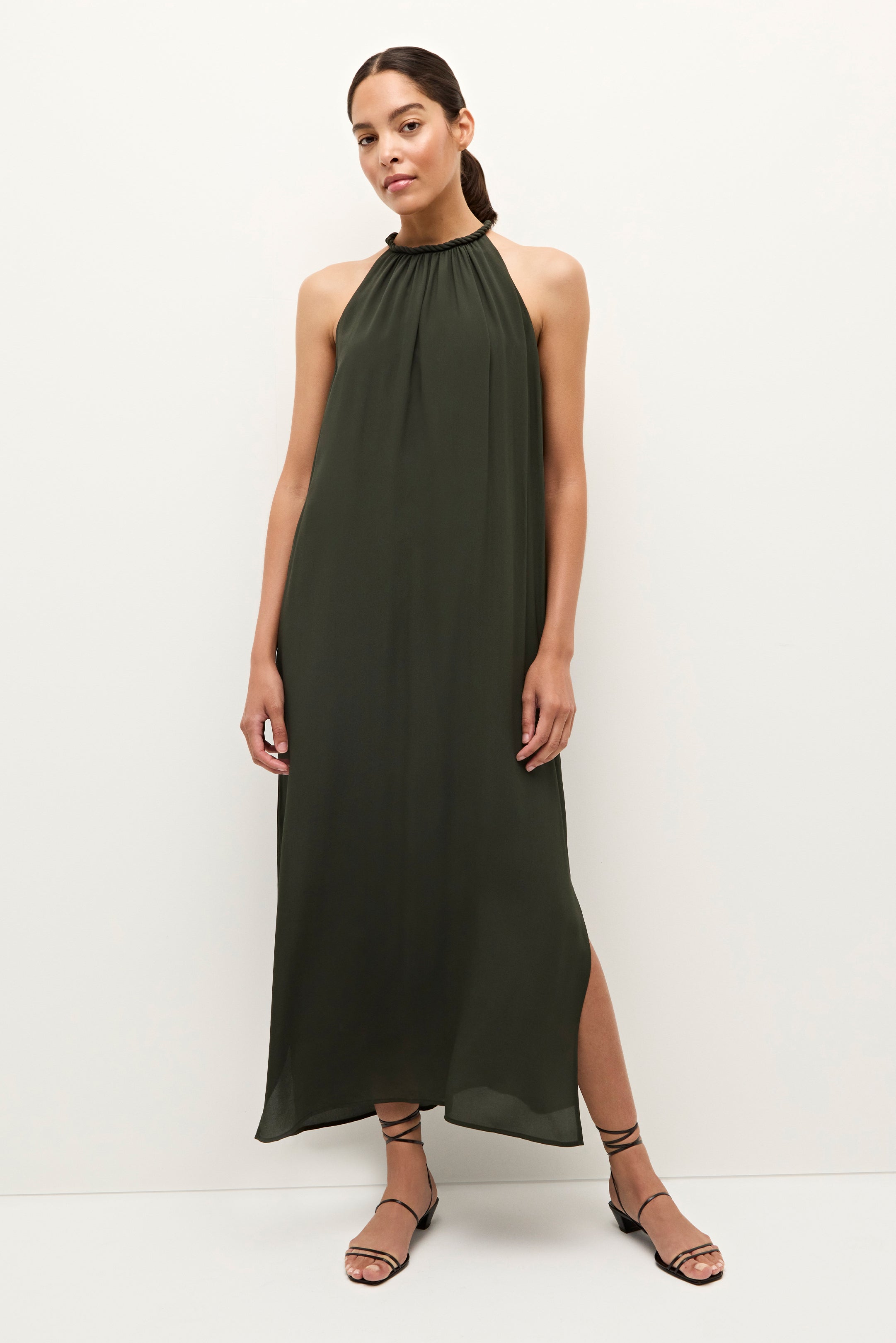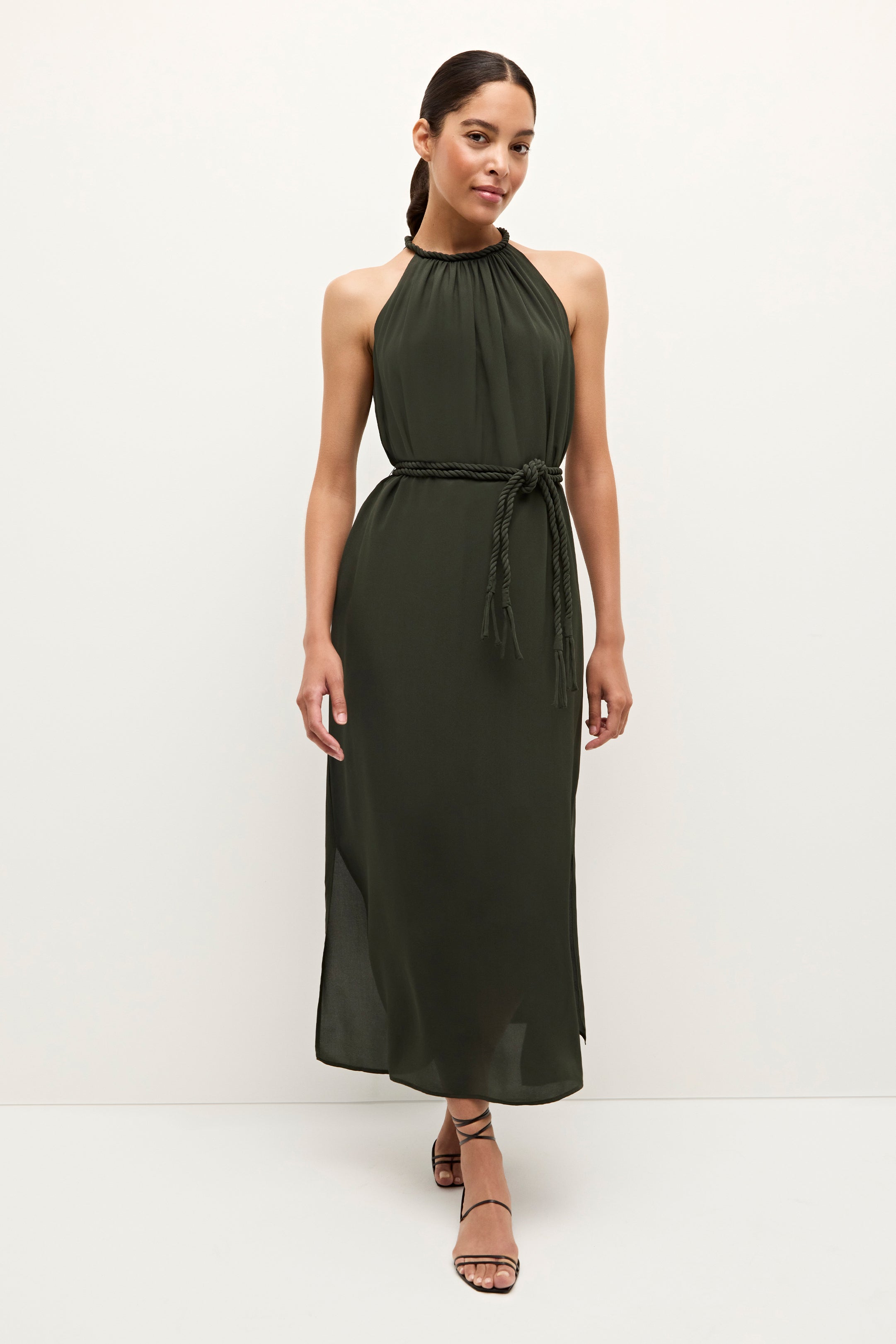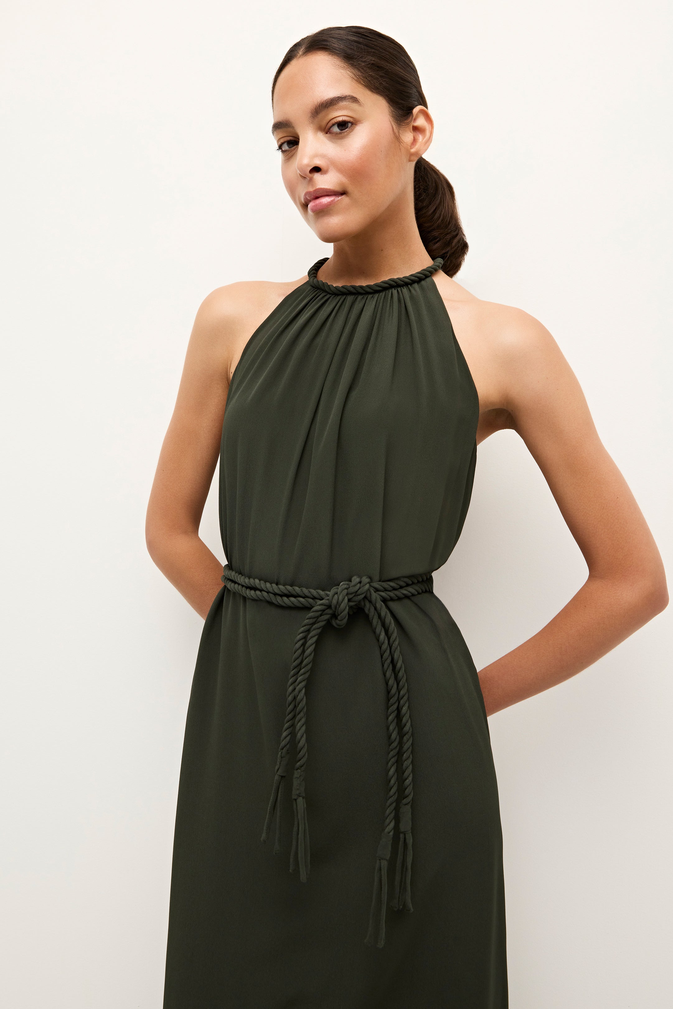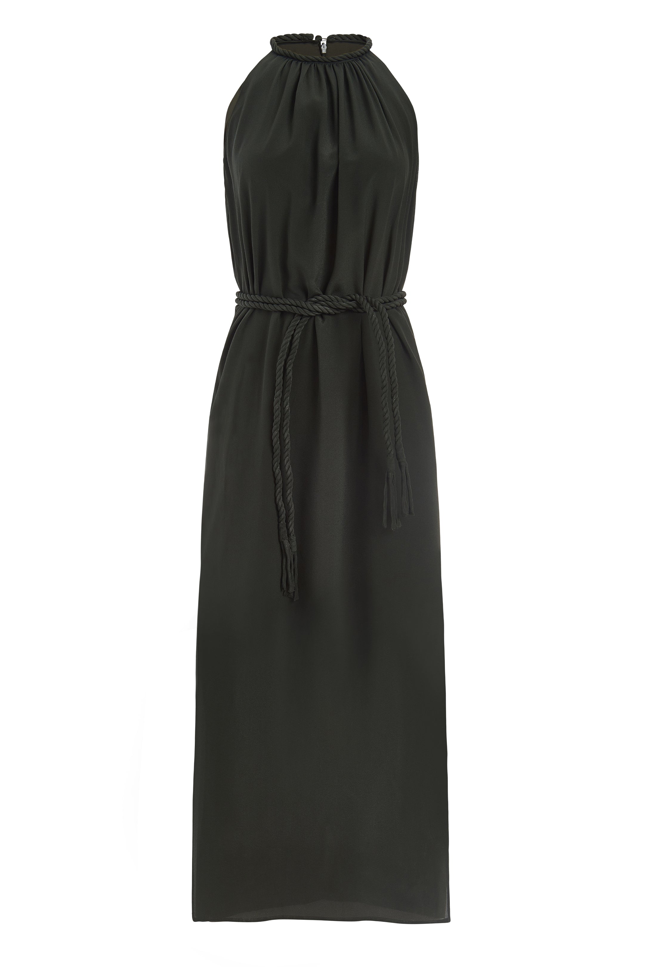As summer fades and wedding season ramps back up again, this chic, RSVP-ready silhouette moves to the top of our must-have list. With clean, classic lines and elegant design details like the twisted braided trim at the neck and belt, this silk stunner can be worn belted to accentuate your shape or left loose for a 60s-inspired, A-line look.