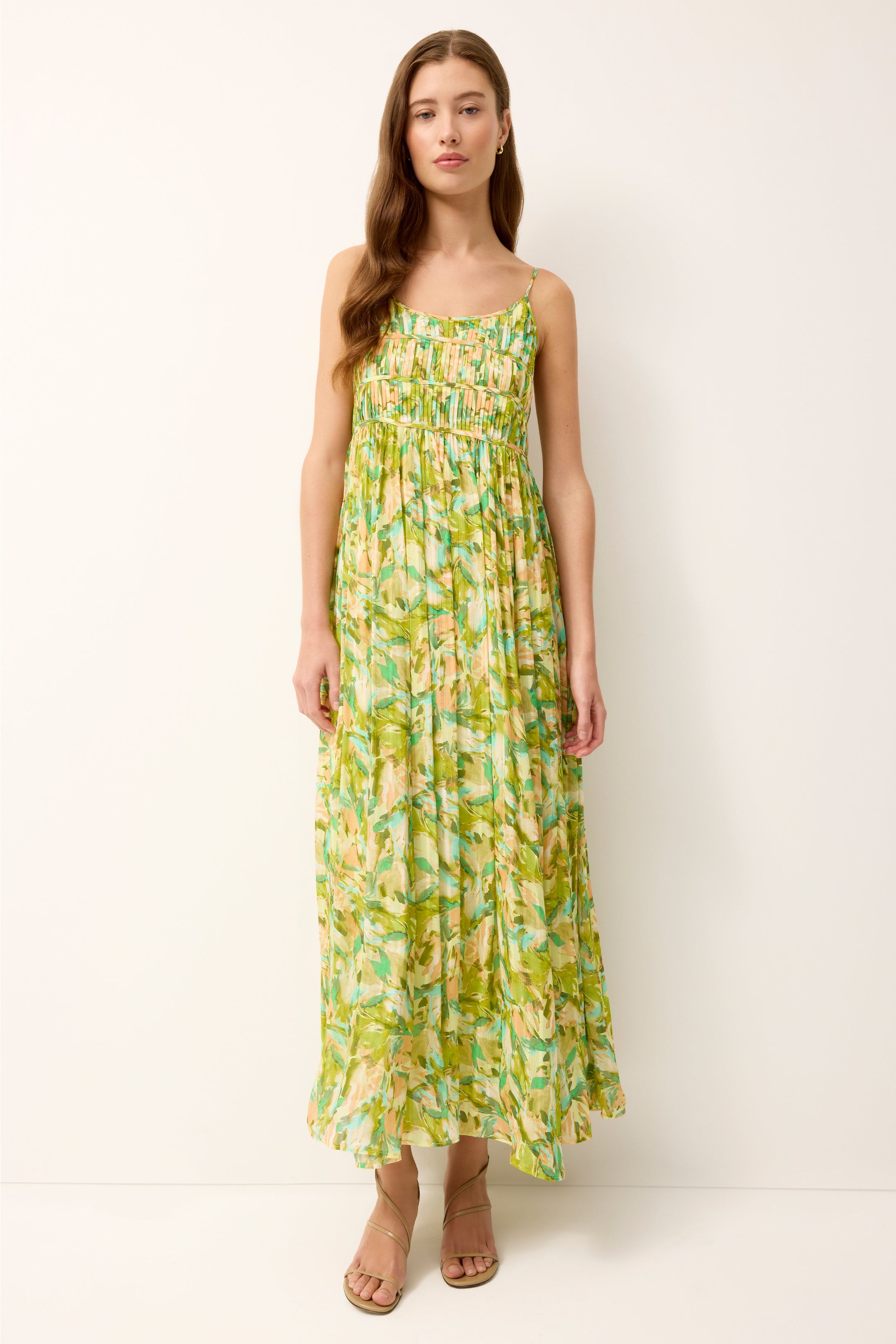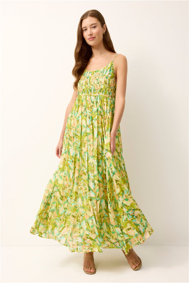 A true standout for the season, the Bailey maxi dress pairs a softly structured bodice with a flowing skirt in a vibrant botanical print. Delicate straps and horizontal seam detailing frame the neckline, while gentle gathers release into a full, movement-filled silhouette. Bold yet effortless, it’s made for destination weddings, garden parties, and any occasion that calls for color and confidence.