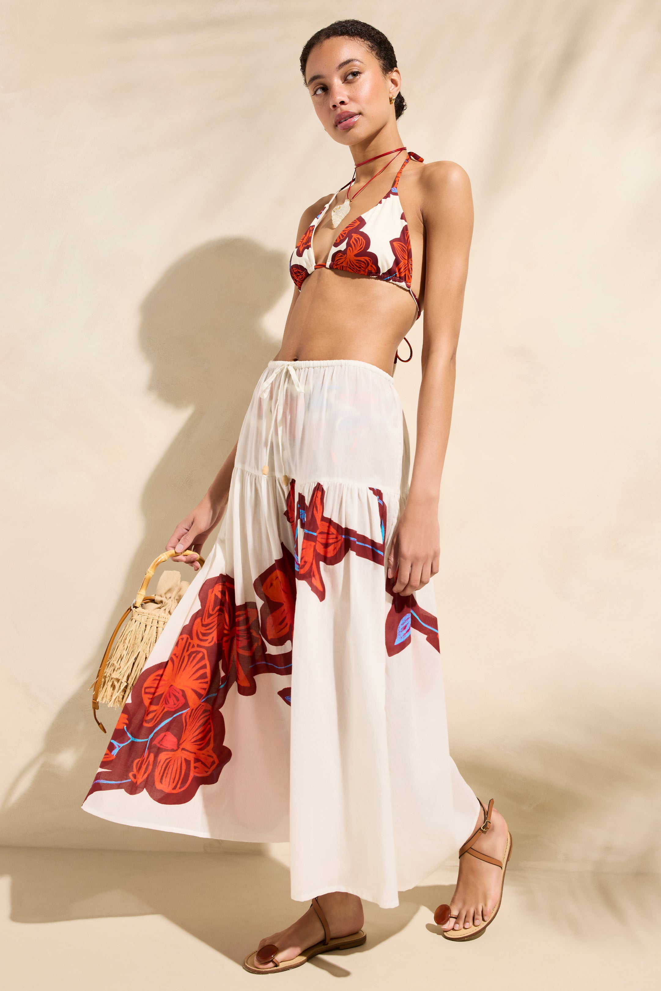 Designed to go from beach to snack bar, our sheer midi-length Louise skirt is made from a lightweight cotton and features a drawstring waistband, a stylish drop waist yoke, and a tropical placement print along the hemline.
