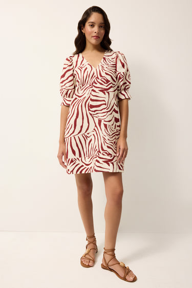 Hello, 30-second outfit: With puff sleeves, a perfect v-neck, and a bold Lionfish stripe with slashes of red and cream, this standout mini dress is destined to continue its best-selling run.