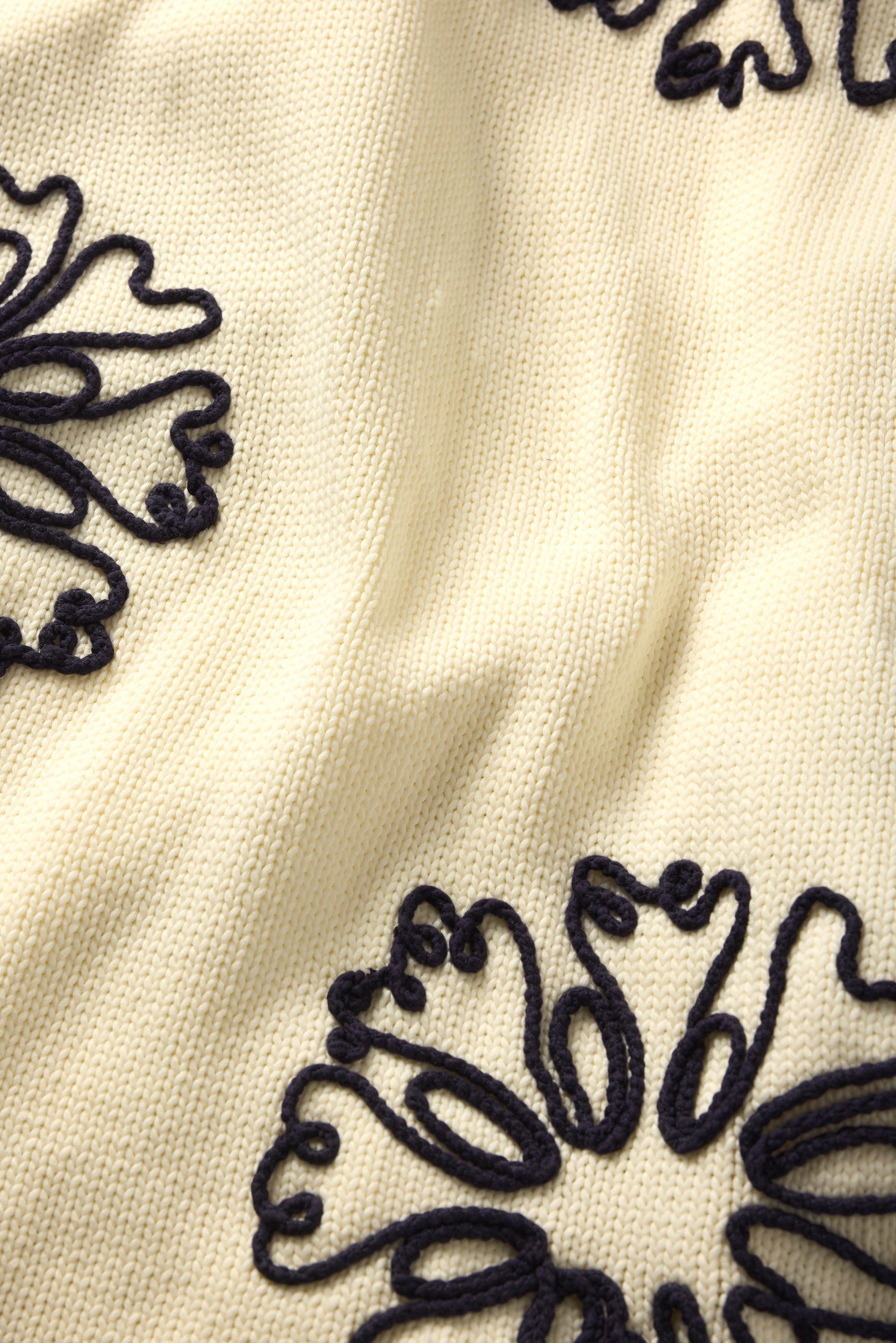 Patricia is made for spring getaways and lingering nights alike. The knit dress features oversized floral embroidery in timeless navy blue on a crisp white ground, and pairs beautifully with the matching Charlie cardigan when temperatures dip after sunset.