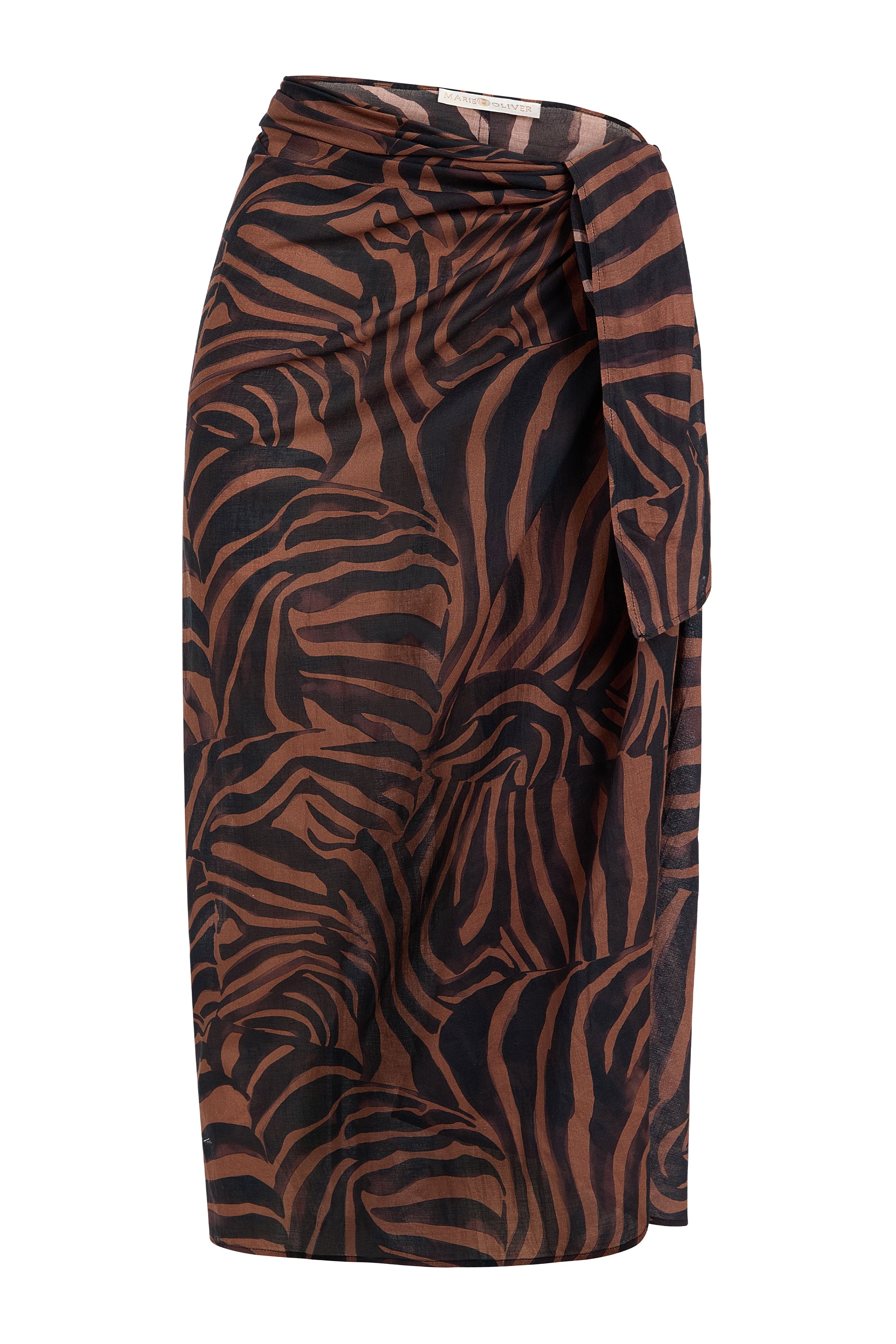 Cut in supersoft sheer cotton, this floaty cover up is a must-have for vacation. Versatility is the name of the game, here: Tie at the waist as a mini or midi skirt, at the chest as a bandeau dress, or around the neck to create a halter. The possibilities are endless. Selena is pictured here in Sailfish, an understand animal stripe, and styled with our one-shoulder Marissa one piece in black.