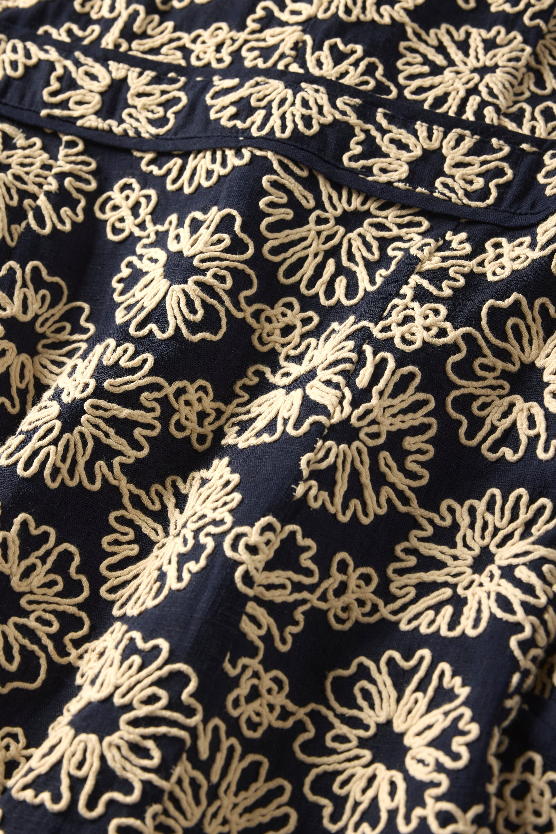 • 85% viscose / 12% linen / 3% lyocell thread with embroidery stitch detail
