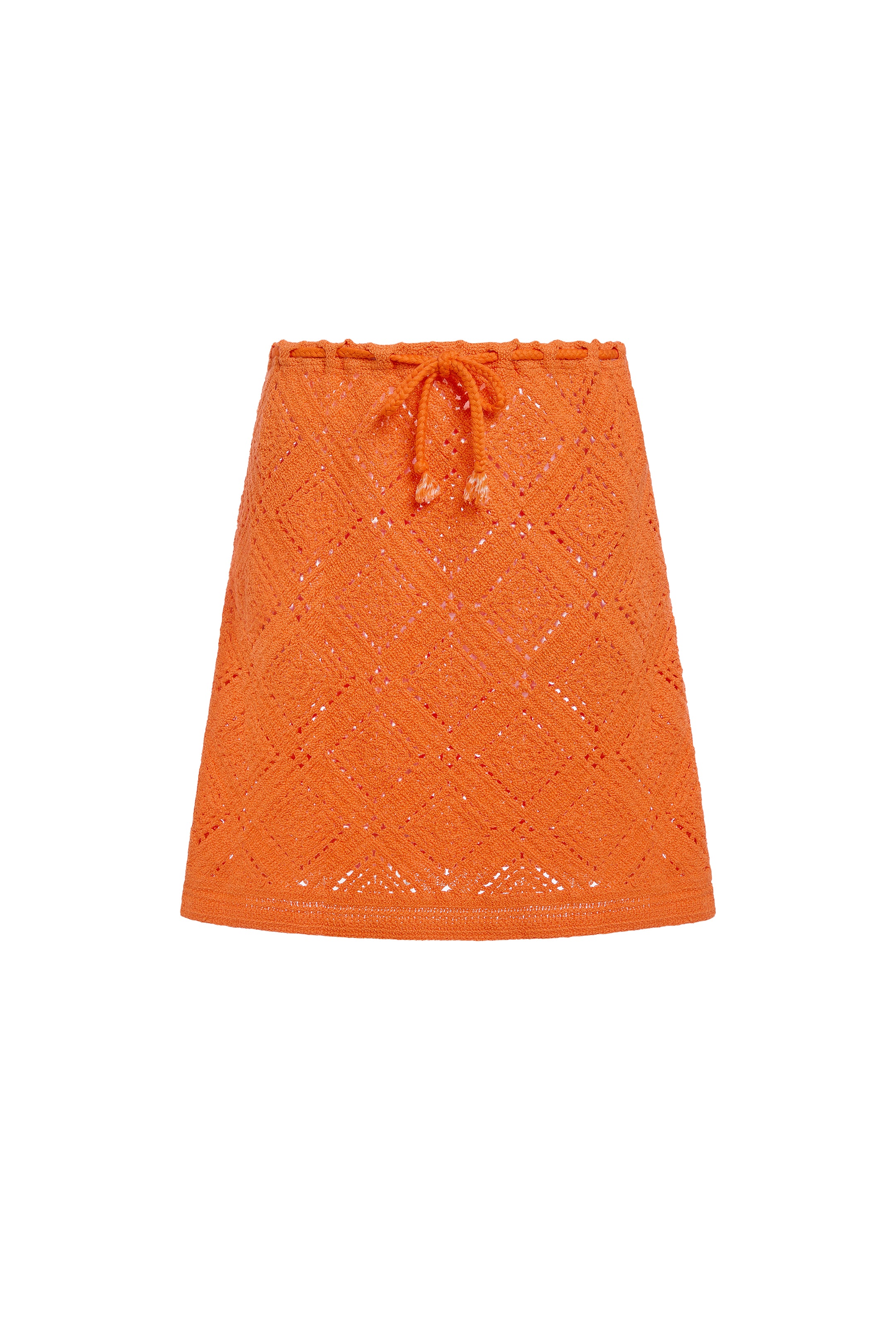 This detailed crochet skirt in a punchy Apricot solid adds instant texture and style to your vacation wardrobe. Worn with our matching Marissa one piece, it makes for a bold and playful color-drenched set.