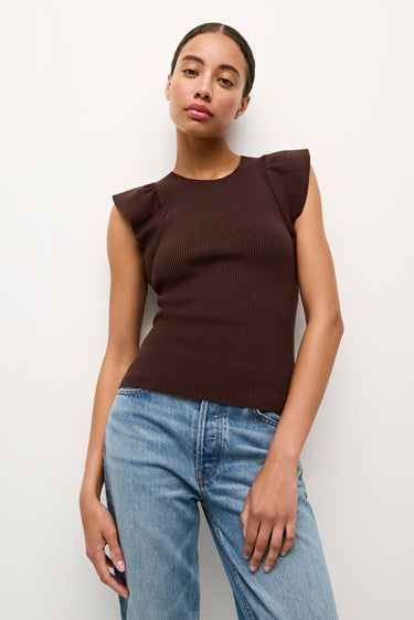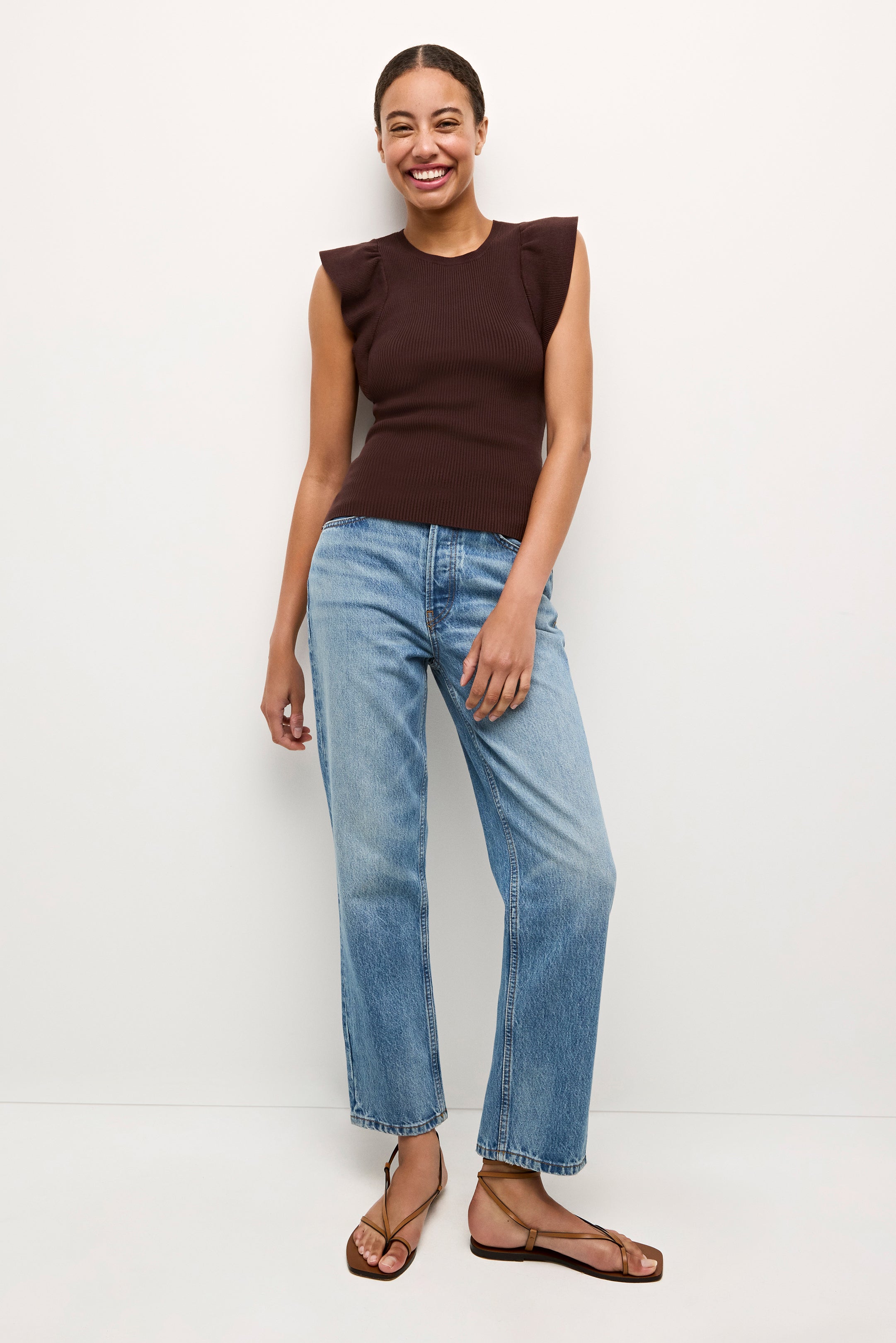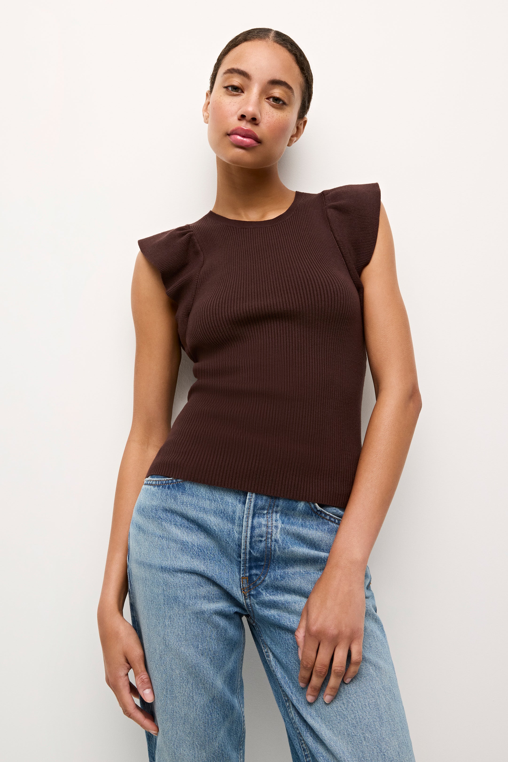 Our best-selling Rory top is one of those foundational pieces every great wardrobe needs. With a ribbed bodice and feminine ruffle sleeves, this figure-flattering style is designed to be tucked in, and pairs beautifully with any of our high- or mid-rise bottoms—especially our signature Mia shorts and Sasha skirts.