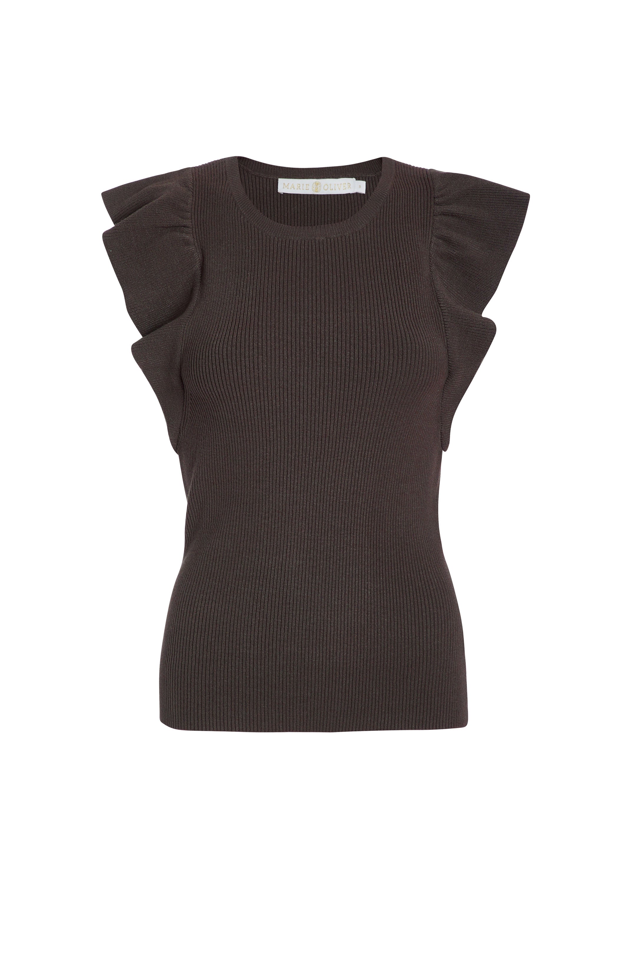 • Ribbed bodice with ruffle sleeve