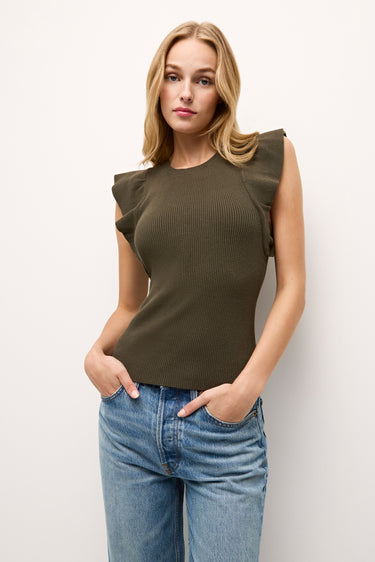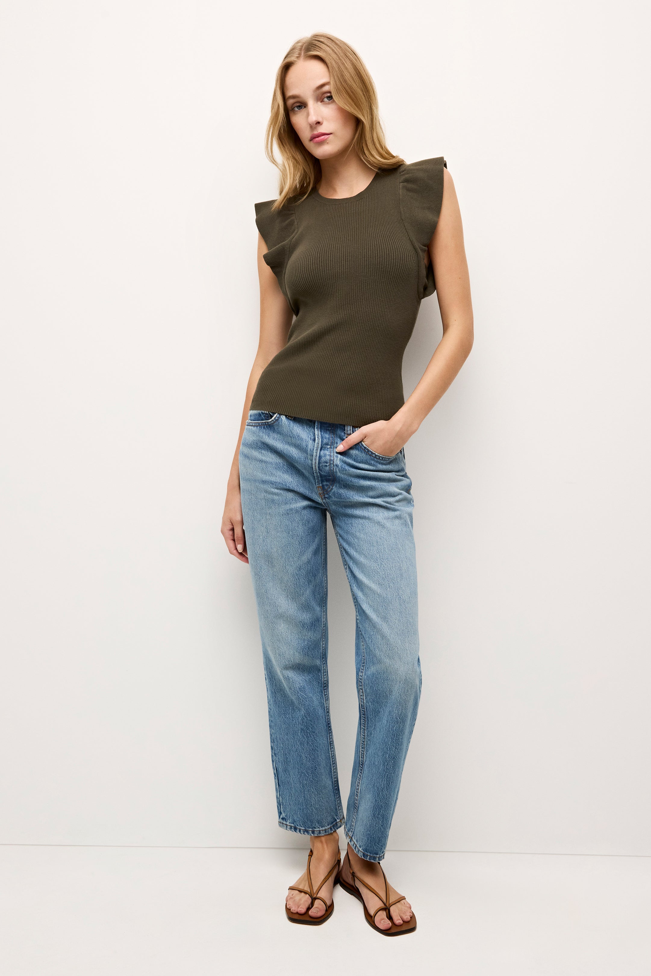 Our best-selling Rory top is one of those foundational pieces every great wardrobe needs. With a ribbed bodice and feminine ruffle sleeves, this figure-flattering style is designed to be tucked in, and pairs beautifully with any of our high- or mid-rise bottoms—especially our signature Mia shorts and Sasha skirts.