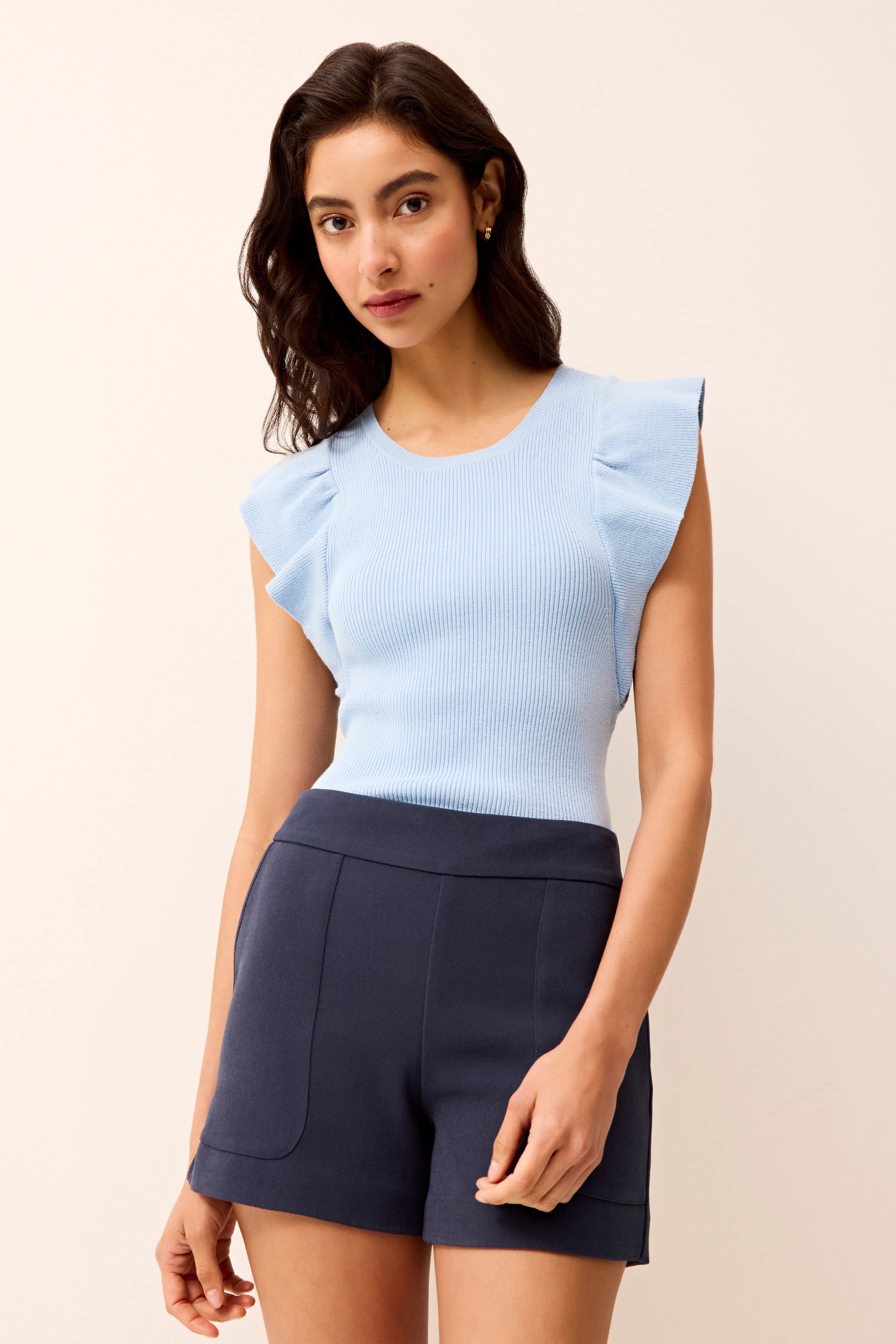 Our best-selling Rory top is one of those foundational pieces every great wardrobe needs. With a ribbed bodice and feminine ruffle sleeves, this figure-flattering style is designed to be tucked in, and pairs beautifully with any of our high- or mid-rise bottoms—especially our signature Mia shorts and Sasha skirts.