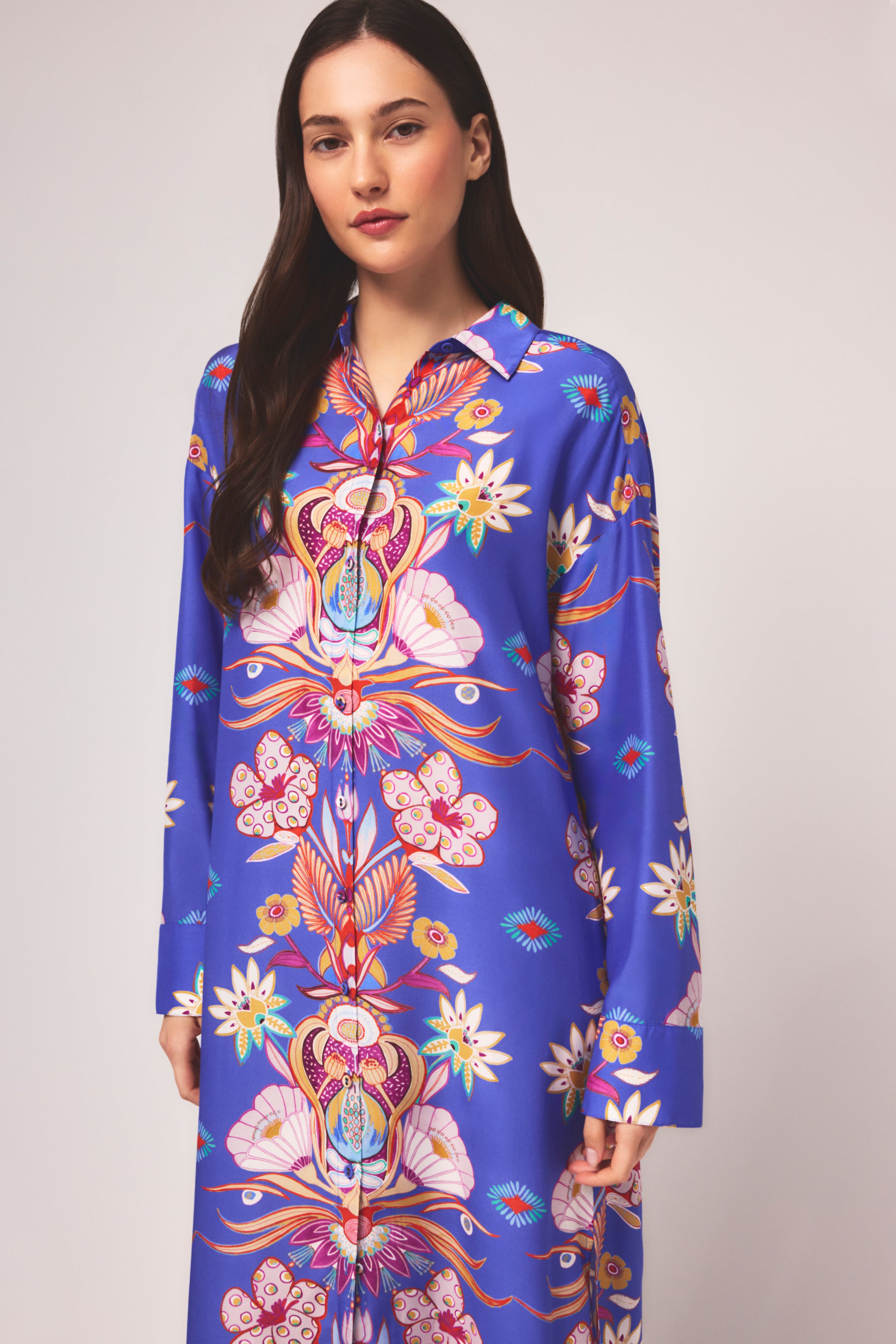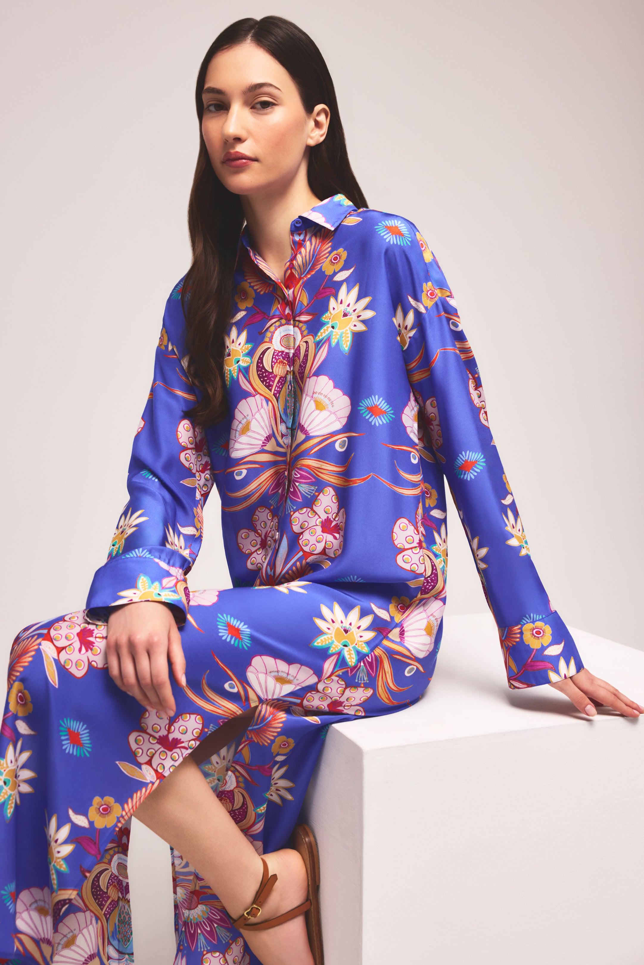 Marnie marries ease of wear with maximalist style. The relaxed fit and classic shirtdress silhouette is the perfect canvas for a placement print, and the combination is instantly sophisticated. The timeless dress is part of our limited edition 10th Anniversary Capsule Collection. Designed as a collector’s celebration, each piece in the capsule embodies the spirit of the Marie Oliver woman: artful, inspired, and always evolving. Quantities are limited.