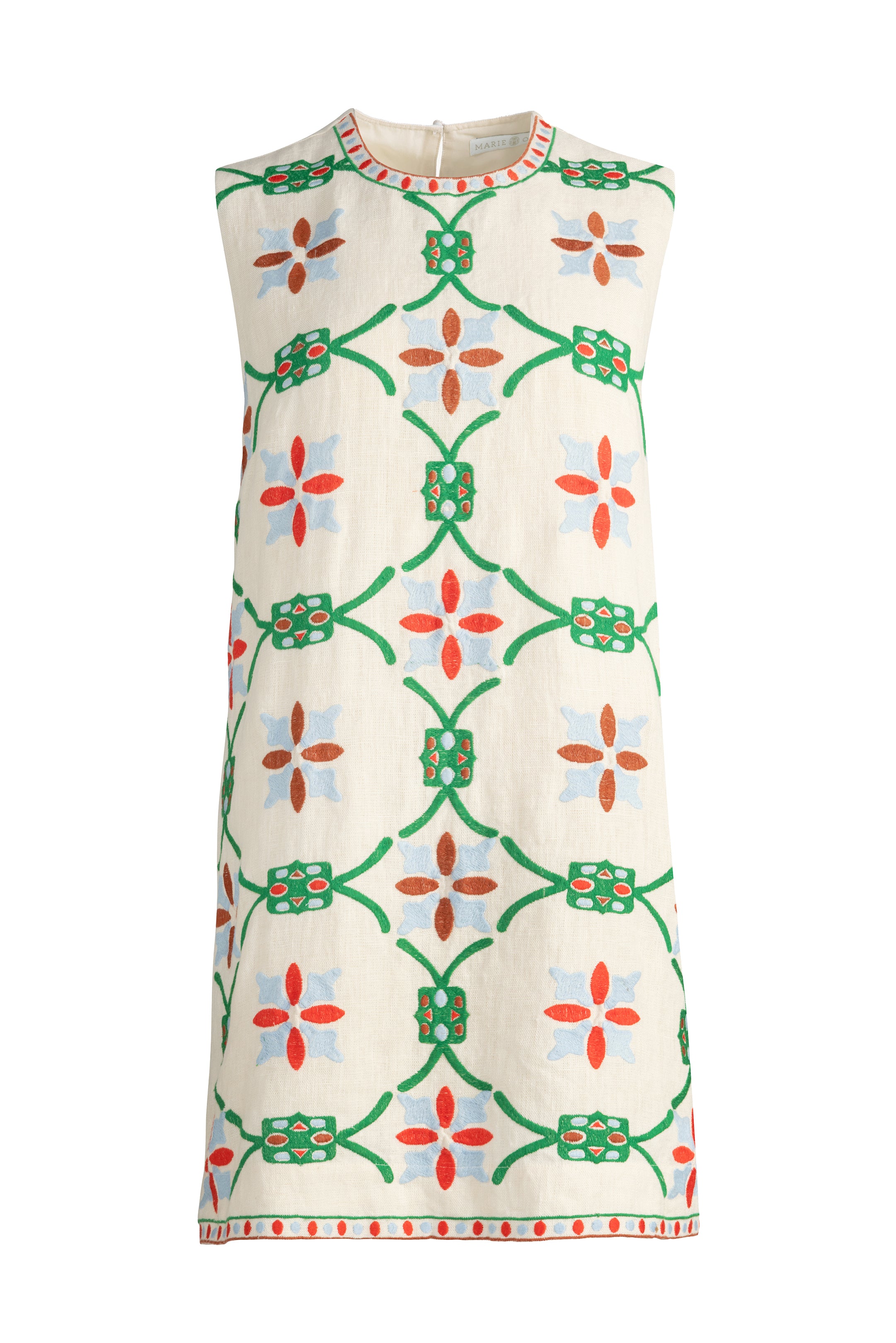 The clean lines of this classic shift make it an ideal canvas for a statement print like Trellis, the embroidered geometric that enlivens the front of our new Yvette mini. Made from cool linen, the relaxed silhouette is a team favorite this summer, and it’s easy to see why.