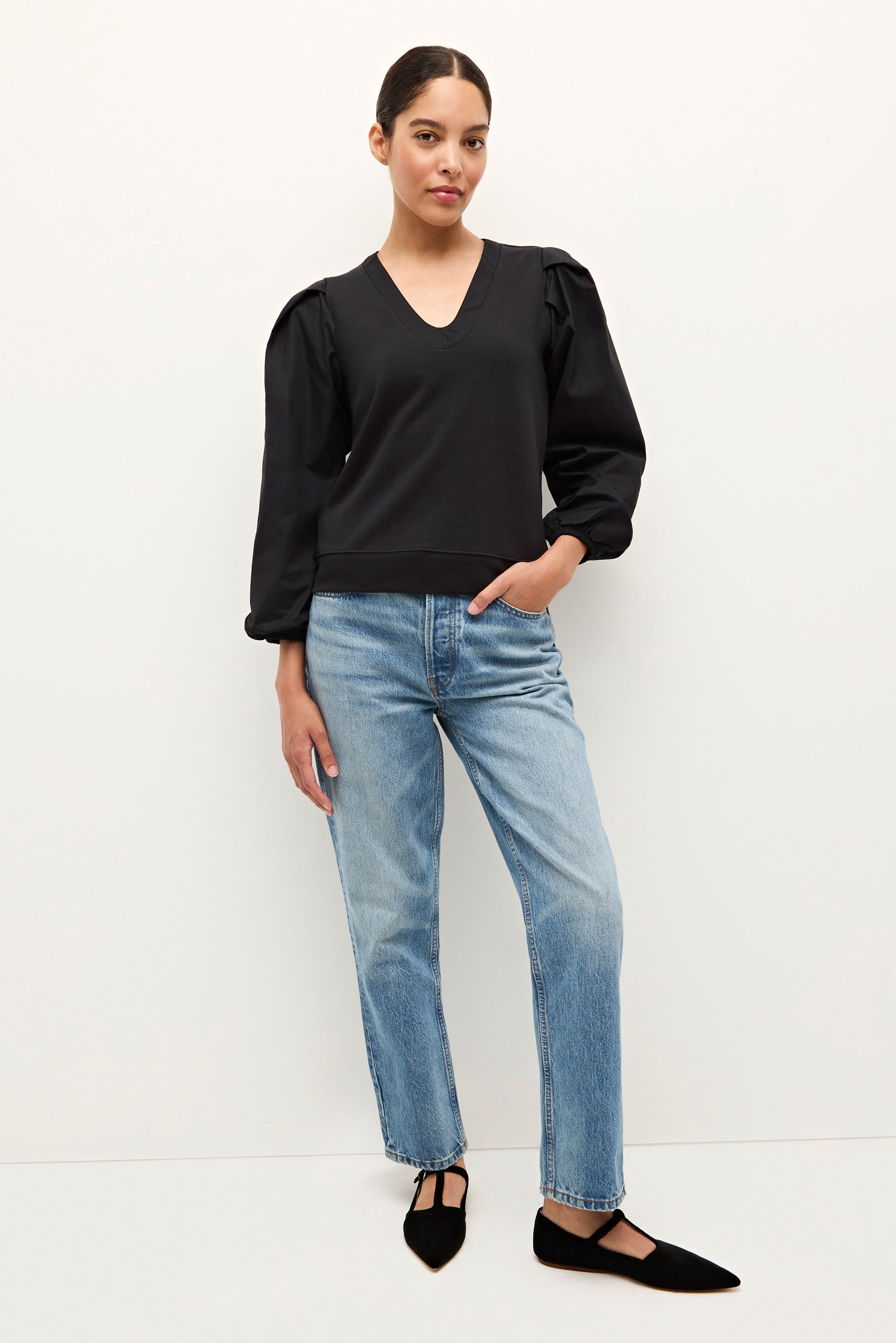 Meet Bianca. Our Viva popover reimagined for fall, Bianca is what happens when Marie Oliver puts our signature spin on leisurewear. The cozy popover features a French terry body and full cotton poplin sleeves, but it’s the thoughtful design details—like tailored pleats along the sleeves and body—that elevate this weekend staple.