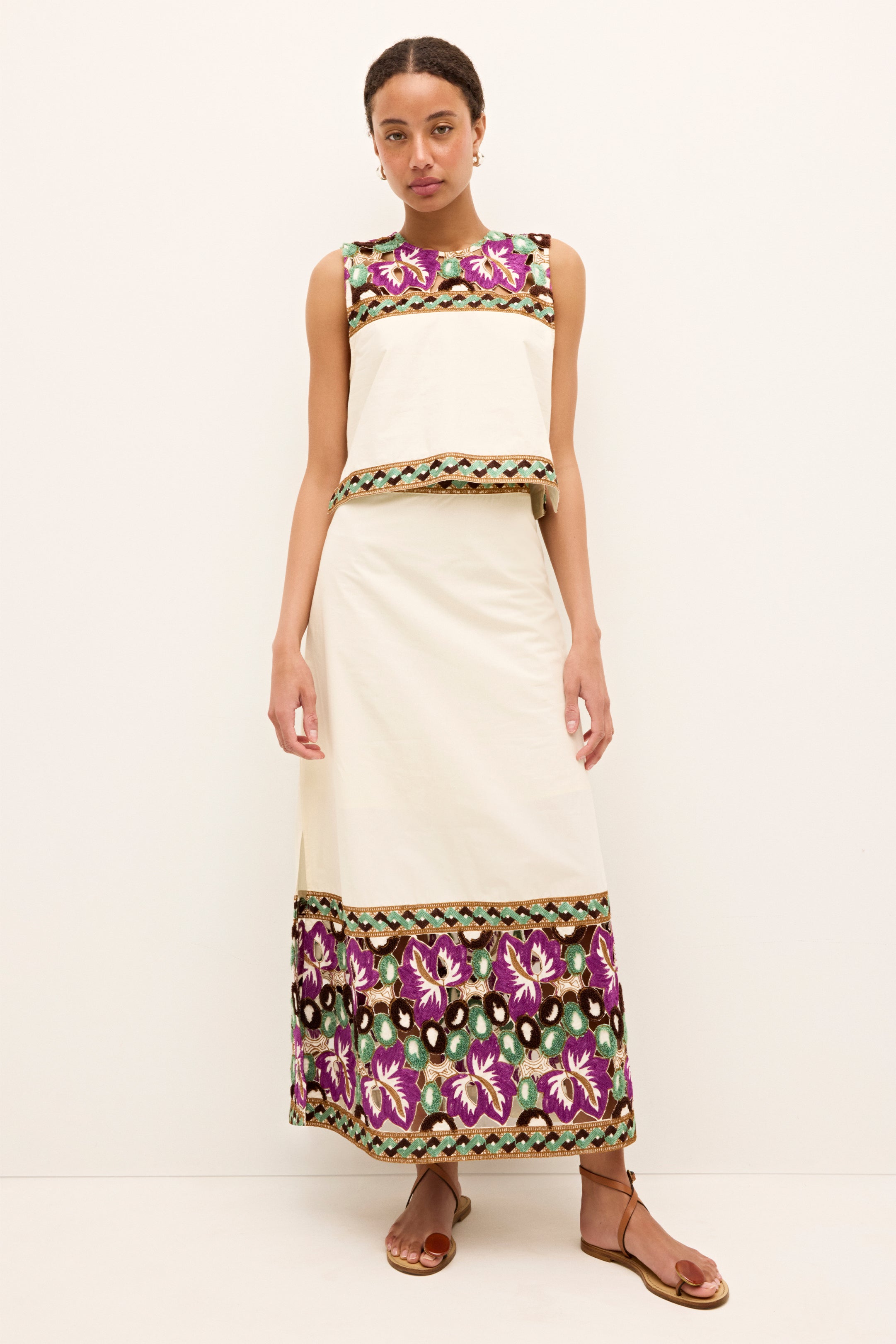 Our favorite vacation-ready styles are transportive, channeling sunnier climes and exotic locales—and our new Albia skirt paired with our matching Lorel top does just that, combining textural details like metallic thread, zig-zag trim, and highly detailed embroidery with a simple, clean-lined silhouette for an elevated off-duty look.