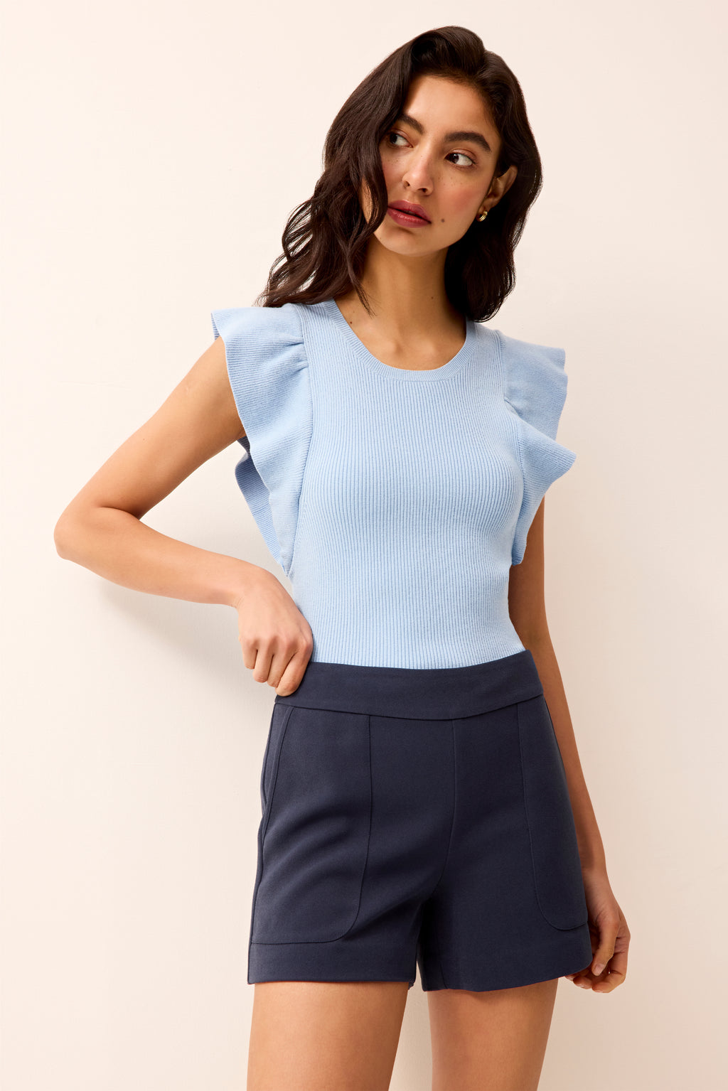 Our best-selling Rory top is one of those foundational pieces every great wardrobe needs. With a ribbed bodice and feminine ruffle sleeves, this figure-flattering style is designed to be tucked in, and pairs beautifully with any of our high- or mid-rise bottoms—especially our signature Mia shorts and Sasha skirts.