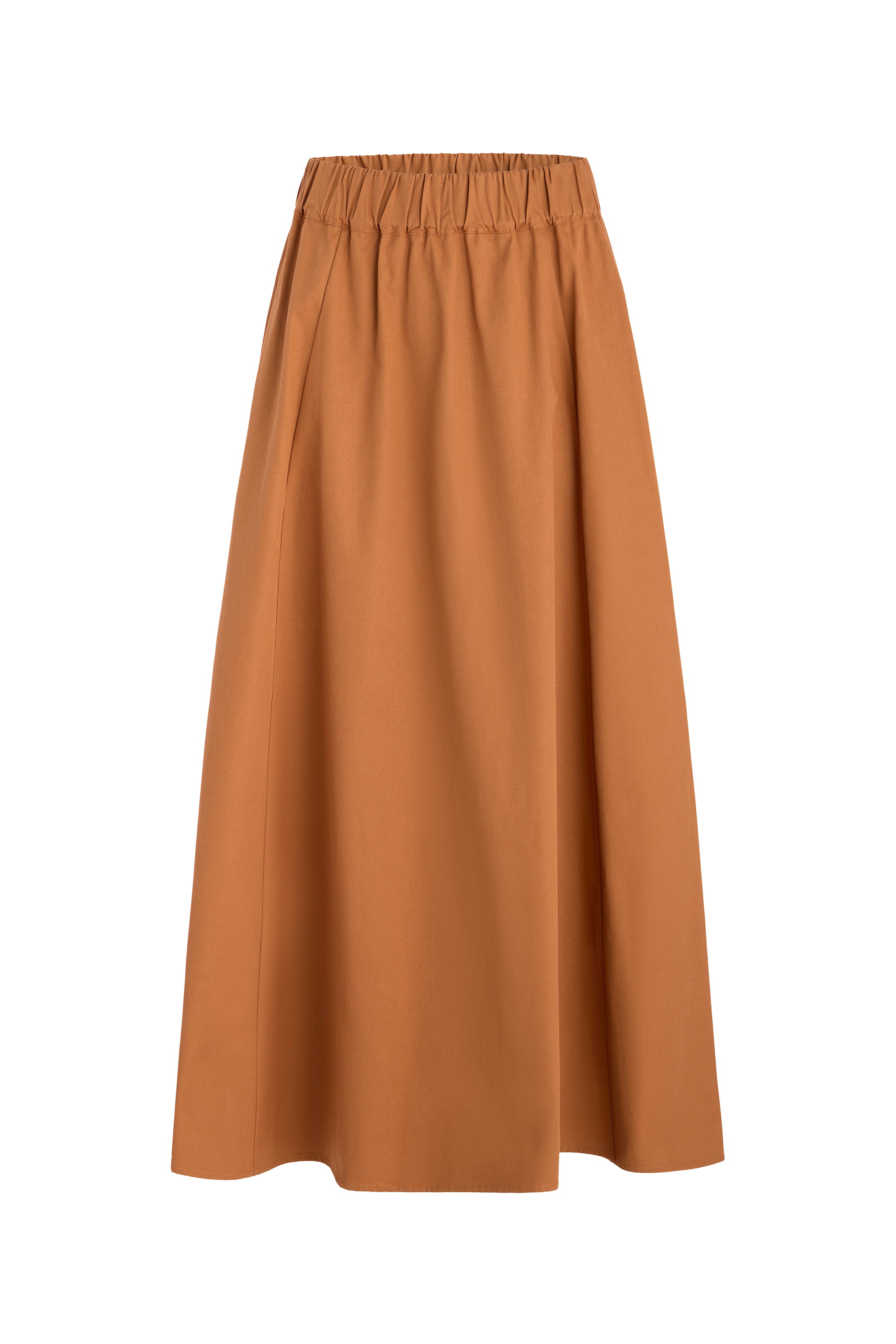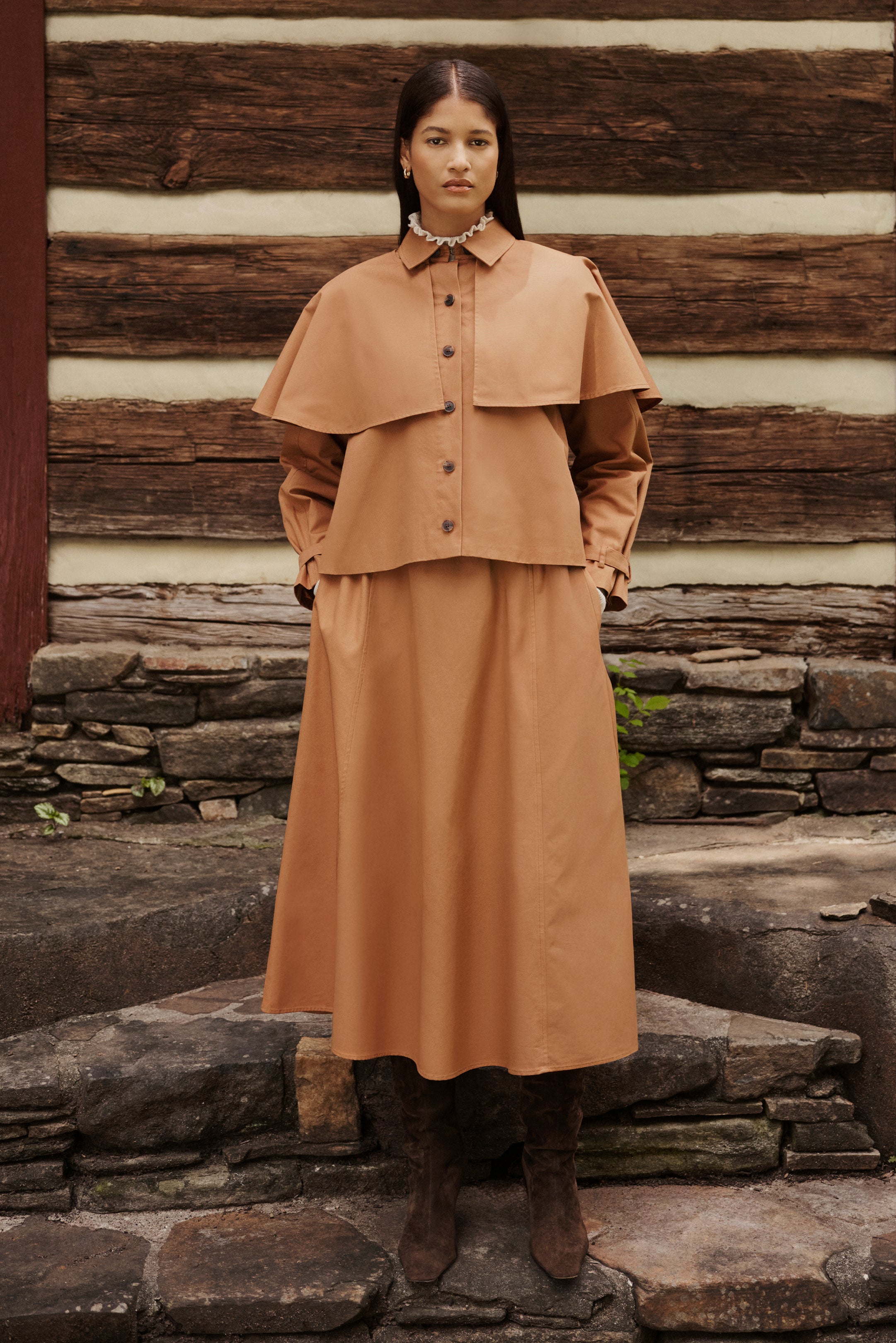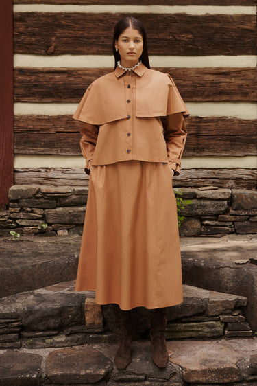 With a voluminous skirt, an elastic waistband, and pockets(!), our Sasha skirt is as fun to wear as it is flattering. This season, we’ve played up the romance and versatility of the silhouette in a rich argan hue. Pair Sasha with our new knit Addison top in Buff for your new favorite work-to-weekend look as the seasons shift. For a statement set, the matching Ethridge trench completes the look.