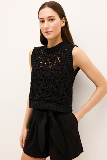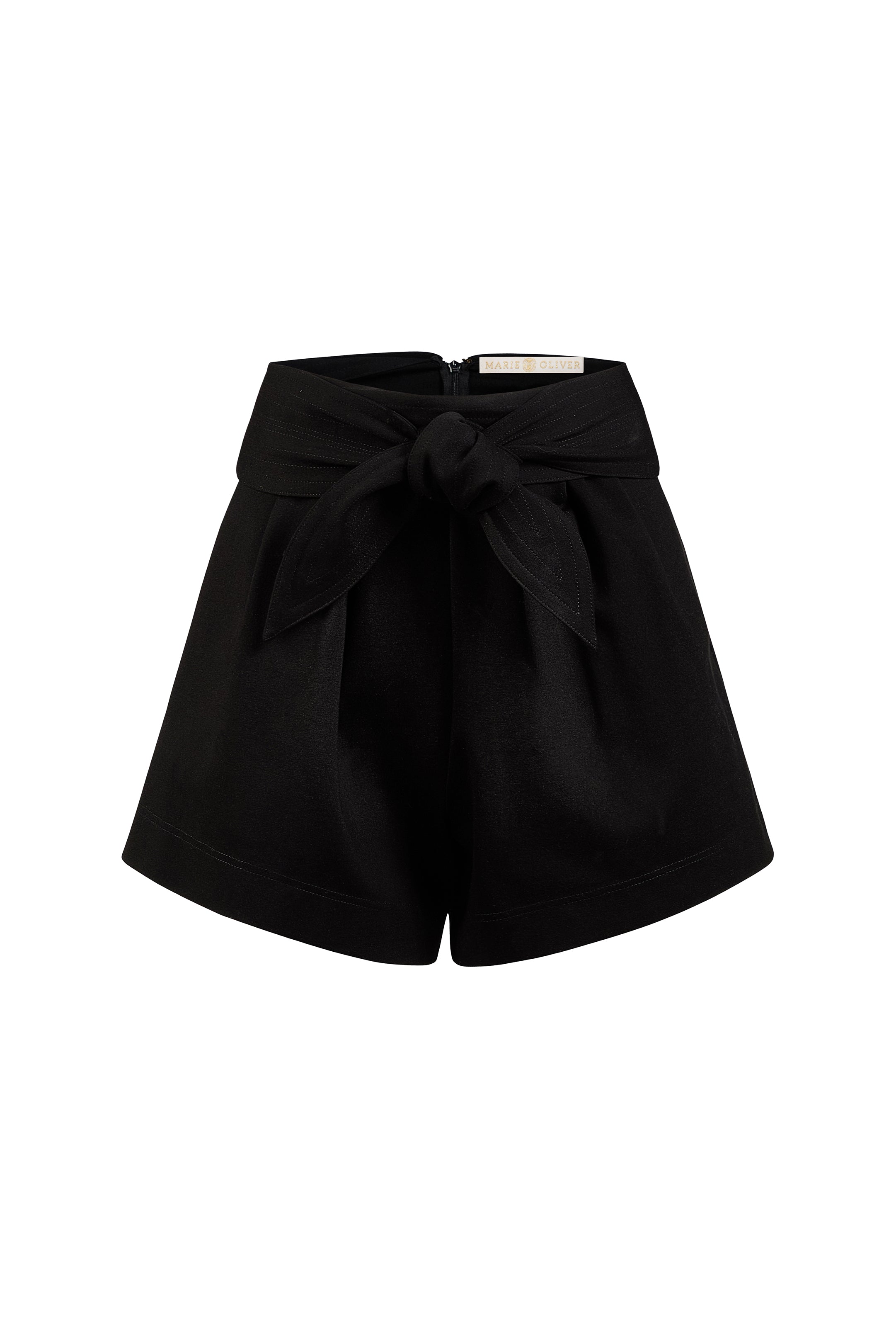 Pulling from our founder’s personal wardrobe archives, Emmit is inspired by a favorite pair of shorts she bought back in high school. With a pleated front and wide legs, the dramatic style comes in two staple solids, including this crisp Black, and features an attached trapunto stitch sash belt. To wear: fold the waistband over once, cross in back and tie a knot in front. Style with our new knit Nev tops to create a warm weather look that is entirely elevated.