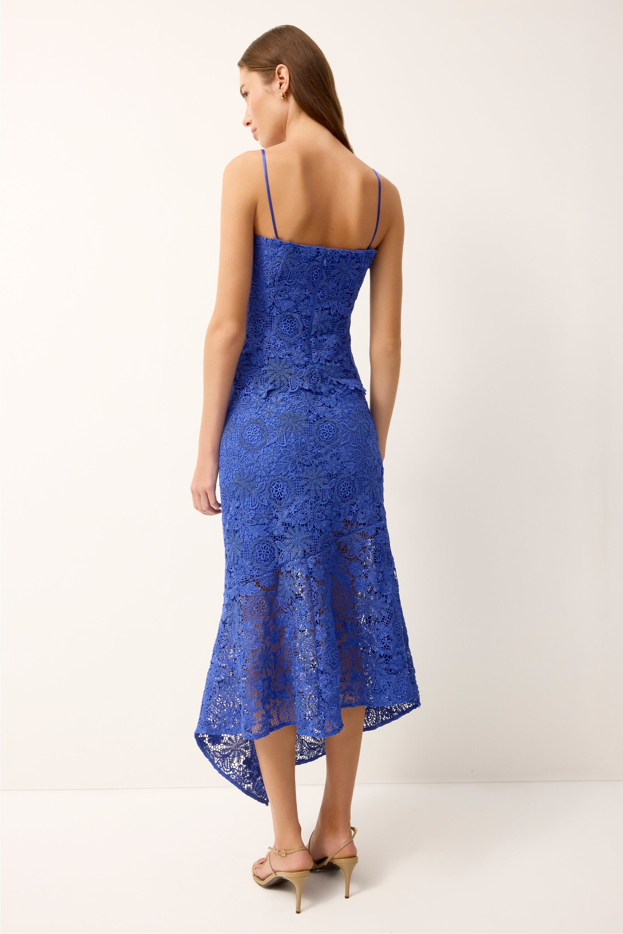 The Casey skirt returns for spring in a fresh lace iteration. Featuring an asymmetrical hem, this feminine silhouette feels modern and elevated, while the bold cobalt blue hue brings bold energy to the look. Designed to pair with the matching Joelle top for a striking monochrome moment, it’s a standout choice for gallery openings, theater premieres, and any occasion that calls for confident, head-to-toe polish.