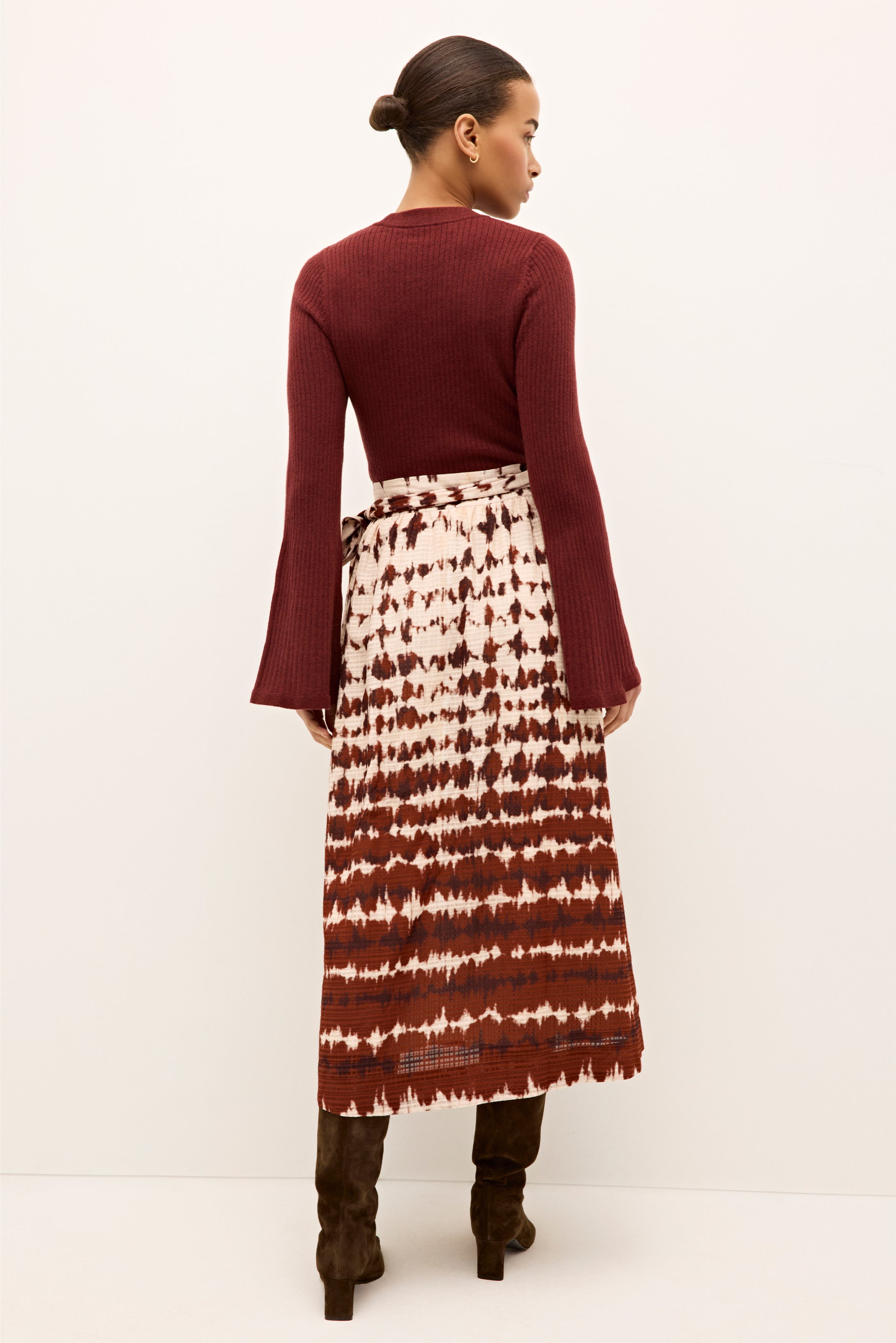 Universally flattering, our signature Estine wrap skirt is a winner in both prints and solids, but we love the drama our eclectic Catalonia print brings to this classic style. Featuring adjustable sash ties at the waist that fall into long streamers—knot or loop them into a statement bow to make it your own. Pair it with our matching Trudy blouse in Catalonia to complete the statement, or pair with solid knit tops like Claudie or Presley for a casually refined look.
