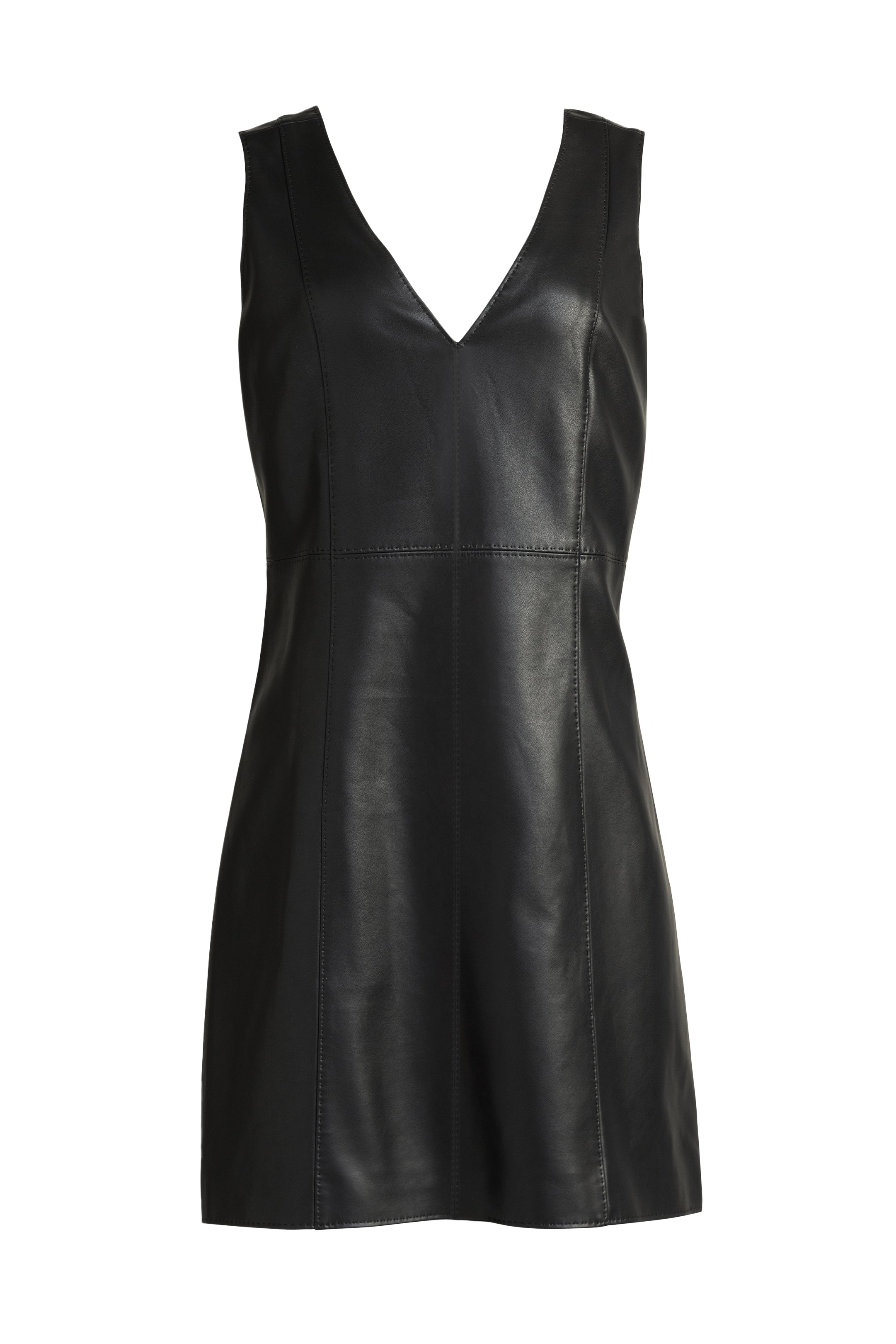 Cut from supple vegan leather, this modern sheath features a plunging V neckline at both front and back, and pickstitch detailing at the seams to add a little edge. Fully lined for comfort, the dress stands on its own for a bold statement, or layers beautifully over knits like Tinley for a retro-inspired look that nods to ‘70s cool.