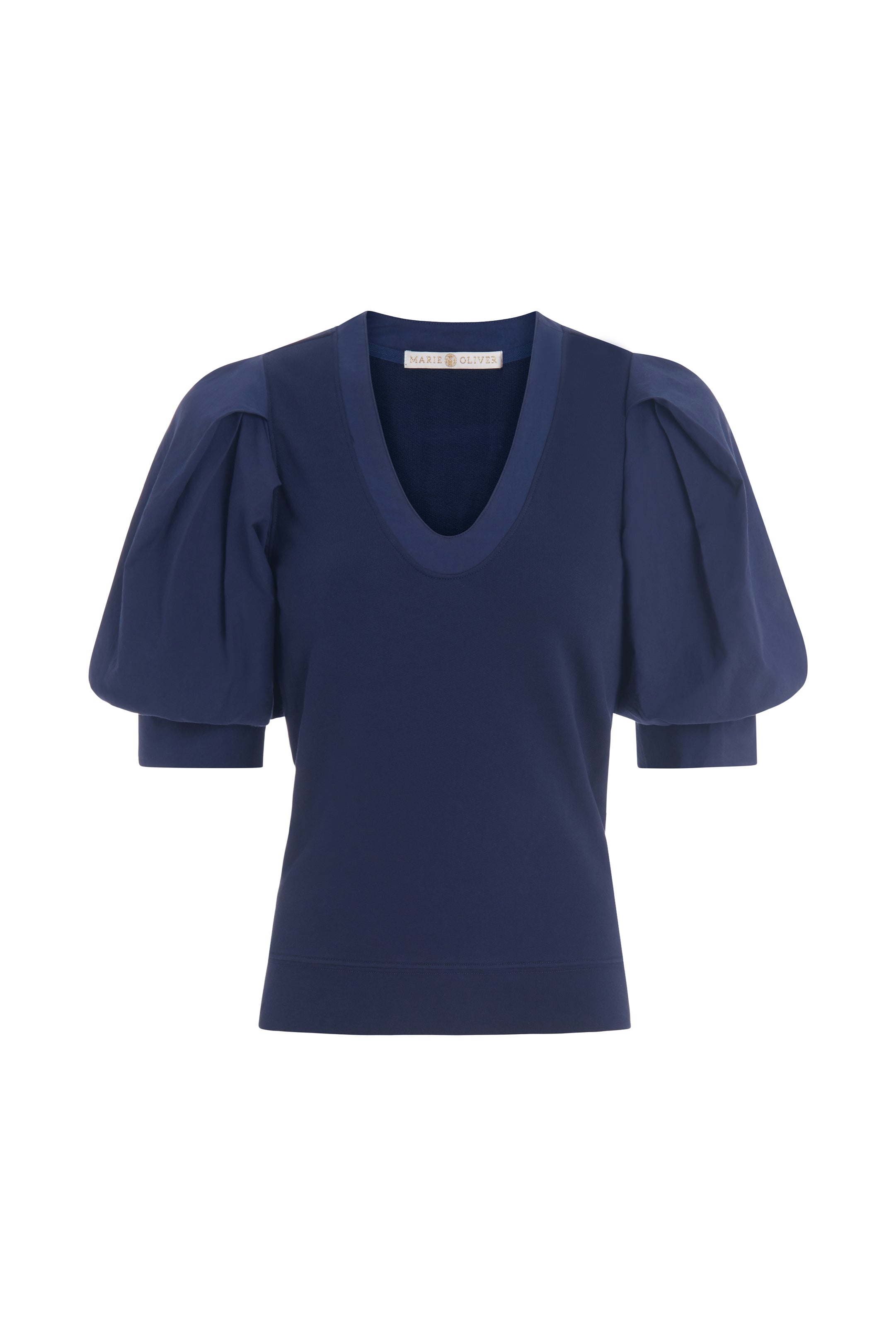 -French Terry Body with Pleated Full Sleeve Made from Cotton Poplin