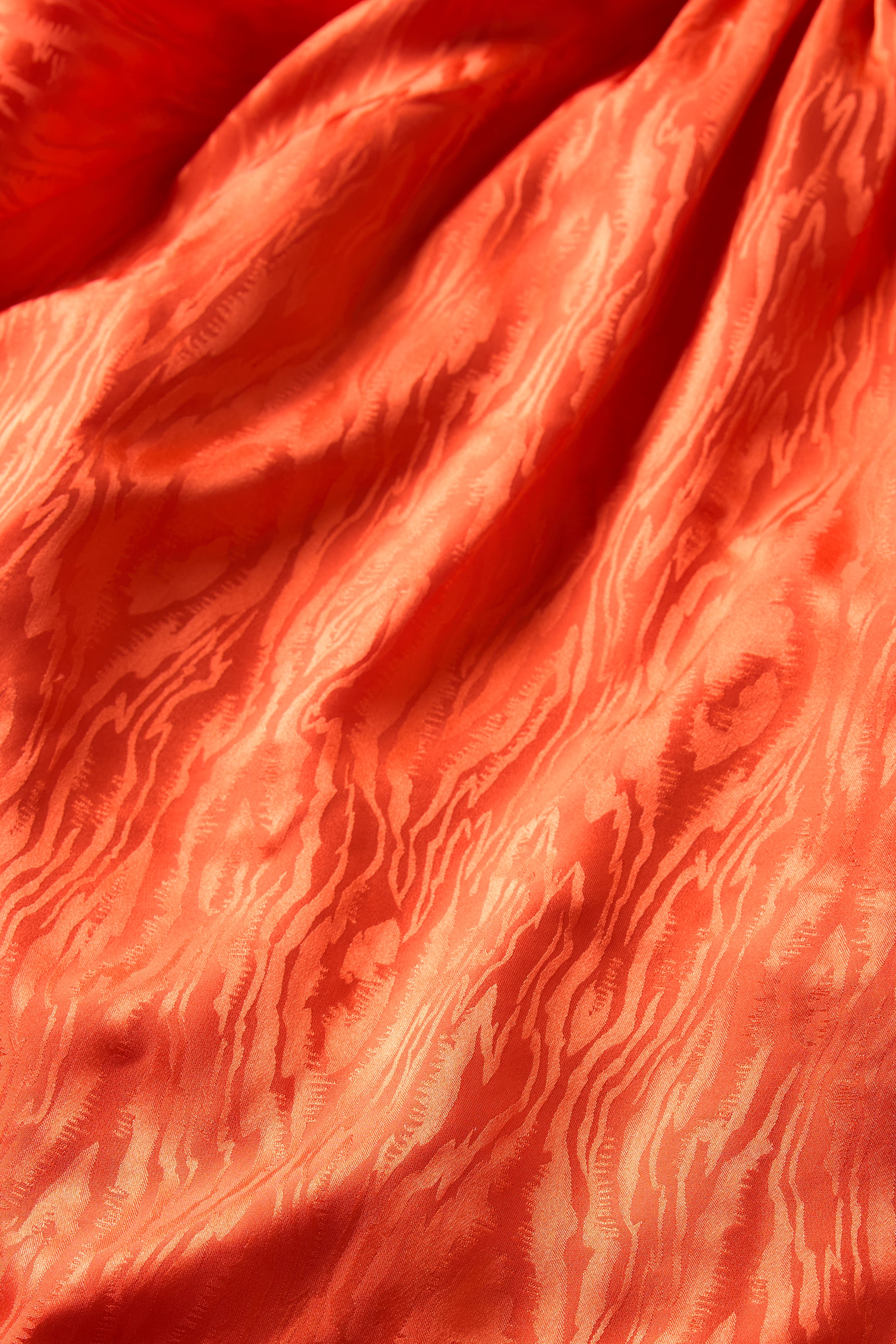 With full raglan sleeves, a stylish stand collar, and elegant silk moiré fabric, the Oryan blouse balances structure and softness in the most refined way. The bold Grenadine hue brings warmth and depth, especially when paired with our matching Macbee trousers for a confident monochrome statement.