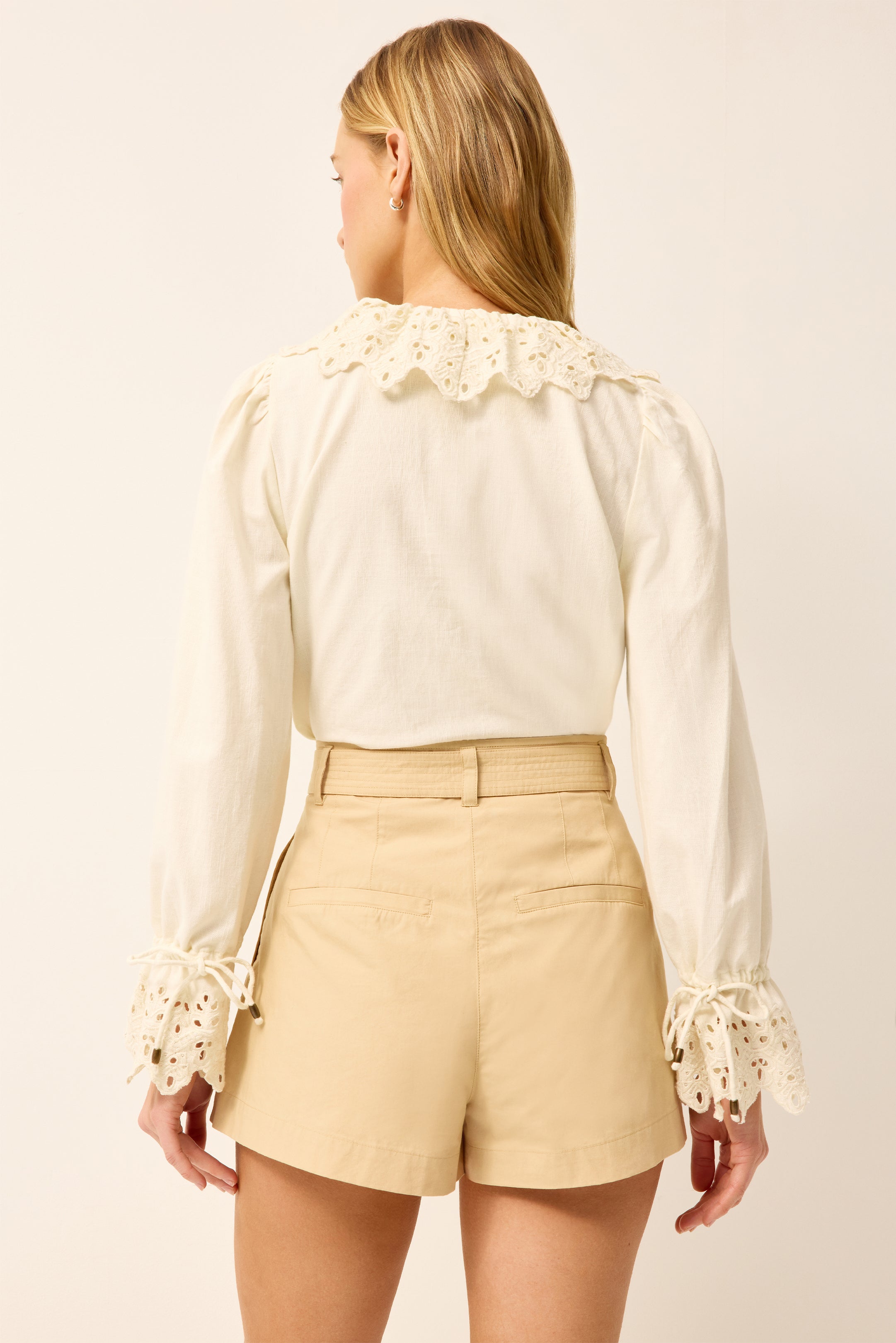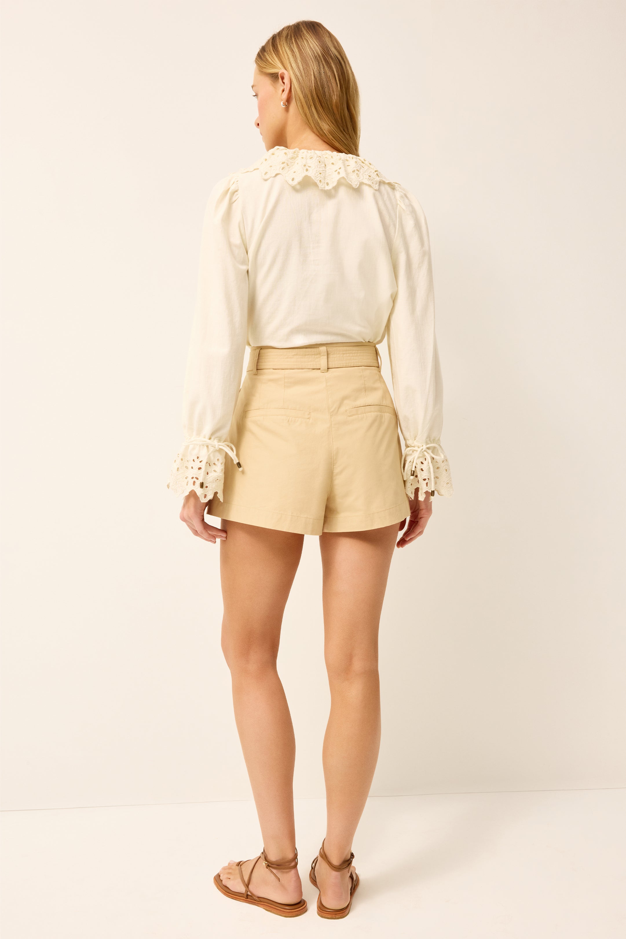 Equally feminine and utilitarian, our A-line Lander short is made from sleek cotton chino with a pleated silhouette that creates a beautiful fit. Designed to sit high on your waist, it has a removable belt with long, corded end ties. This classic Beige style fastens with a center-front zip and hook-and-eye closure.