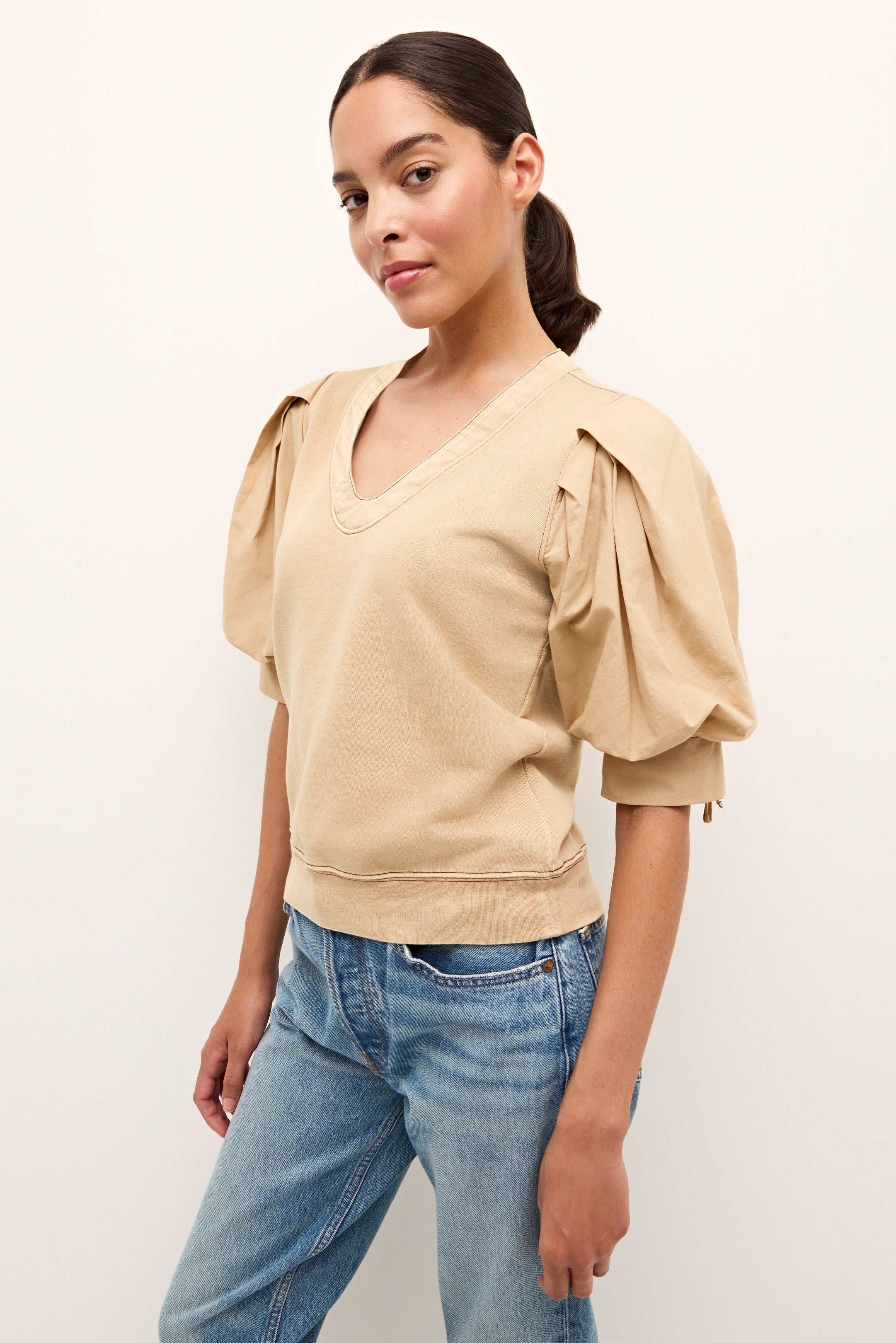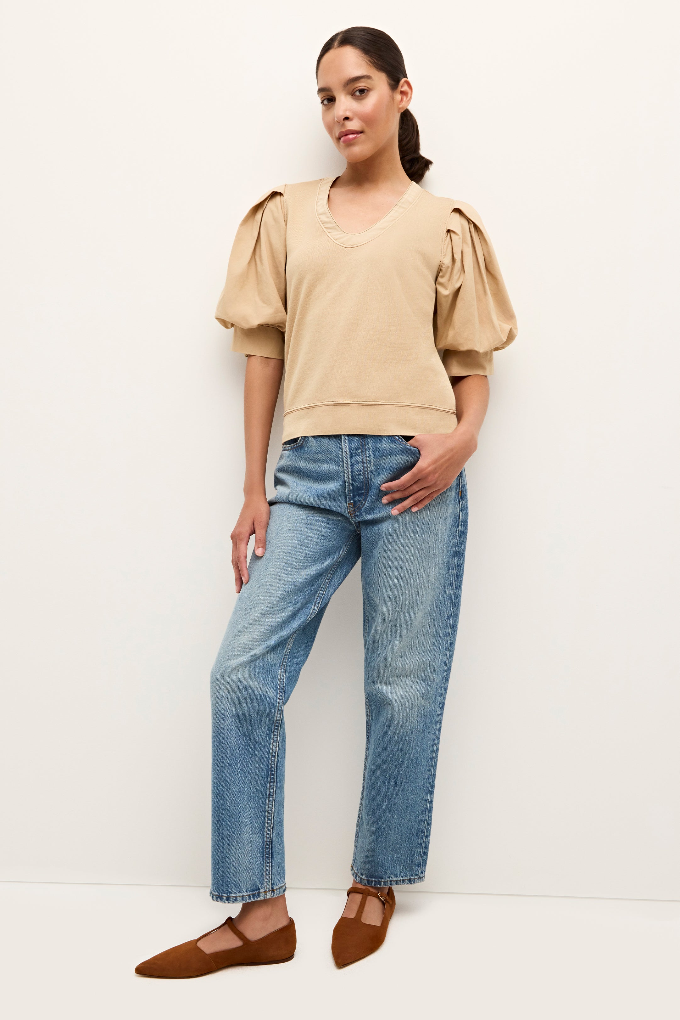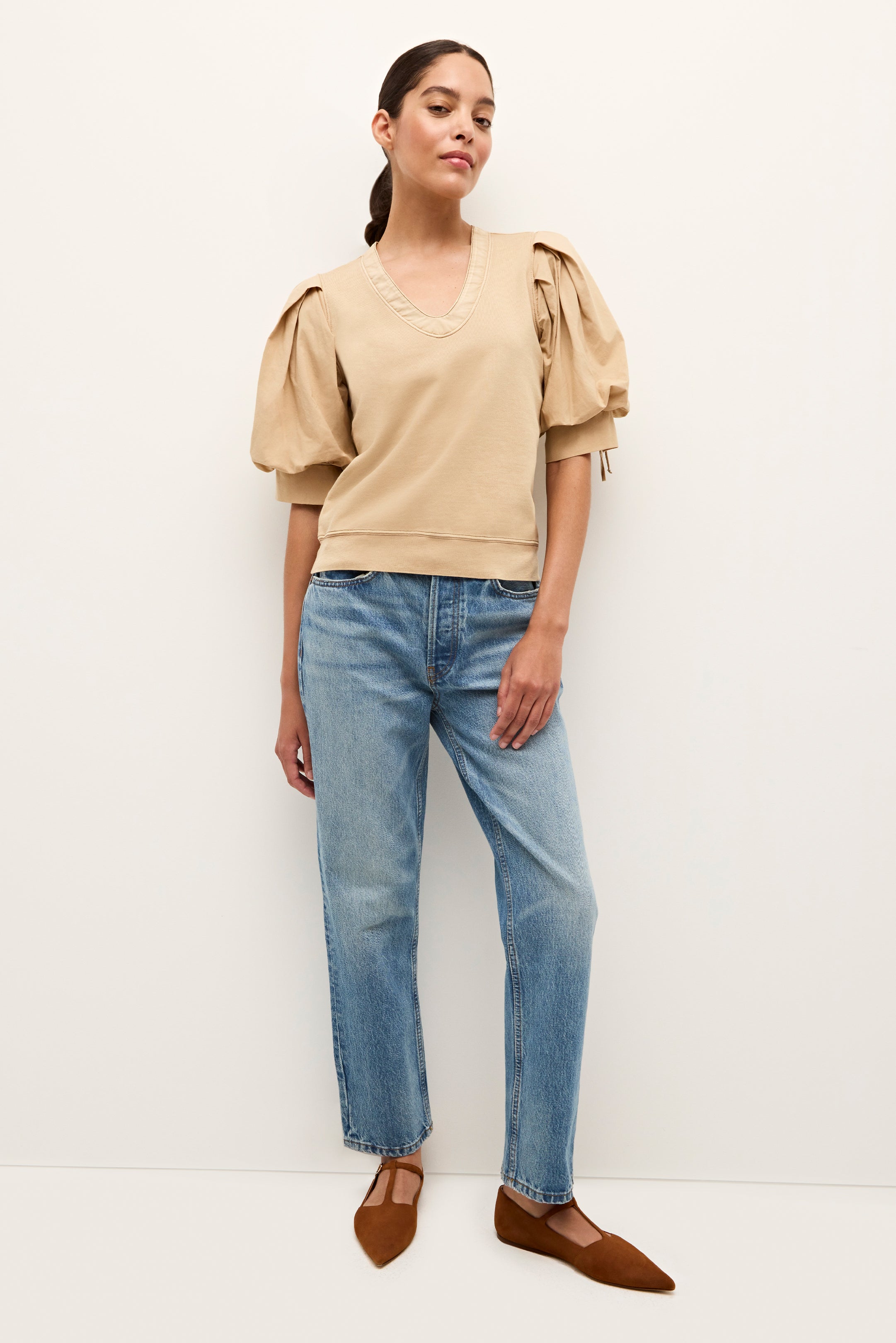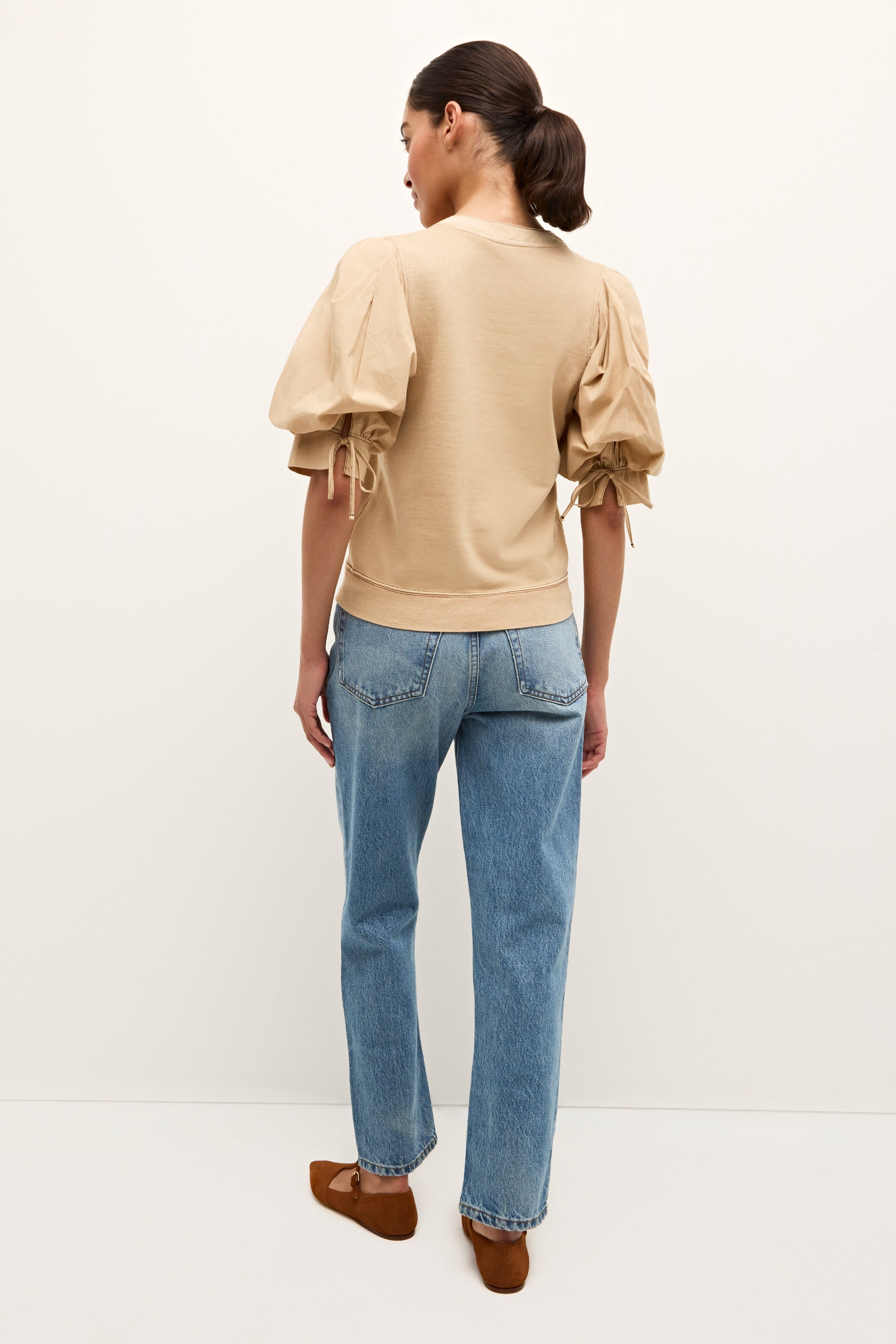 The combination of a soft French terry body and breezy cotton poplin sleeves sets our Viva popover apart from traditional leisurewear. Perfect for an early fall trip to the coast, Viva comes in a new Taupe neutral this season, and the fabric is pre-treated with an enzyme wash to lend the sweatshirt a cozy, worn-in look.