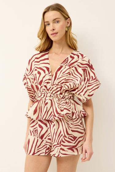 Meet our new beach-weight Ana short. The relaxed cabana style pairs back to the matching Vesta top in our red-and-cream Lionfish stripe for a chic vacation-ready set but tossed over a solid swimsuit like our Marissa one-piece in Turtledove, the slip-on silhouette is just as chic on her own.