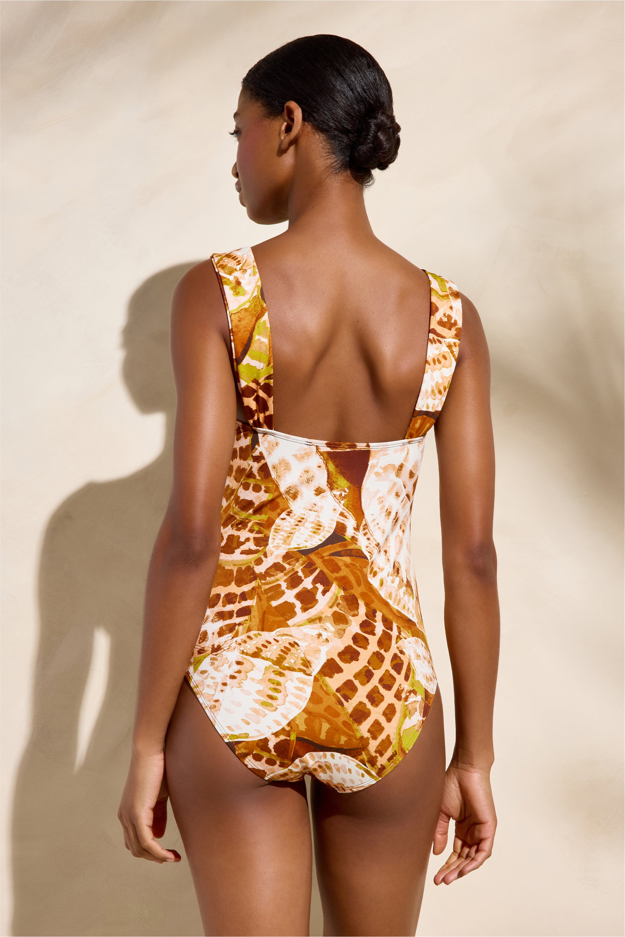 Bright, playful, and polished, the new Cora one-piece brings personality and practicality to seaside style. Designed in our timeless Conch print, the silhouette features a softly structured bust with a tortoiseshell ring detail at the center and a subtle cutout for just a hint of skin. Wide straps provide comfortable support, while the lightly compressive fabric offers a flattering fit that stays in place for long days in the sun.