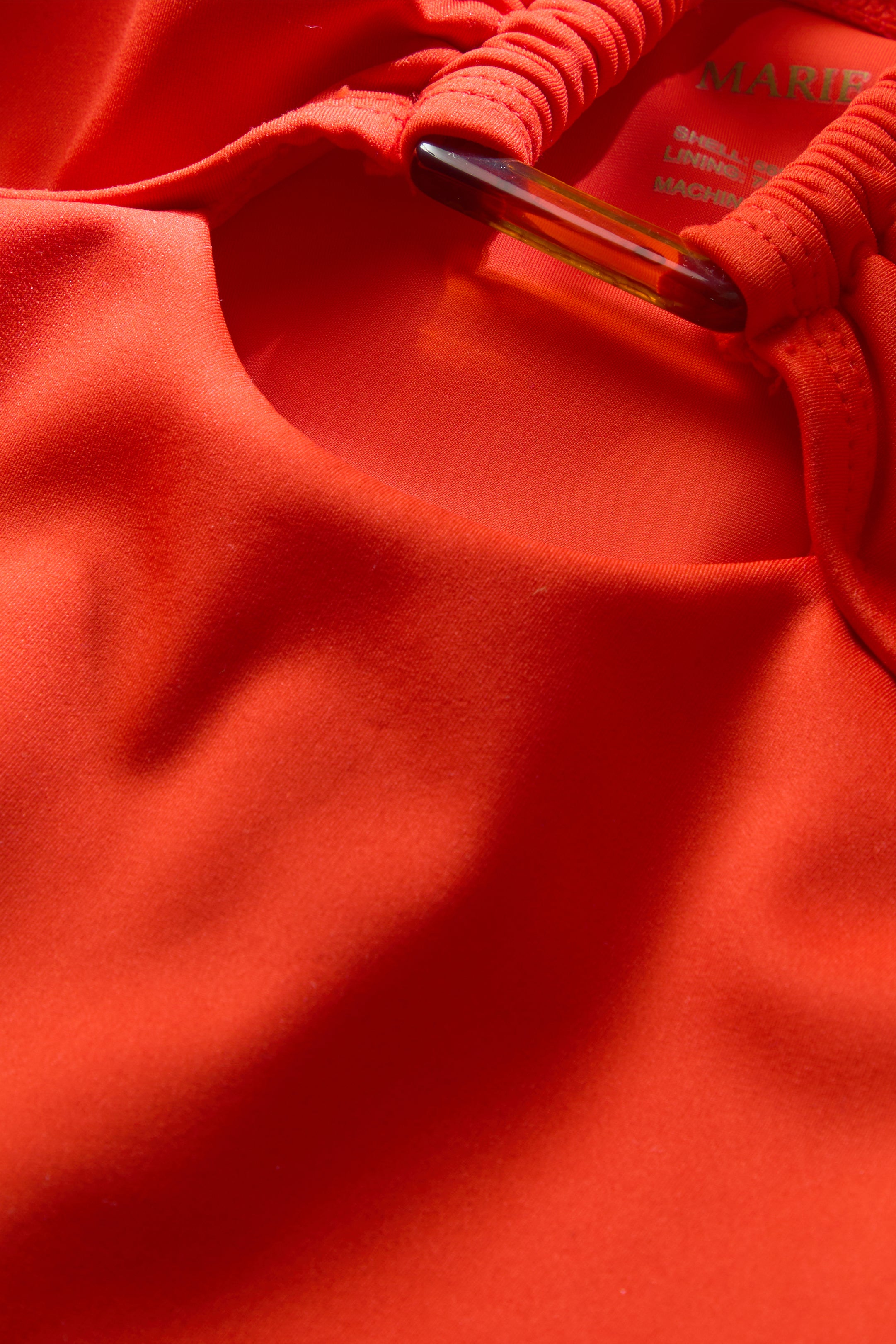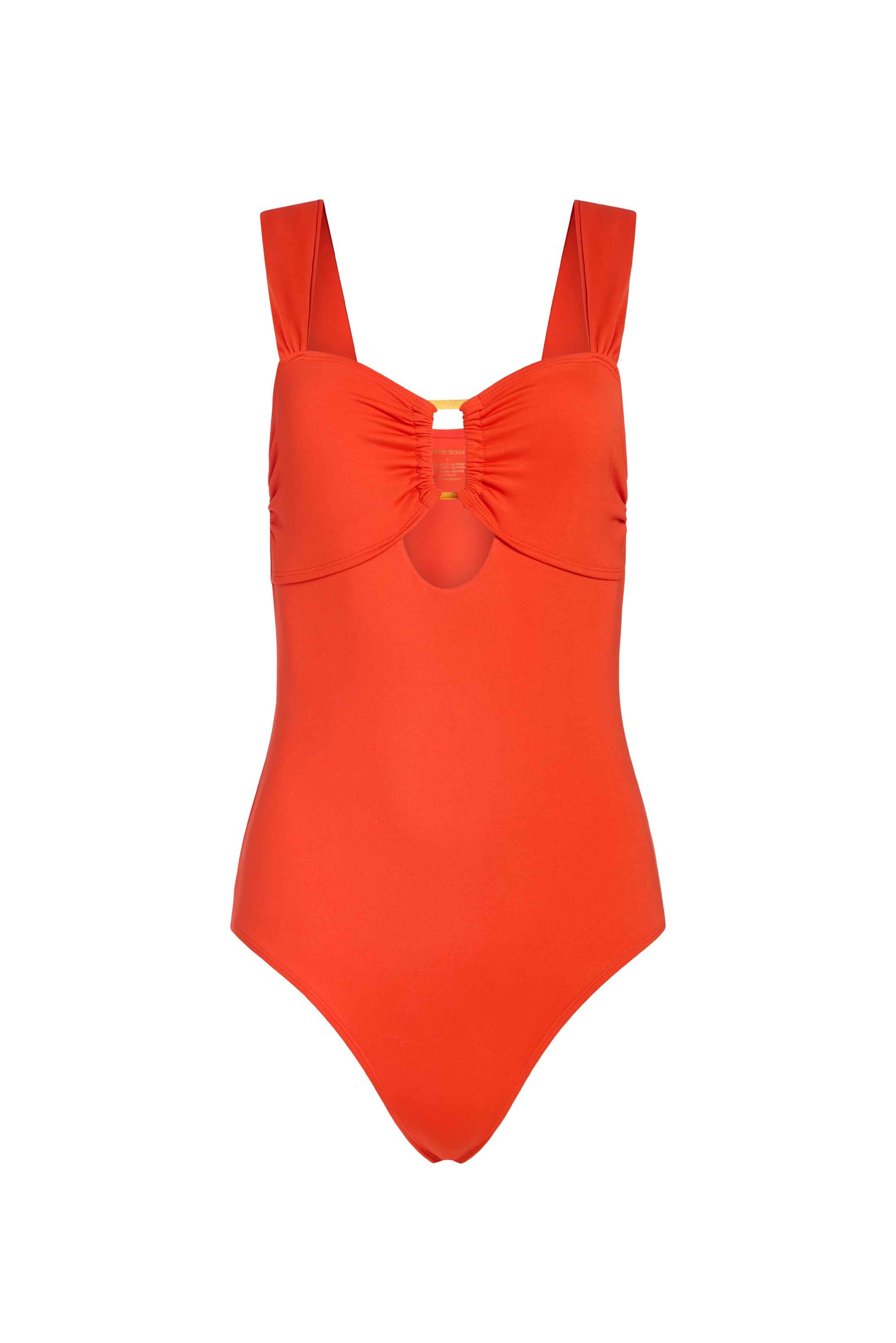 Bright, playful, and polished, the new Cora one-piece brings personality and practicality to seaside style. Designed in our vibrant Flame red, the silhouette features a softly structured bust with a tortoiseshell ring detail at the center and a subtle cutout for just a hint of skin. Wide straps provide comfortable support, while the lightly compressive fabric offers a flattering fit that stays in place for long days in the sun.