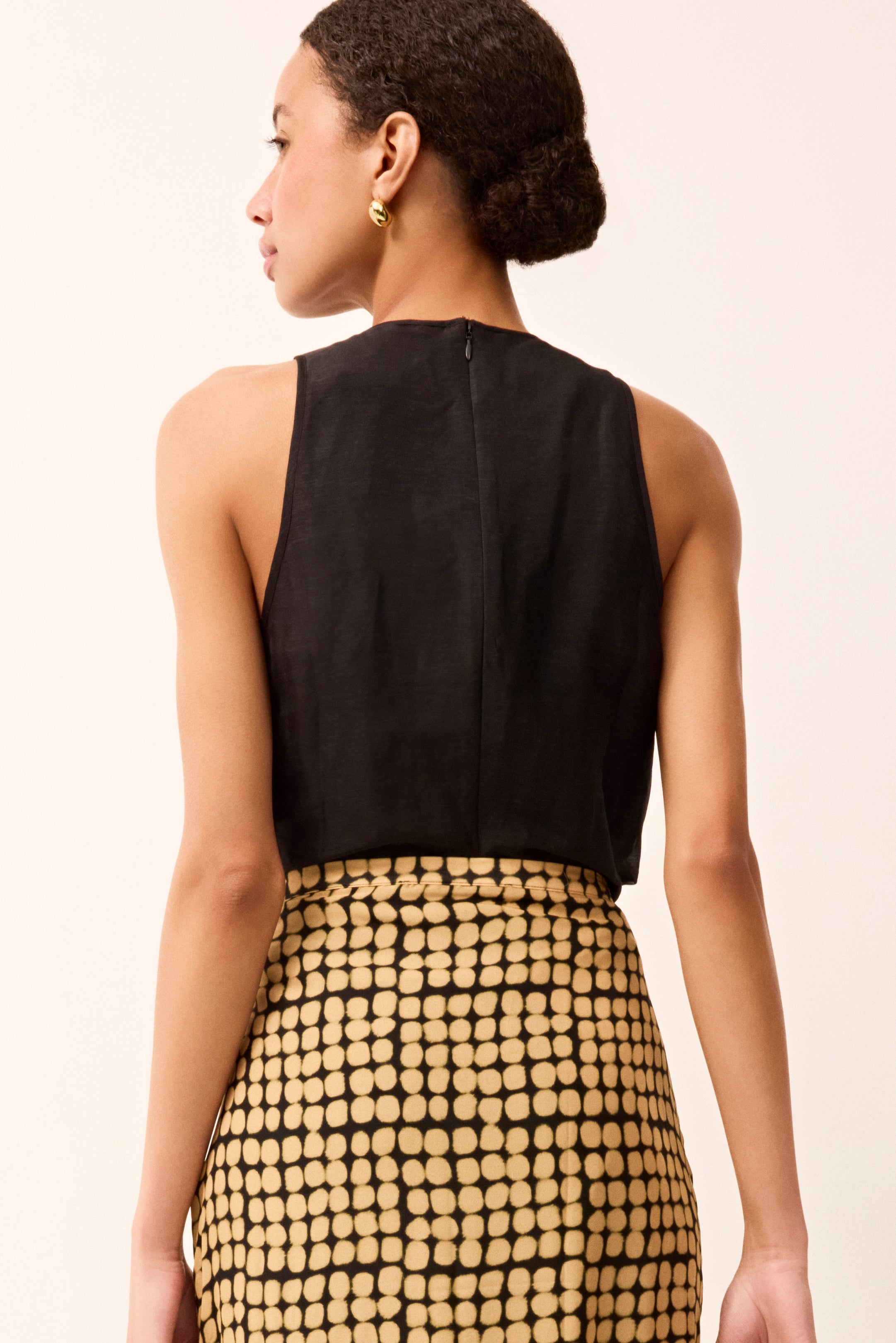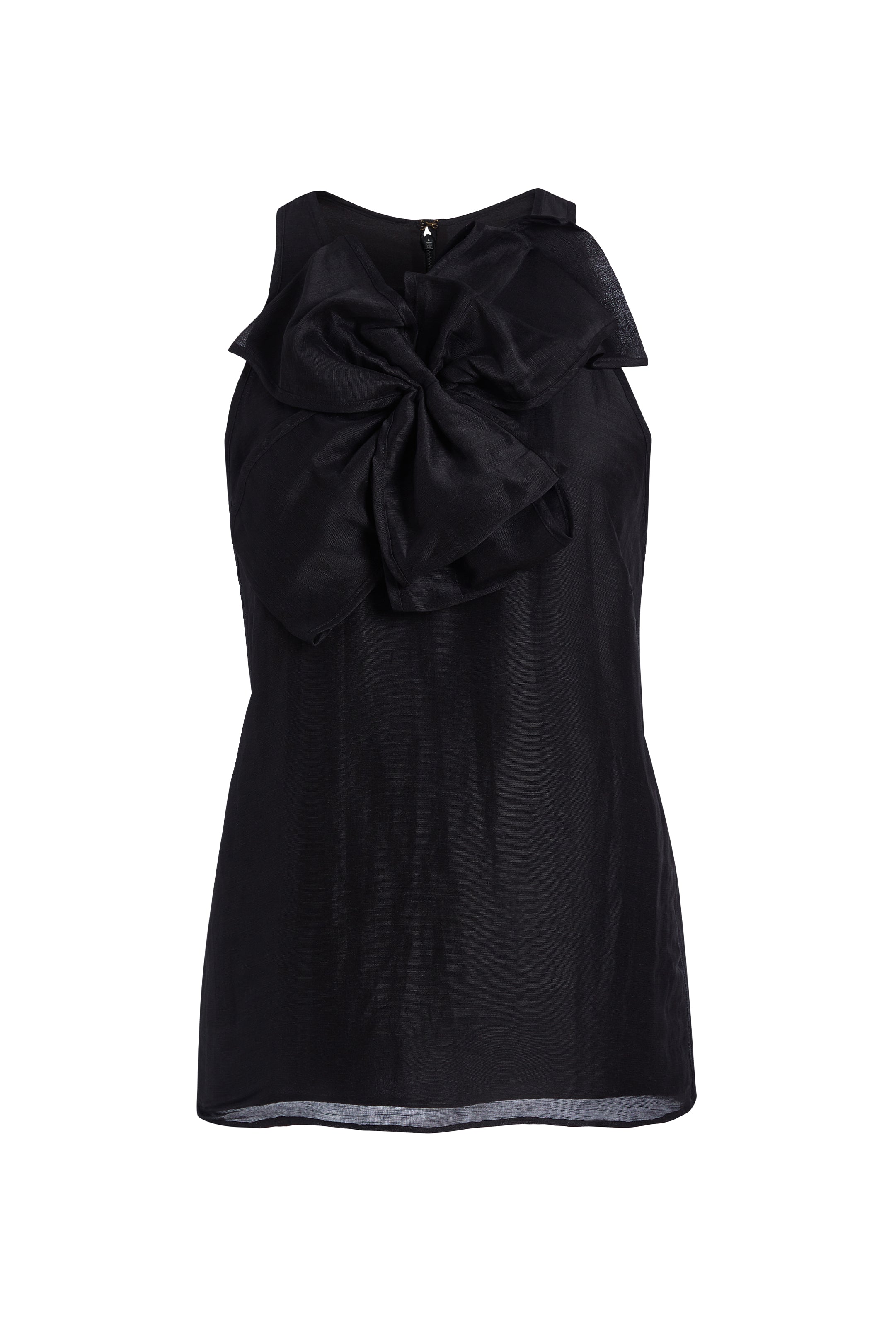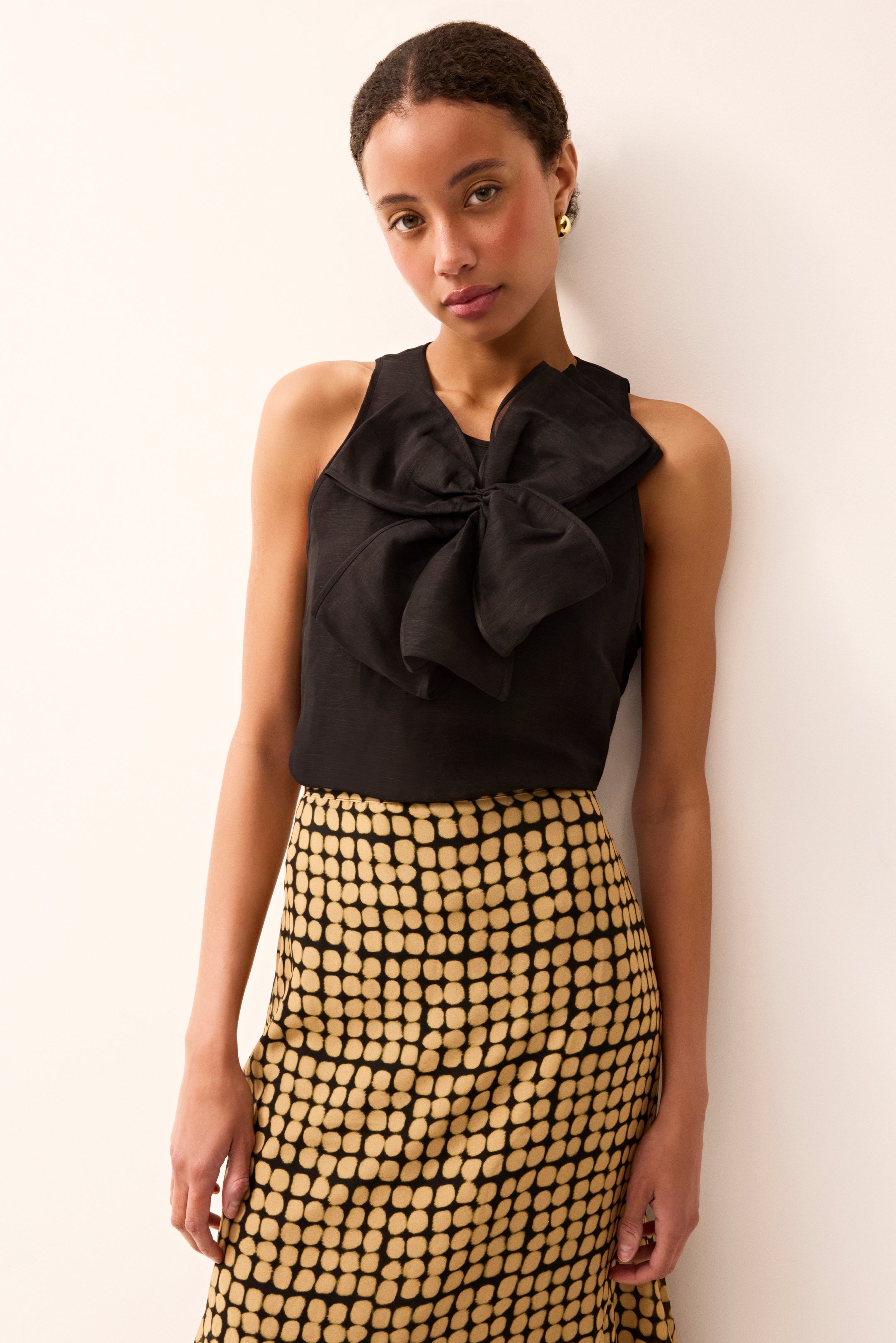 Designed for celebrating, the Indira top turns heads with its statement bow detail. Crafted from a soft silk-linen blend, this sleeveless silhouette combines modern minimalism with couture-like volume. With both polish and flair, this top is equally at home styled with tailored trousers for evening or paired with skirts like Krista for a more playful take on party dressing.