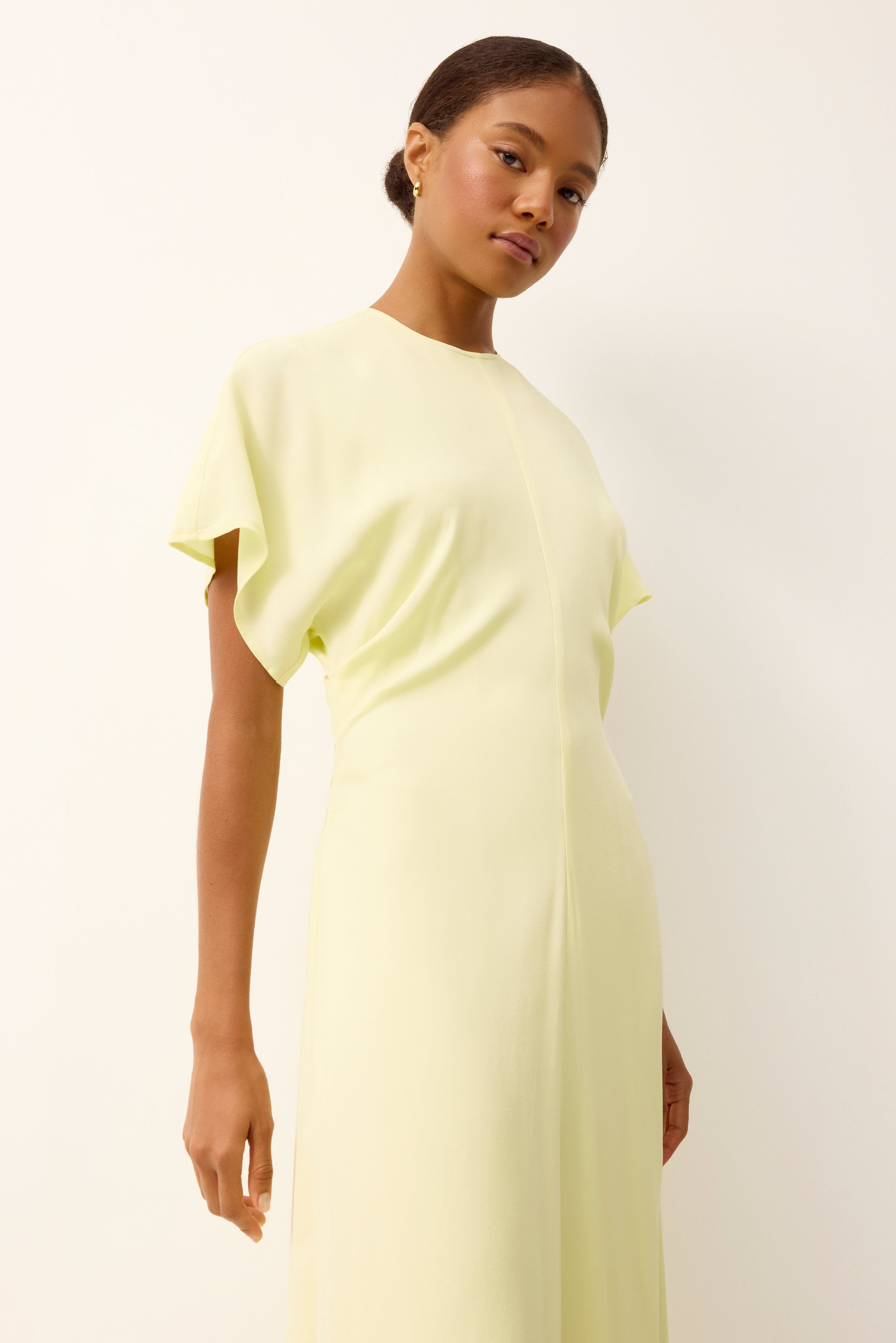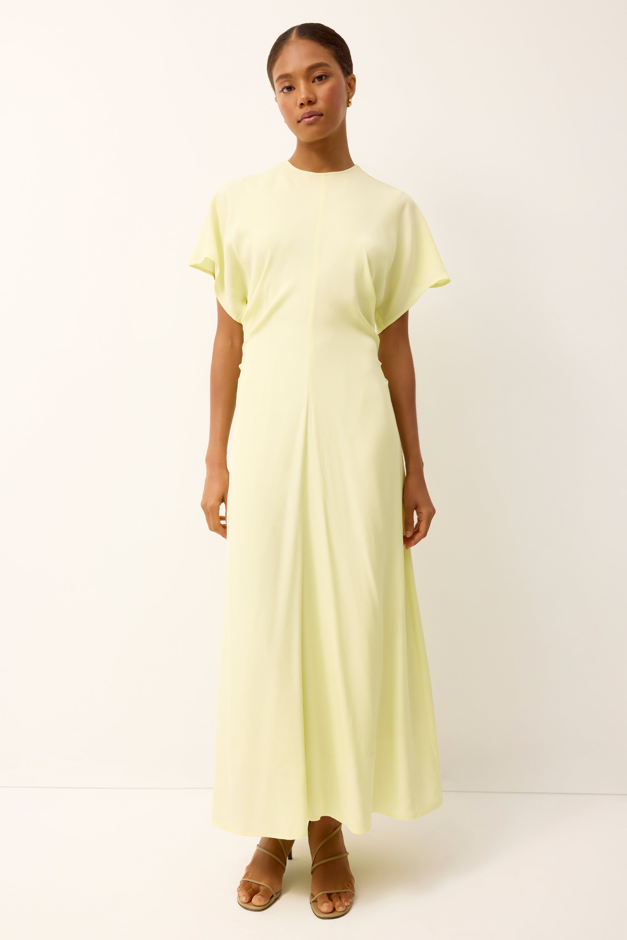 The definition of effortless elegance, our new Kamari dress takes the guesswork out of Guest Of dressing. The relaxed maxi silhouette features soft flutter sleeves and subtle ruching at the ribcage that creates a flattering, body-skimming drape. Easy to wear yet polished, Kamari moves beautifully from ceremony to celebration with confidence and ease.