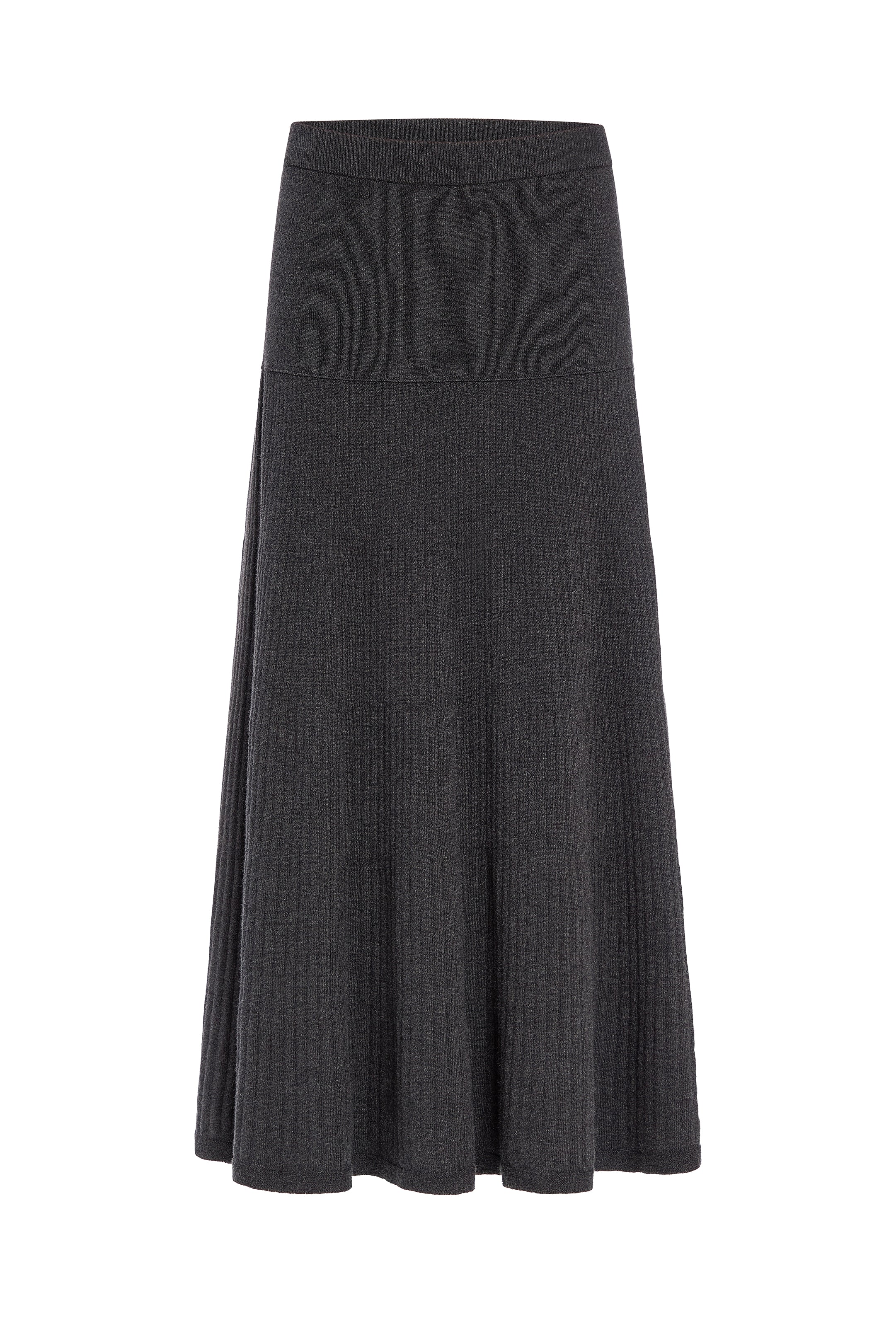 Less really is more when it comes to elevated wardrobe basics like our figure-skimming Kaylan skirt. The slinky ribbed-knit maxi features a drop waist rib yoke and is fitted through the hips before gently flaring out toward the floor. Make it a chic set by pairing with our matching Carrey top in Gunmetal.