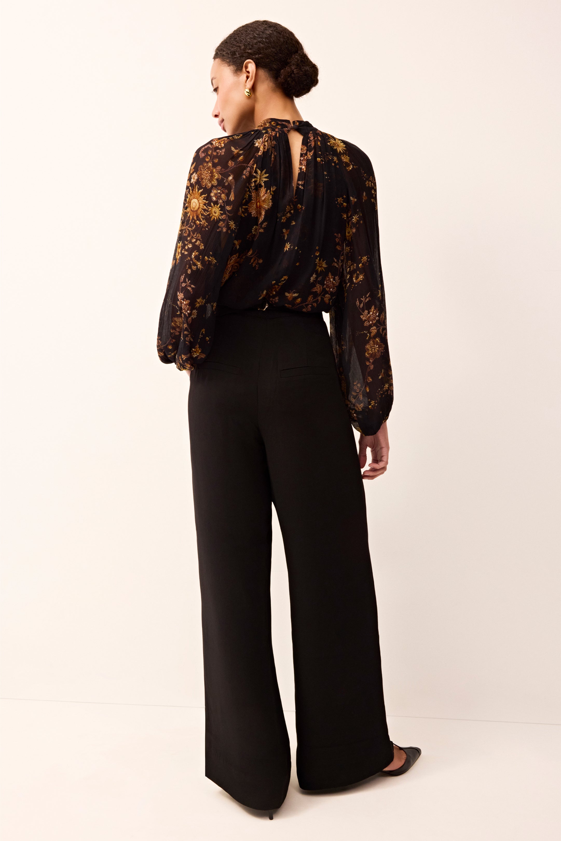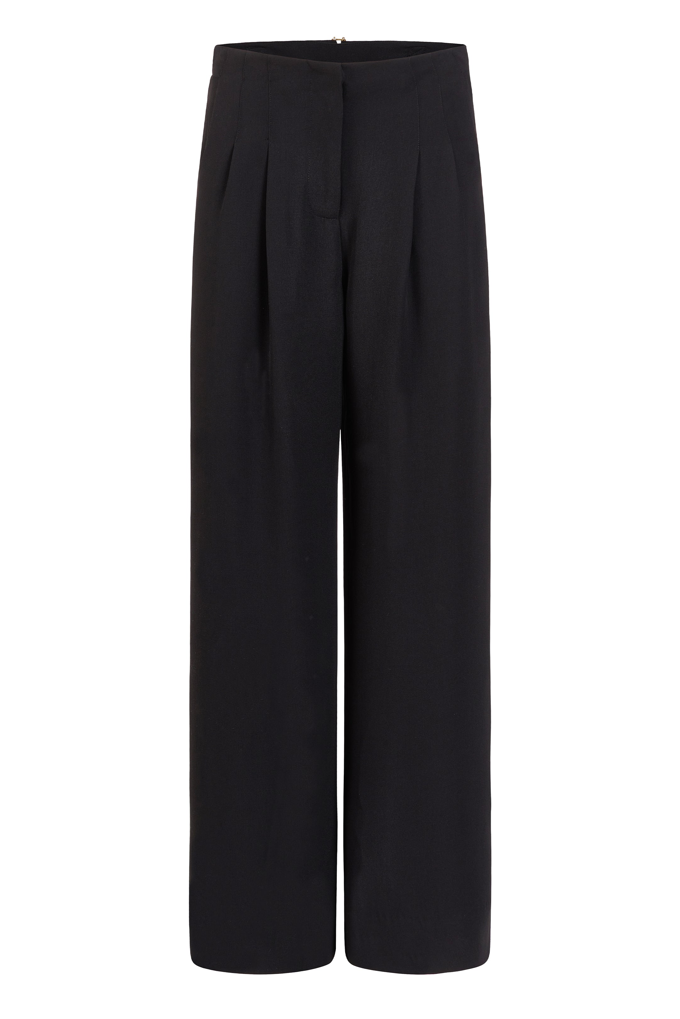 You know we love bold prints and bright colors, and we're big fans of playful design details like embroidery, ruffles, puffed shoulders, and dramatic bows, but we’re equally passionate about well-made wardrobe staples like our new MacBee pants. These wide-leg everyday trousers feature a double pleated front and a buckle detail at the back for an adjustable fit. They’re pictured here in classic Black.