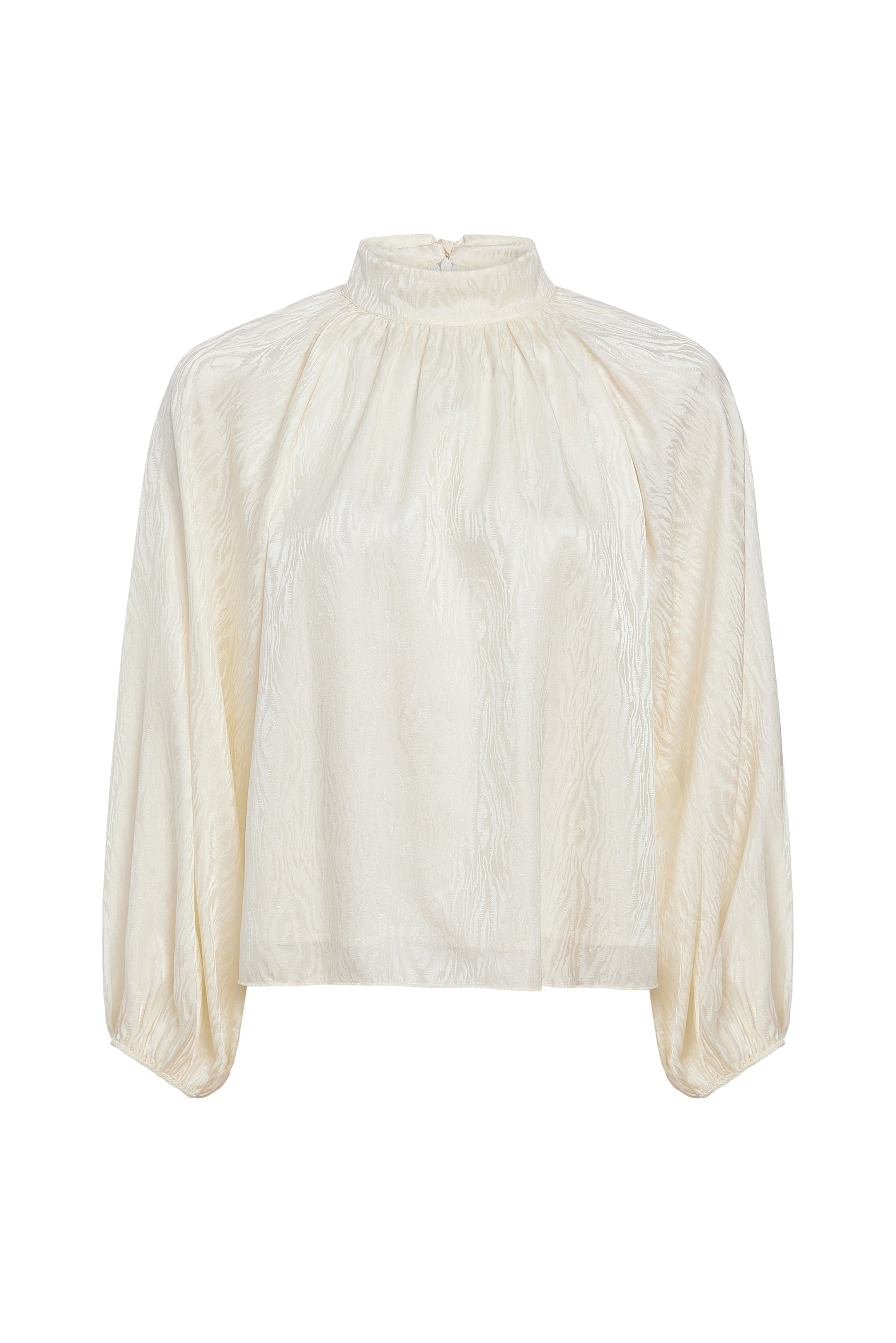 With full raglan sleeves, a stylish stand collar, and elegant silk moiré fabric, the Oryan blouse balances structure and softness in the most refined way. The soft Blanc hue is instantly sophisticated, especially when paired with our matching Macbee trousers or lace Benedette skirt for dressy tonal sets