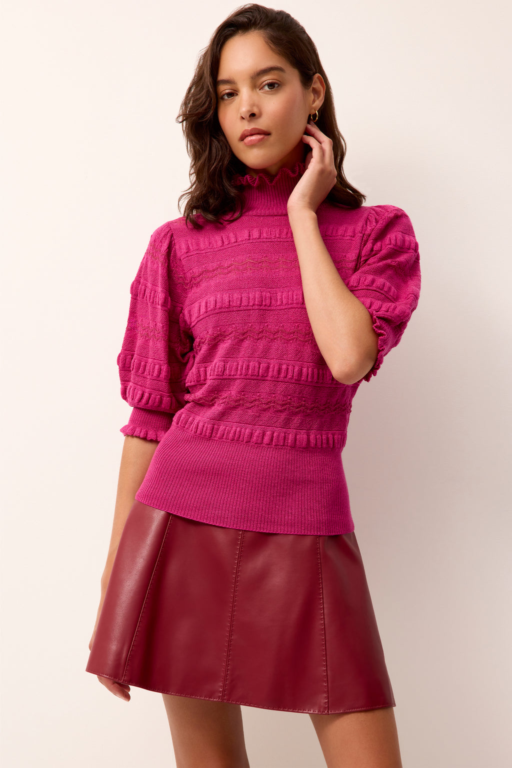 A classic, relaxed Fair Isle sweater is reinvented with textural elegance for all your casual fall wanderings. Fringe details and stitching in our Volcanic colorway mimic the tones of the season, and a wool construction keeps you cozy as the temperatures continue to dip. Its variegated coloring allows it to complement a wide array of neutrals and bolder prints, like the Estine wrap skirt in Catalonia, for a more vibrant look.
